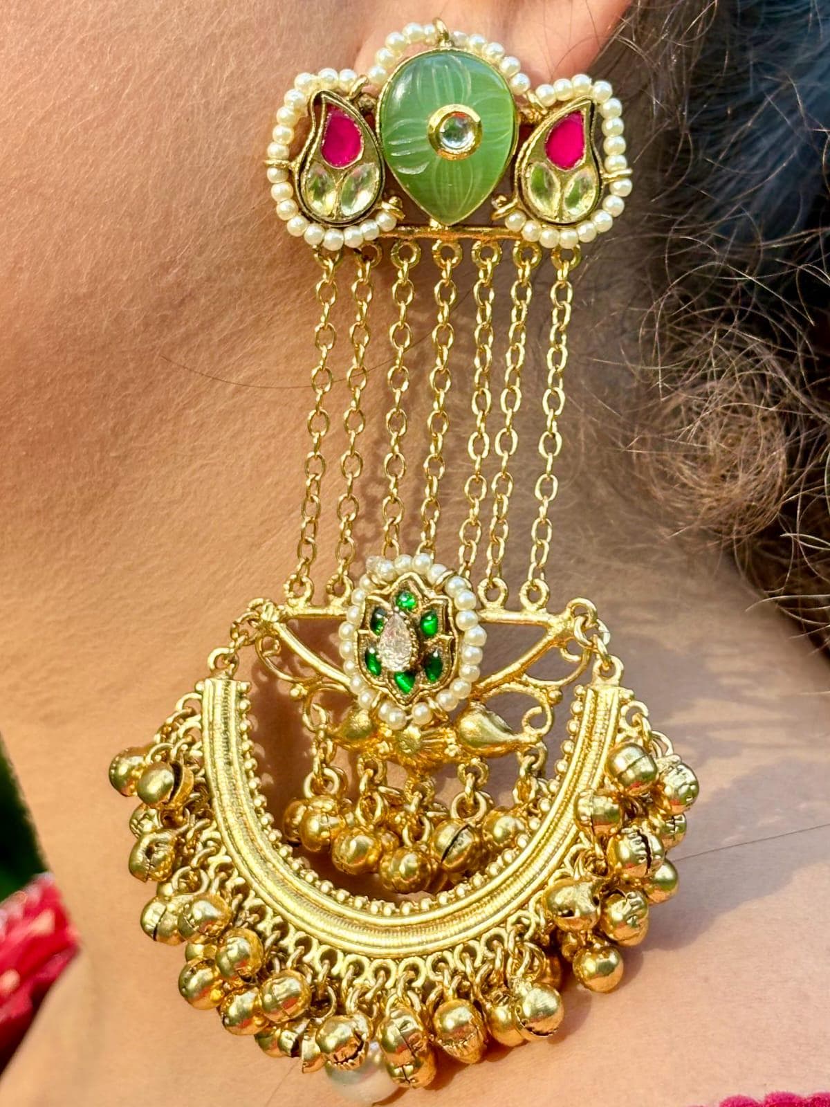 From the bold green stones to the intricate carvings and playful ghungroos, every detail tells a story of timeless craftsmanship and royal grace. 💚💛🔔