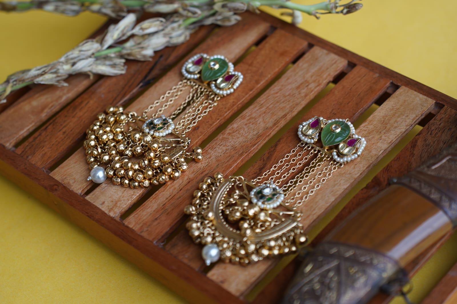#BrassBeauty #KundanKlassics #JhumkaLove #DesiJewels #TraditionalVibes #EarringGoals #HandcraftedWithLove #RoyalAdornments #MadeInIndia #SwarnSajavat