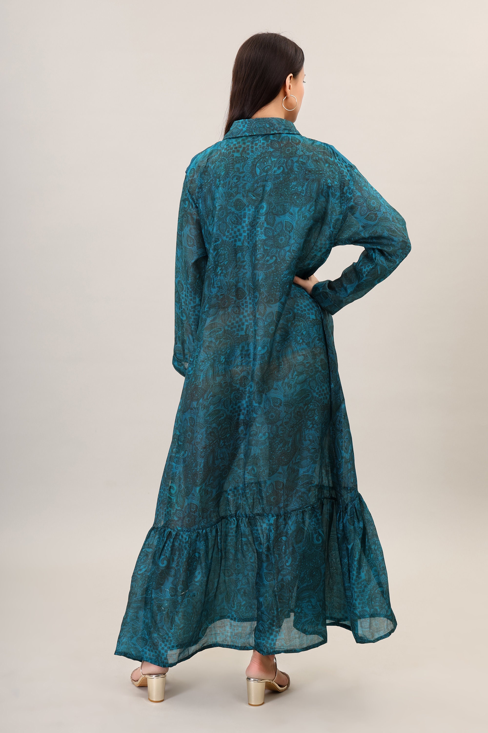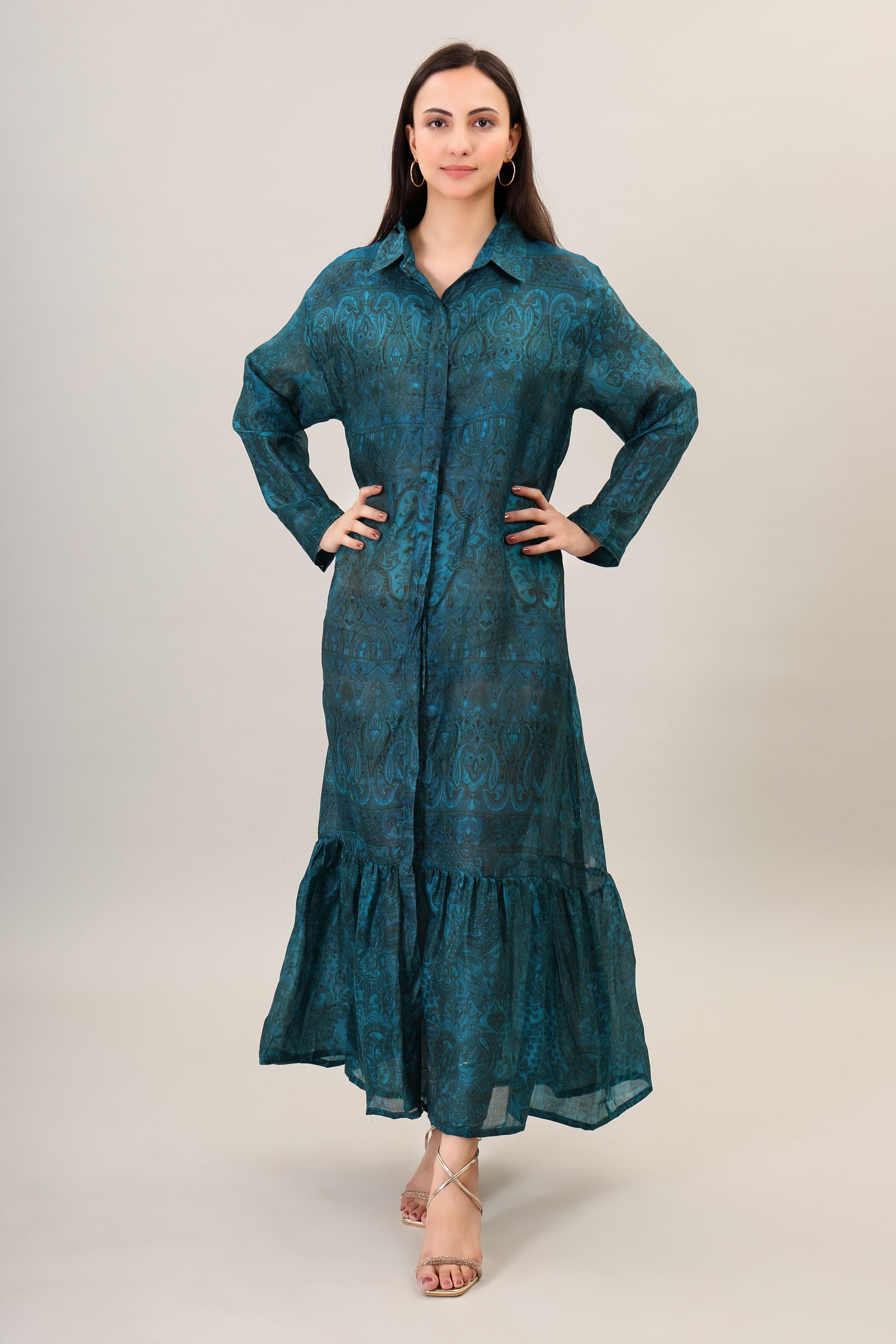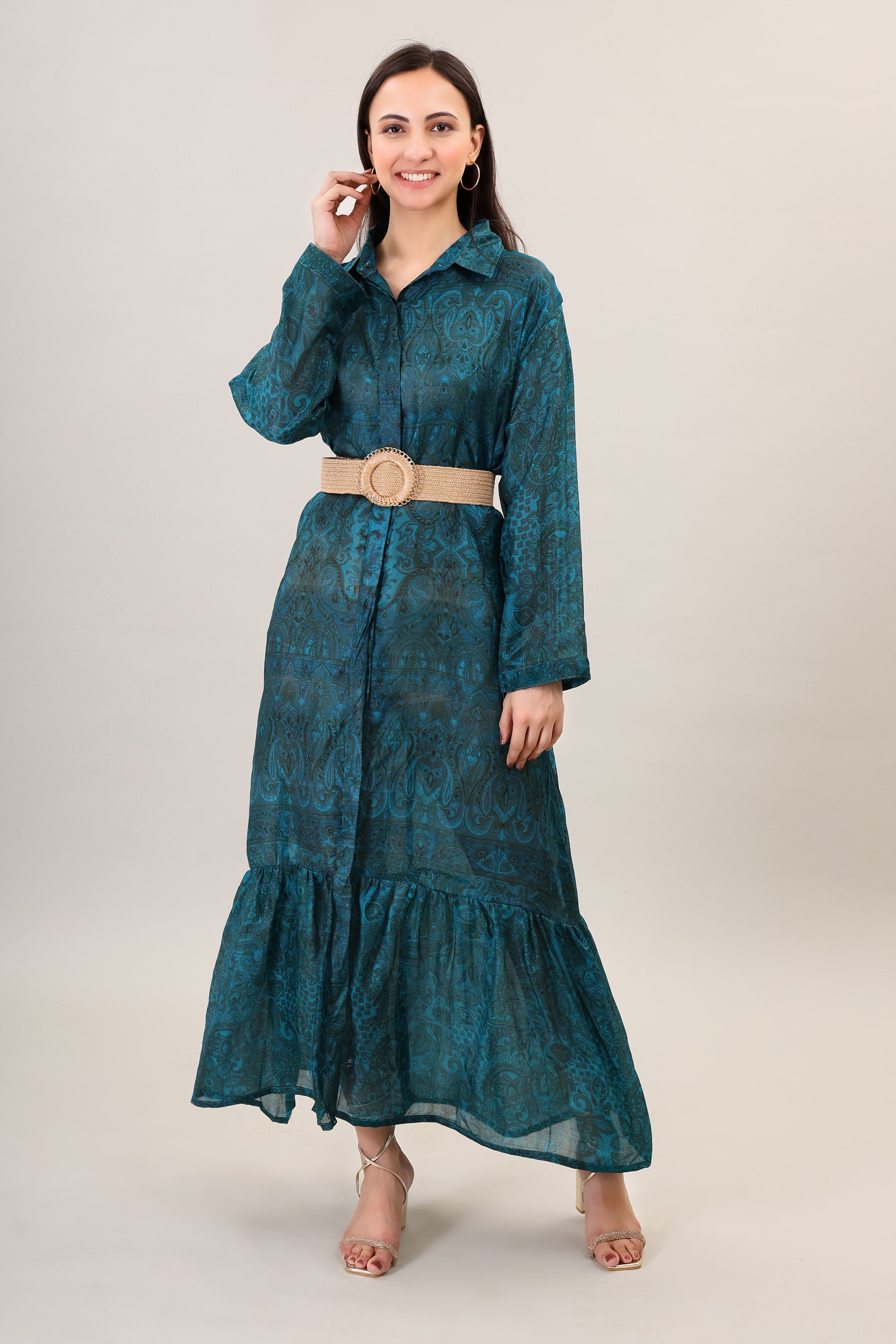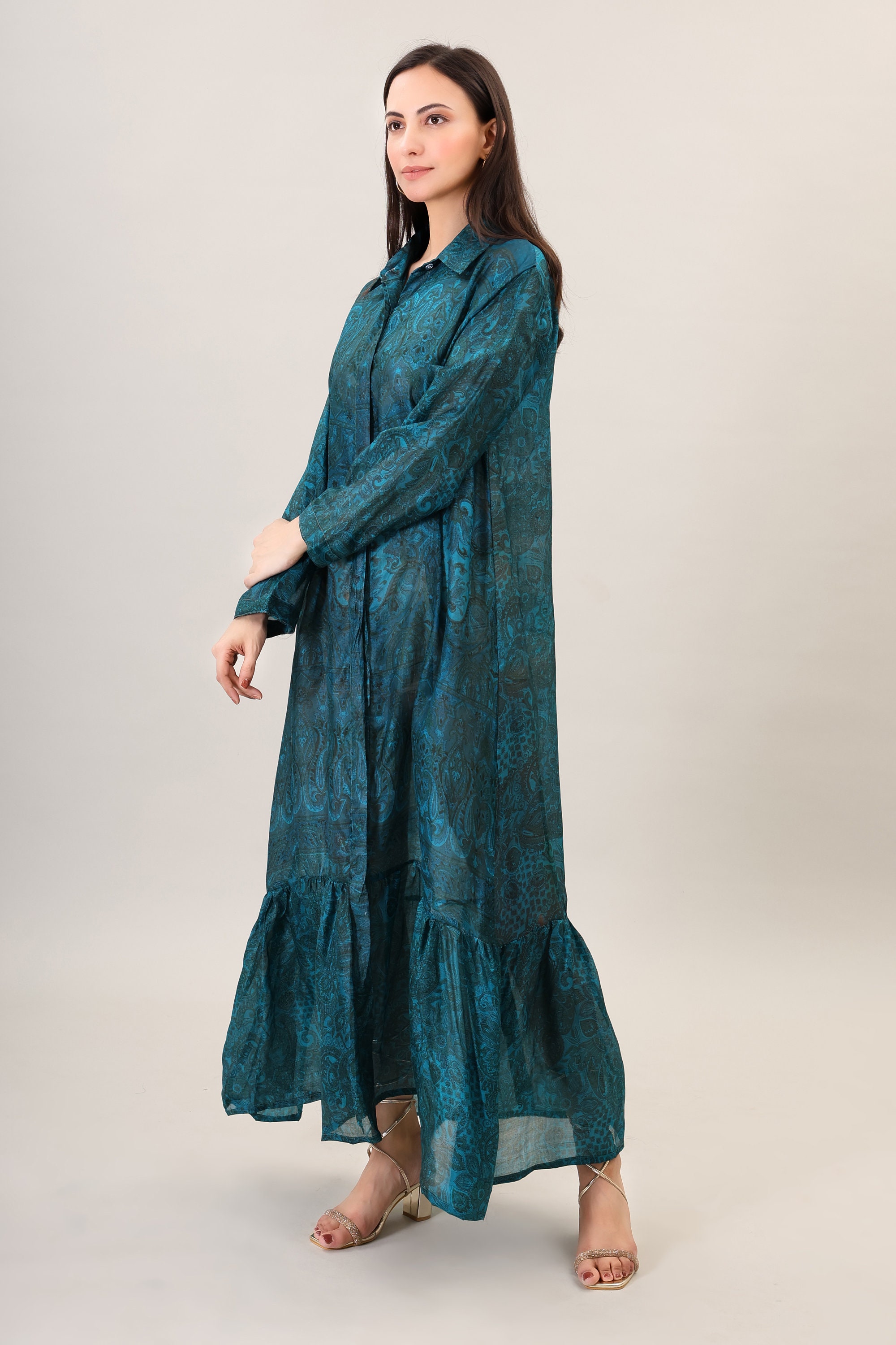Boho Maxi Dress, Printed Silk, Summer Beach Style