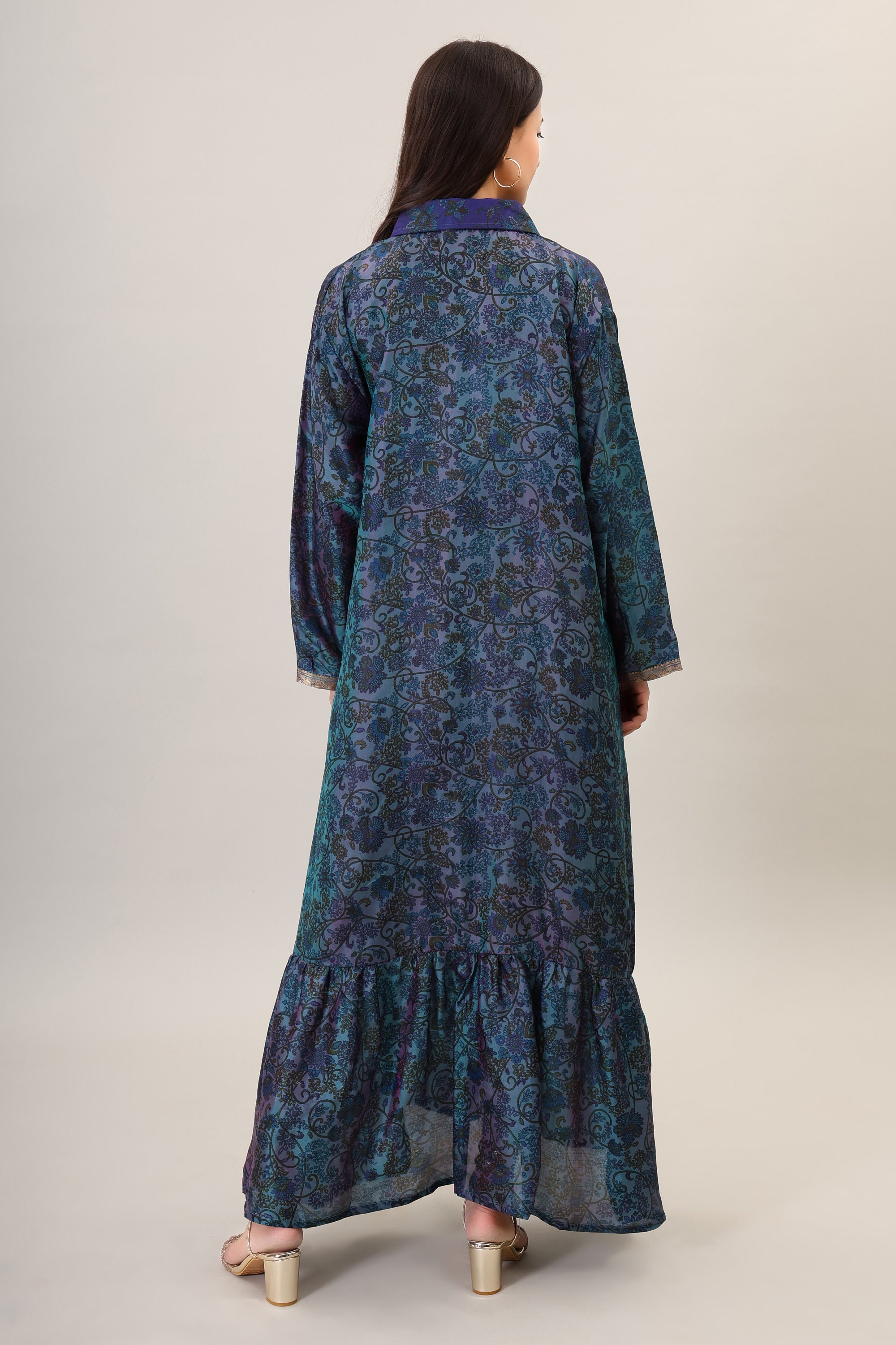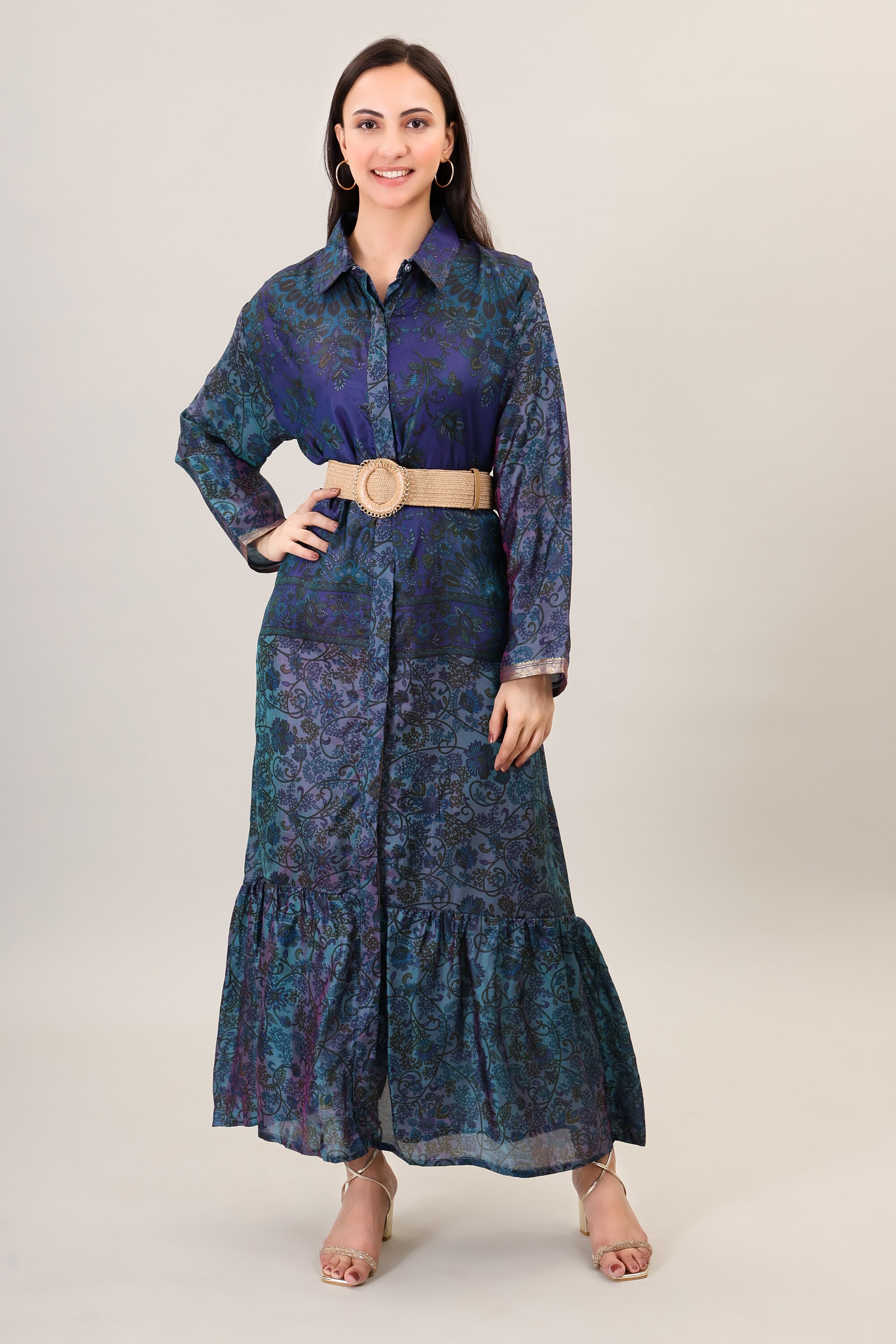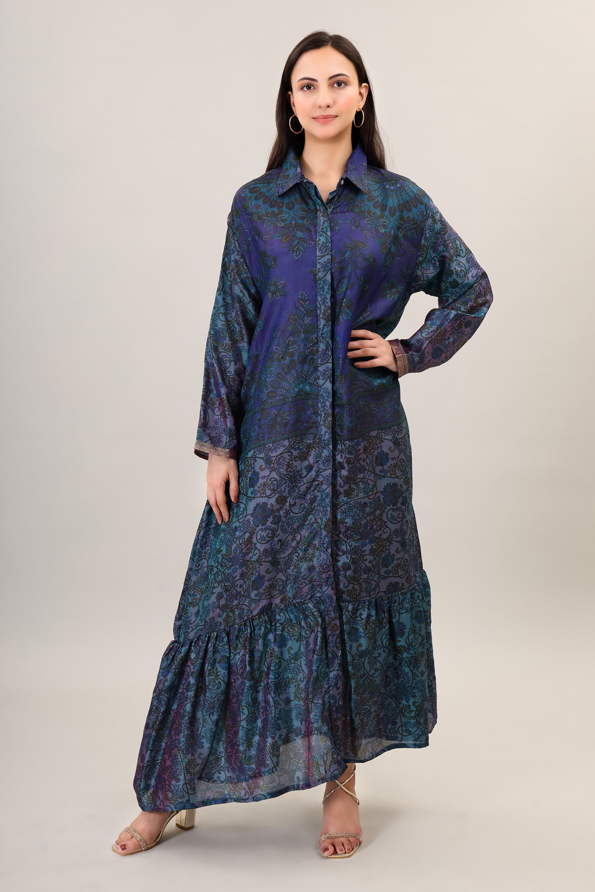 Handmade Silk Maxi Dress, Psychedelic Boho Flare Gown