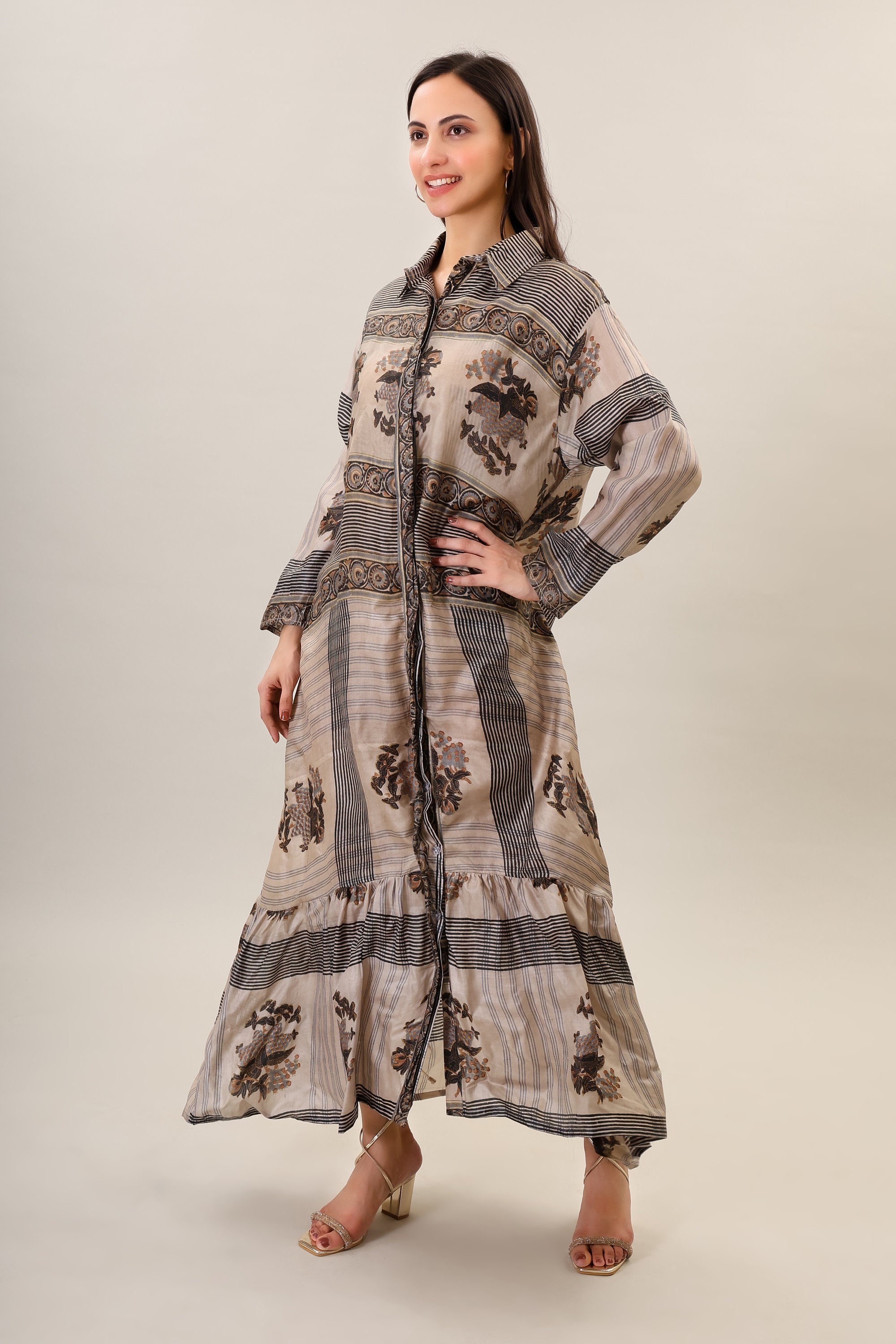 Bohemian Printed Natural Silk boho Maxi long dress psychedelic clothing silk summer beach bohemian dress