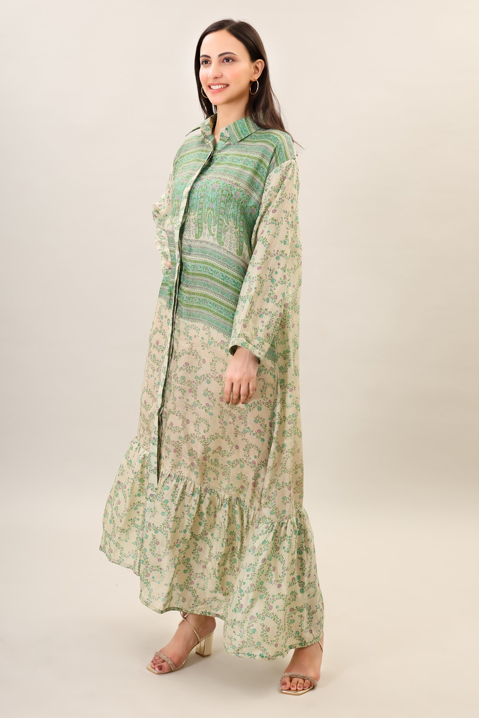 Bohemian Printed Natural Silk boho Maxi long dress psychedelic clothing silk summer beach bohemian dress