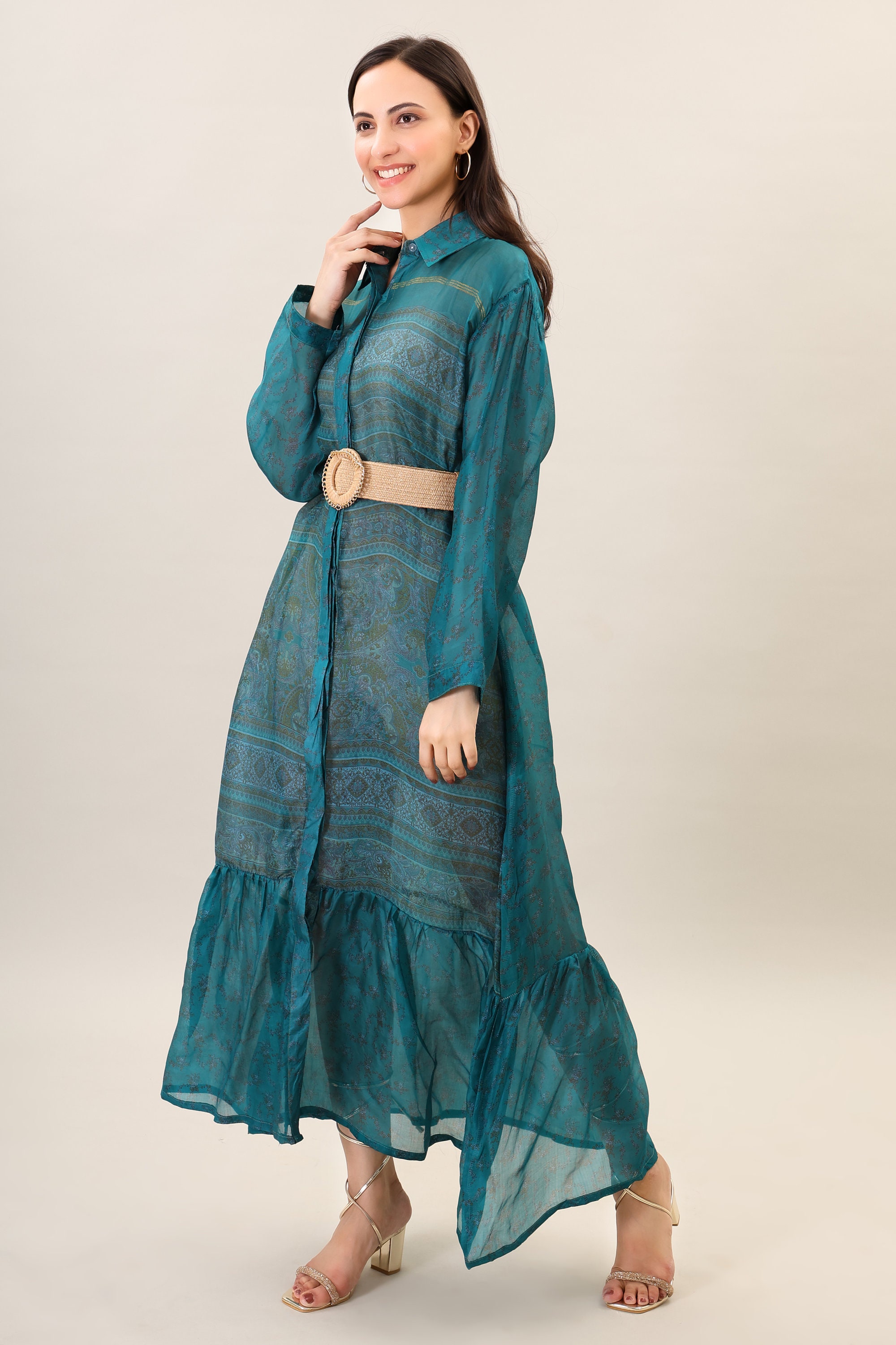 Boho Silk Maxi Dress, Psychedelic Print, Bohemian Flare