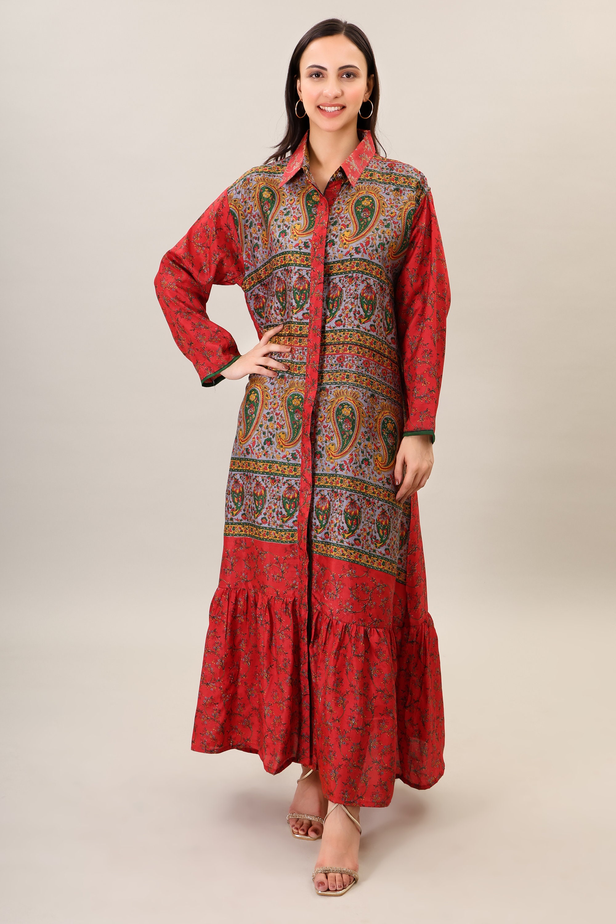 Bohemian Printed Natural Silk boho Maxi long dress psychedelic clothing silk summer beach bohemian dress