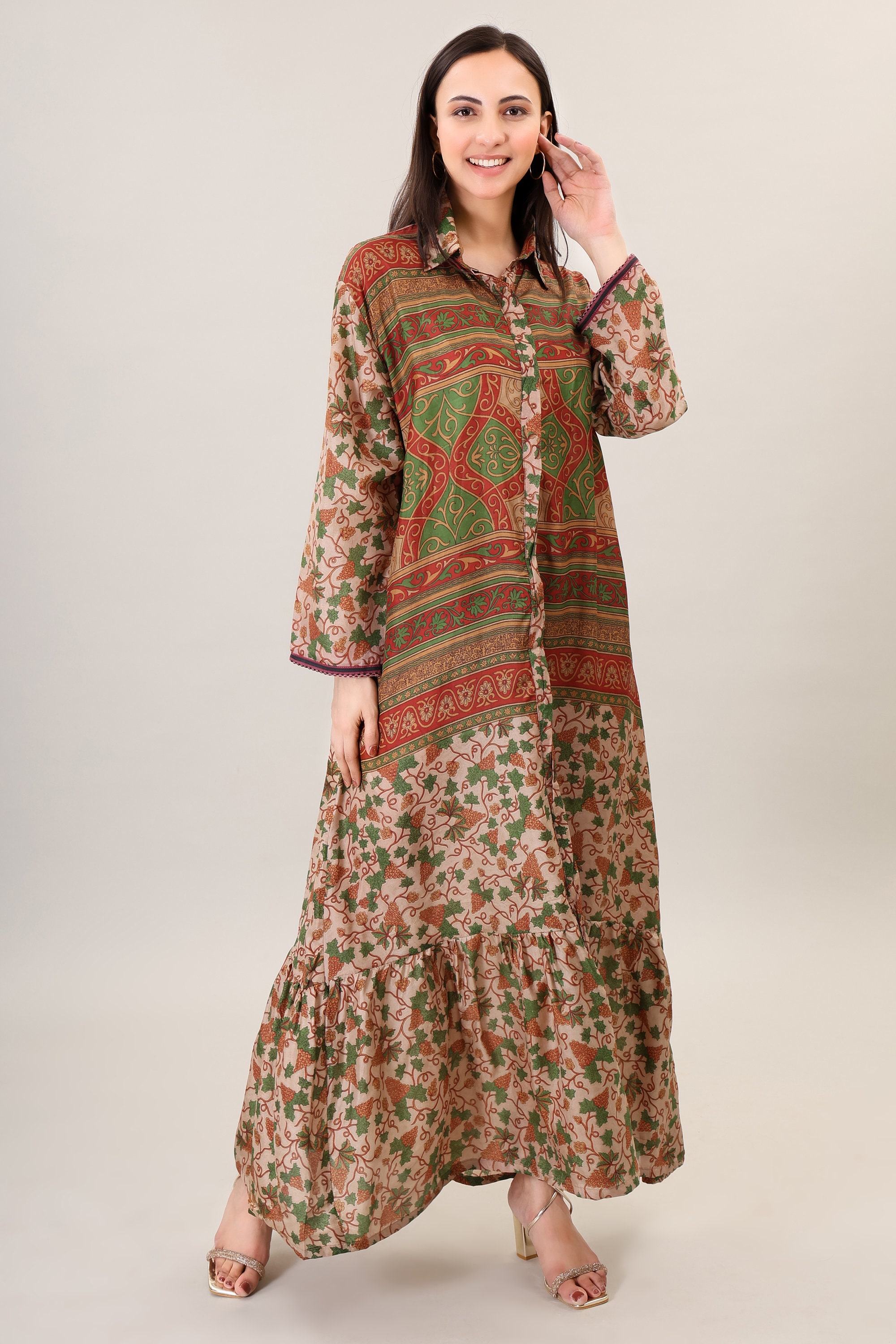 Boho Silk Maxi Dress: Printed Psychedelic Flare, Bohemian Clothing