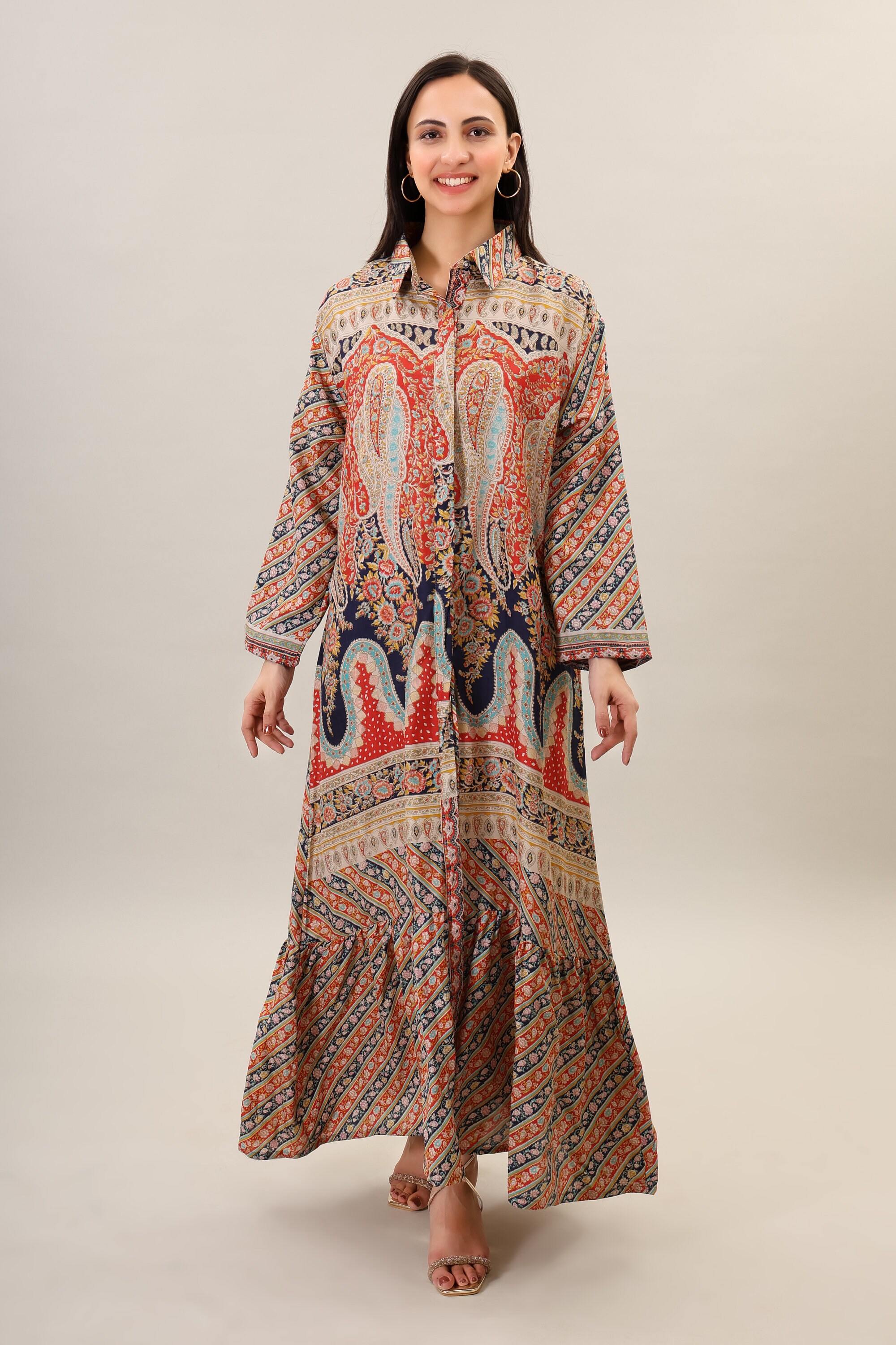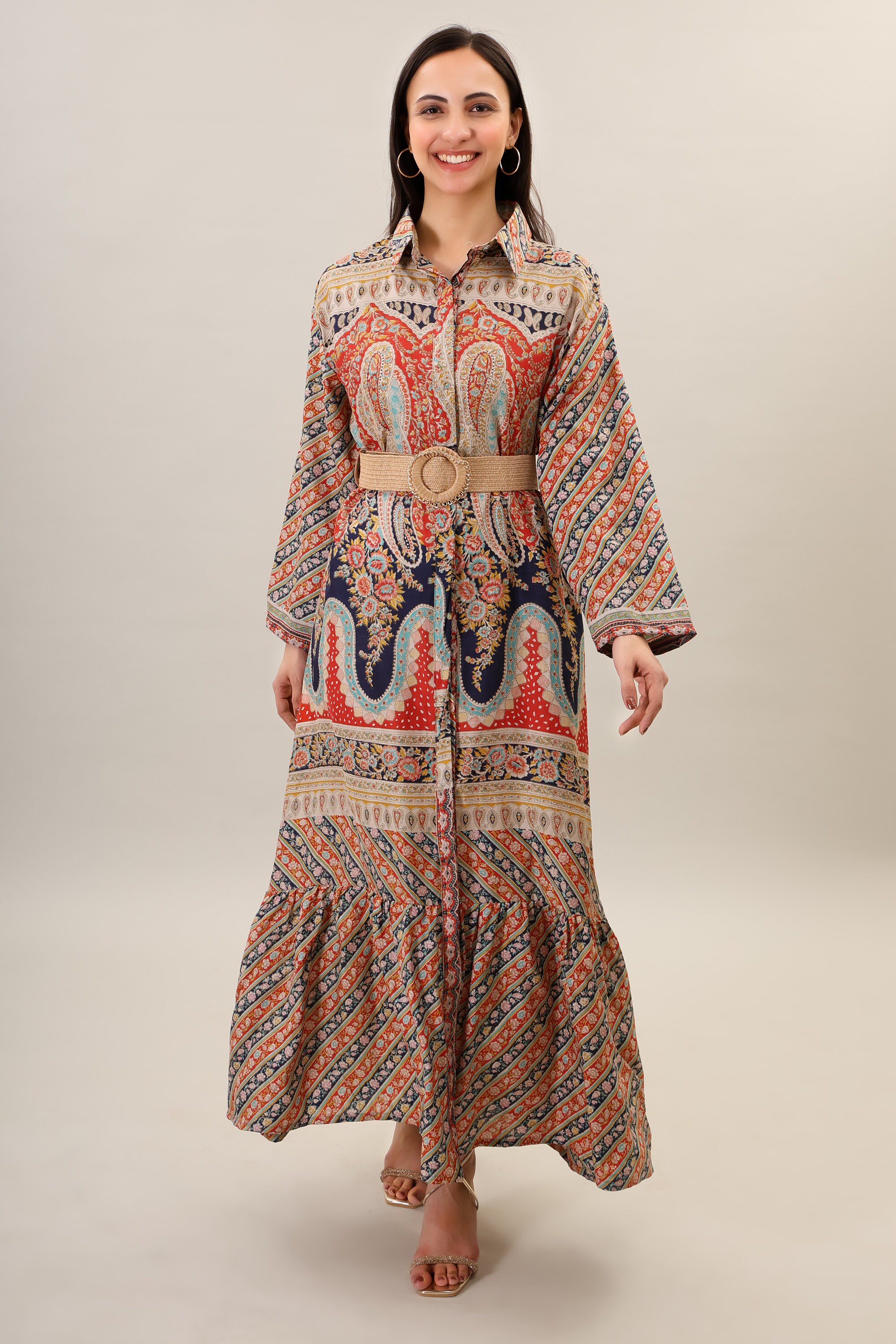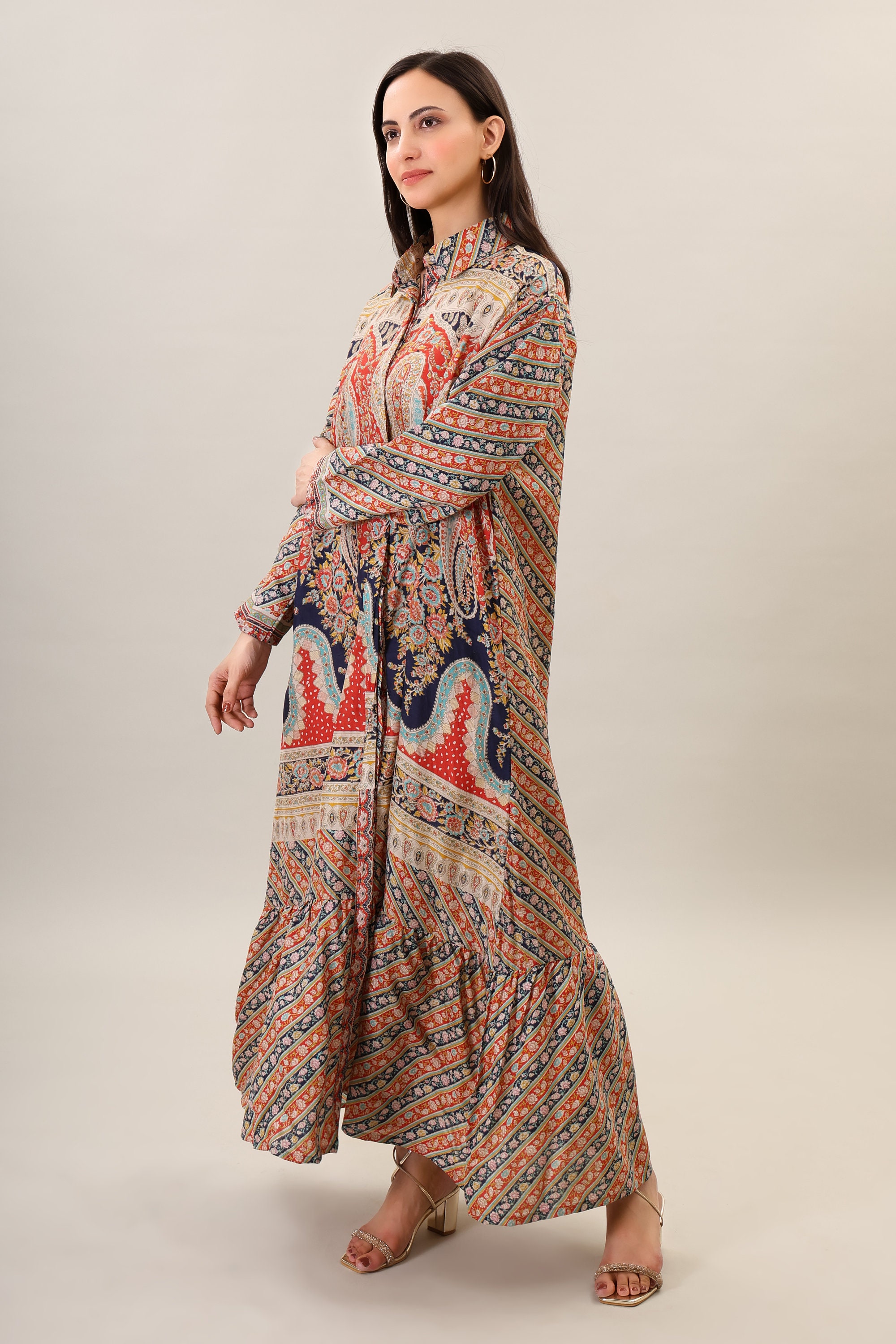 Handmade Silk Boho Maxi Dress, Psychedelic Print Bohemian Clothing