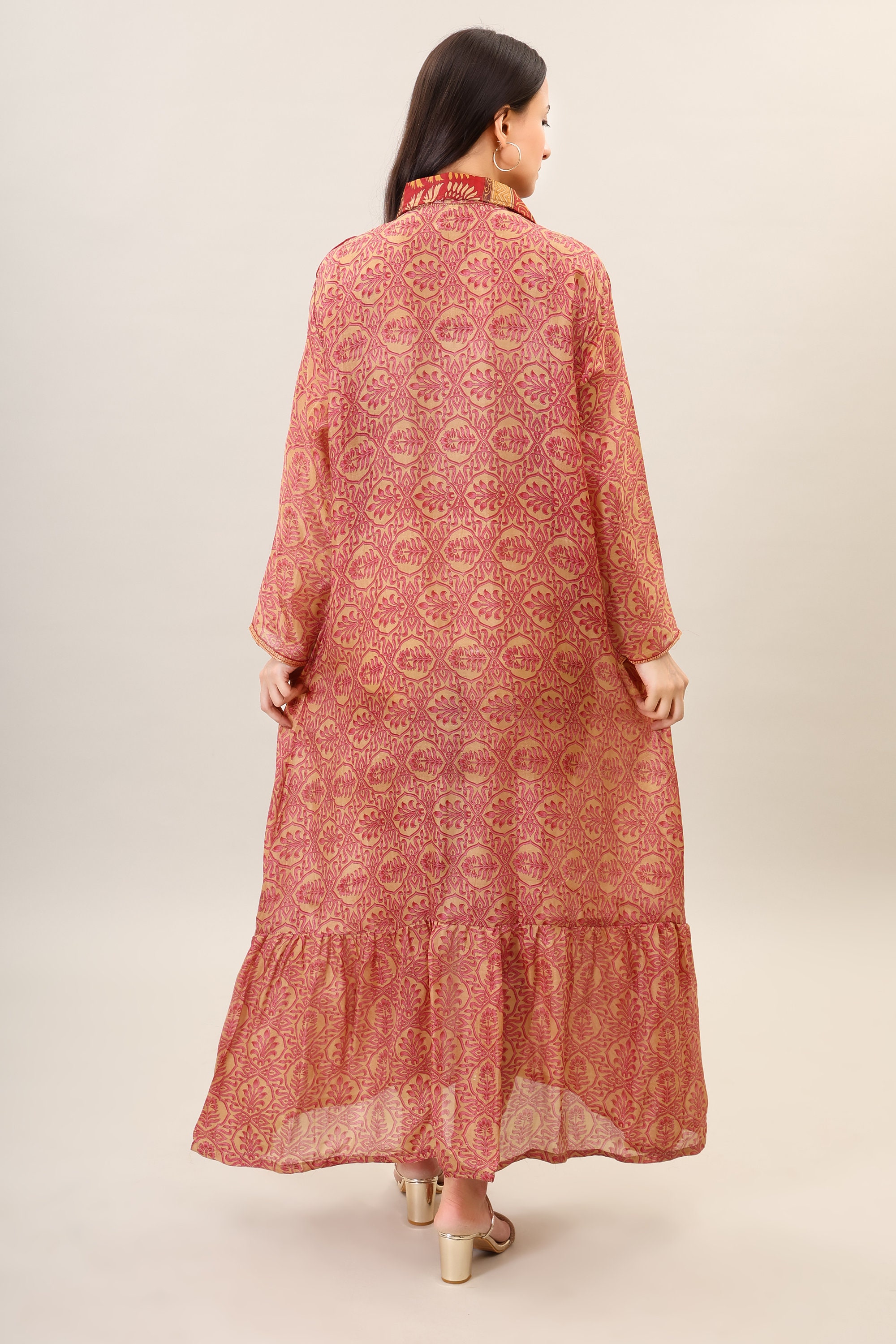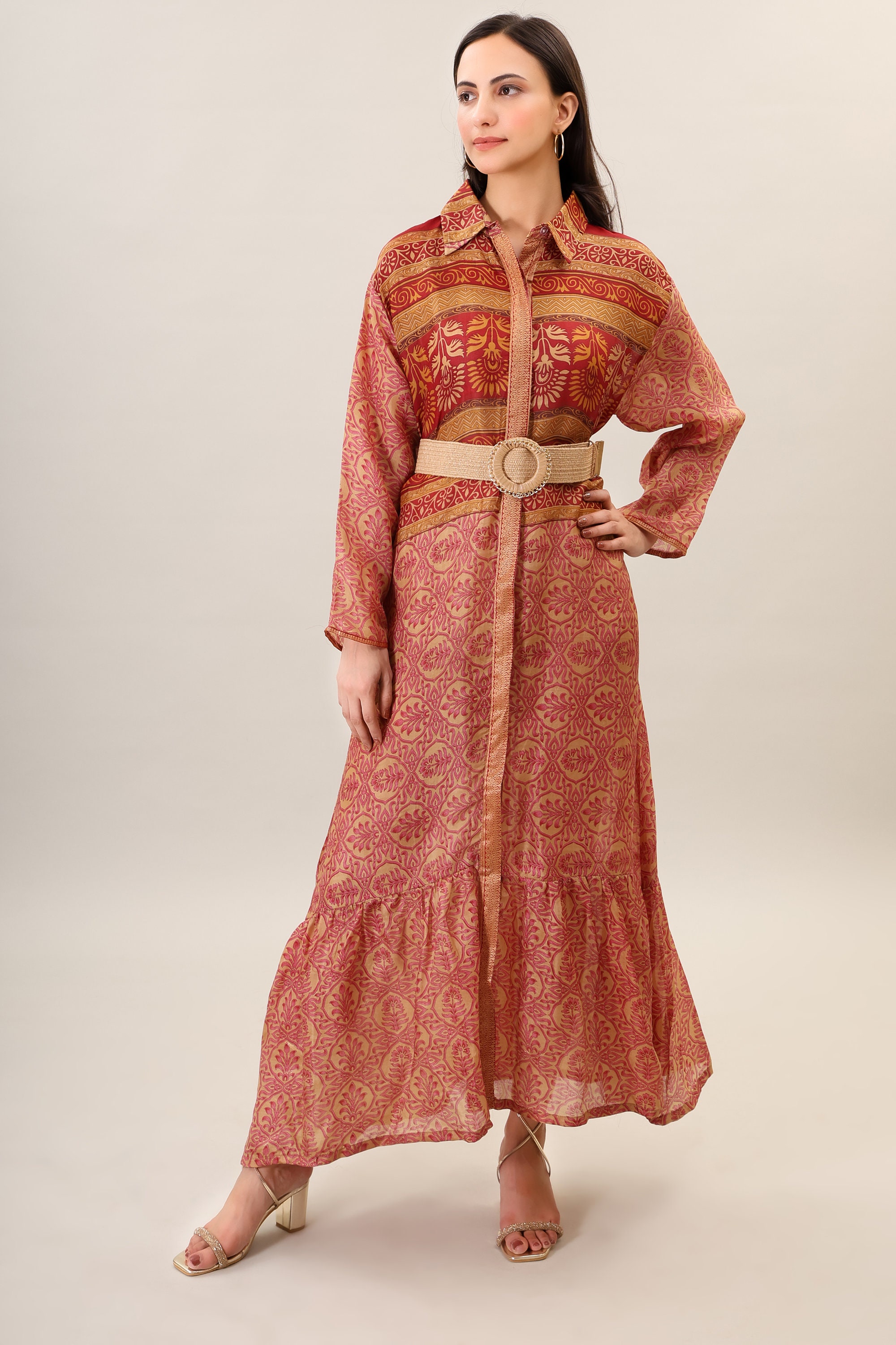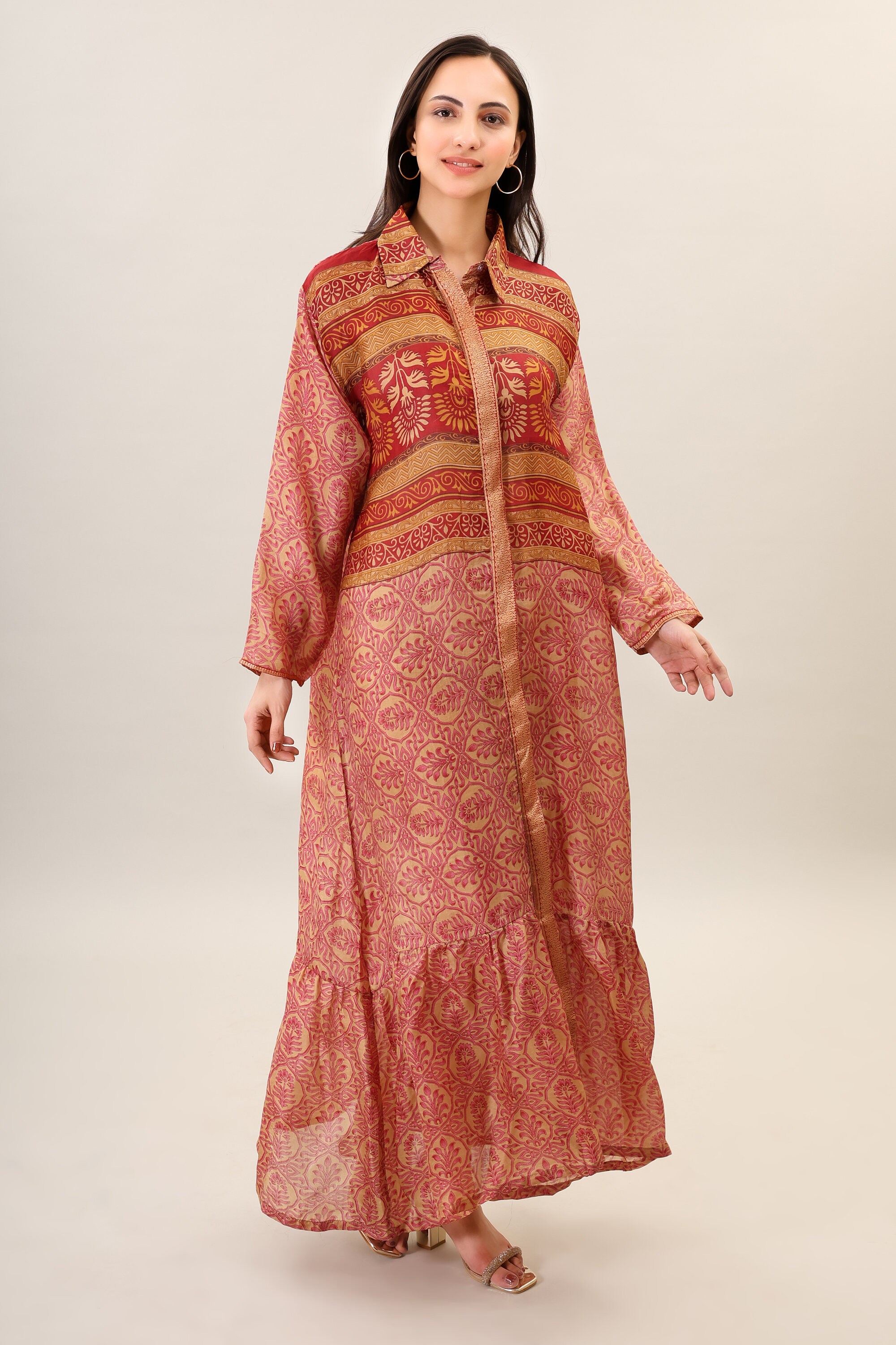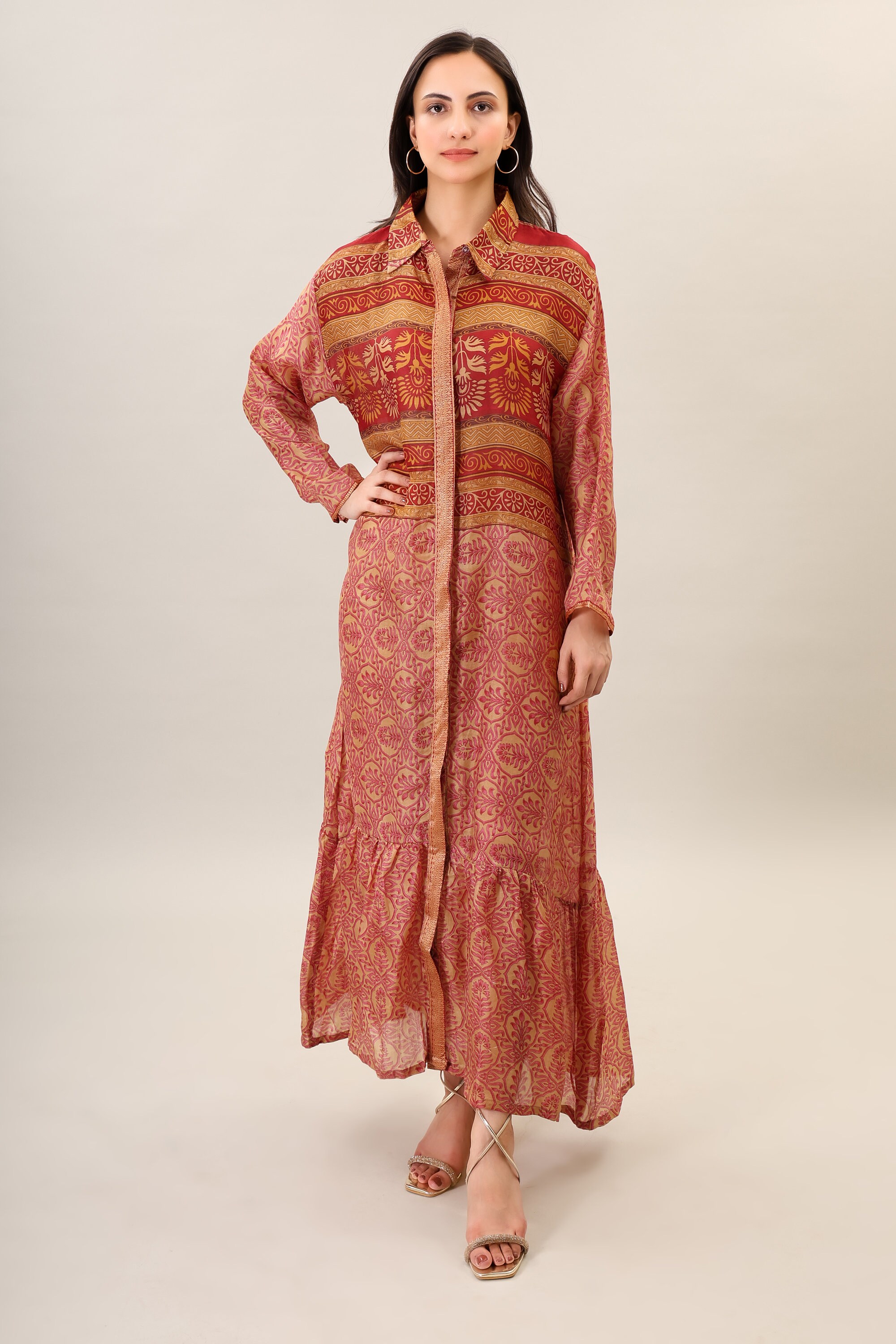 Printed Silk Boho Maxi Dress, Handmade Psychedelic Clothing