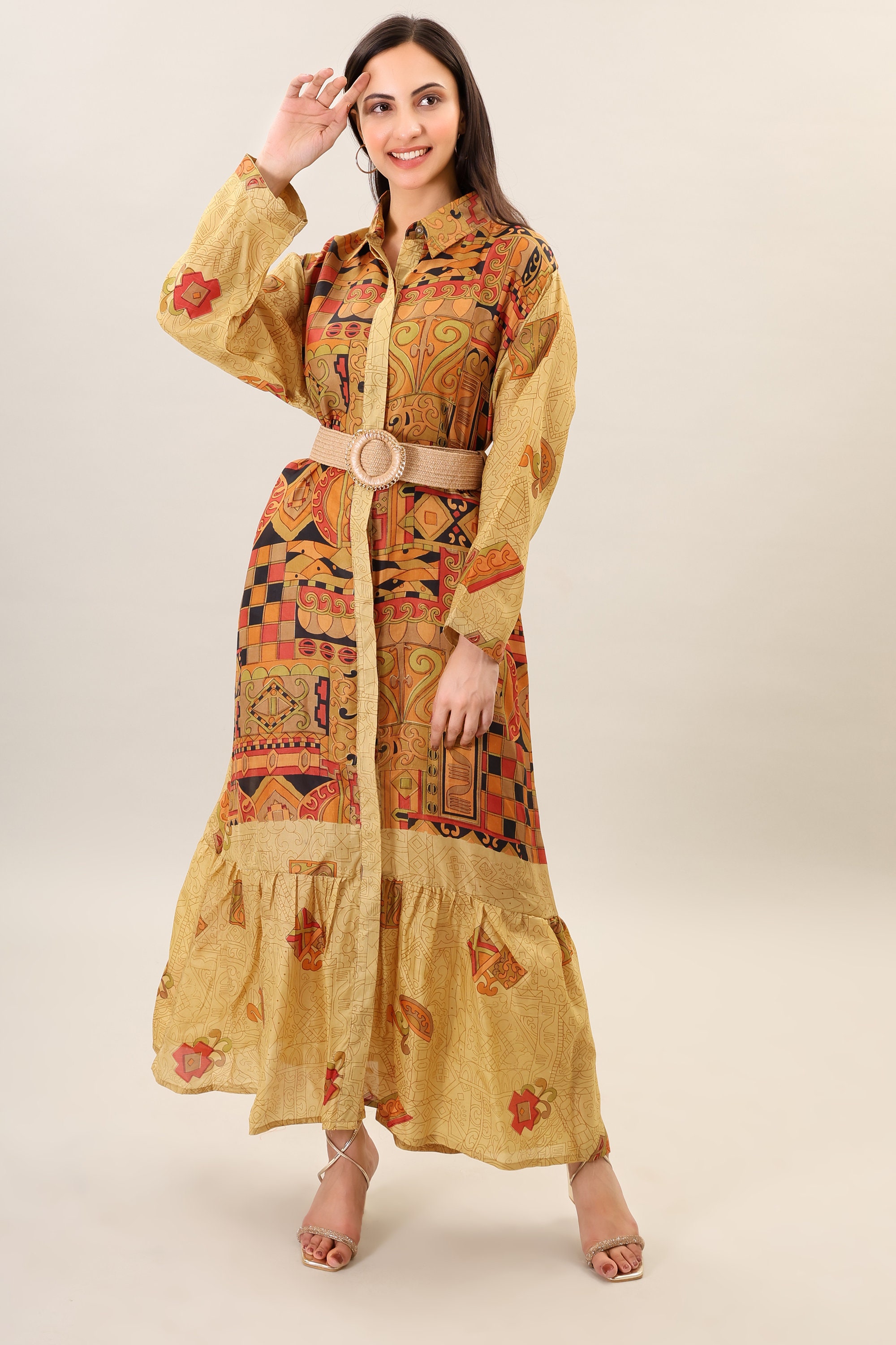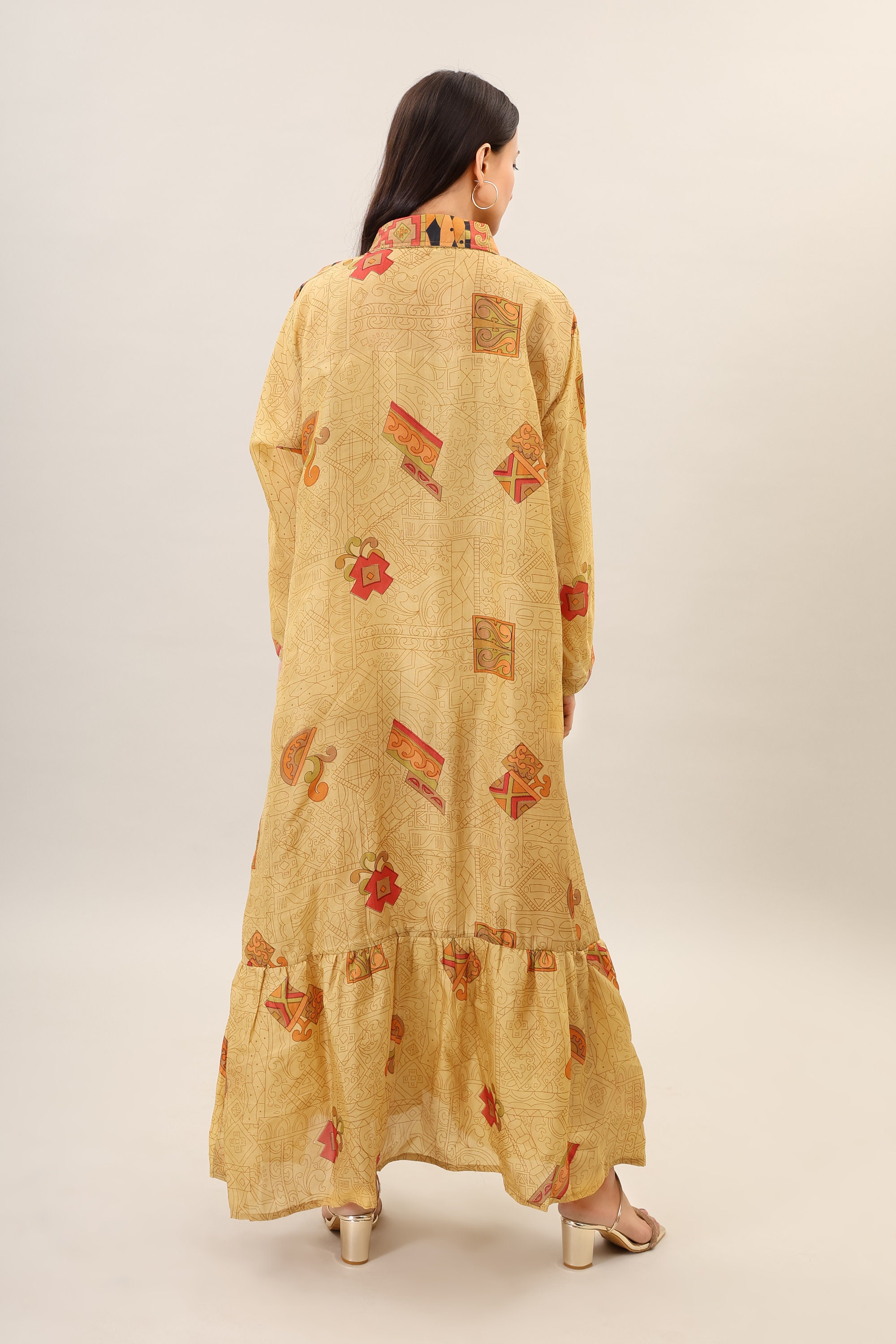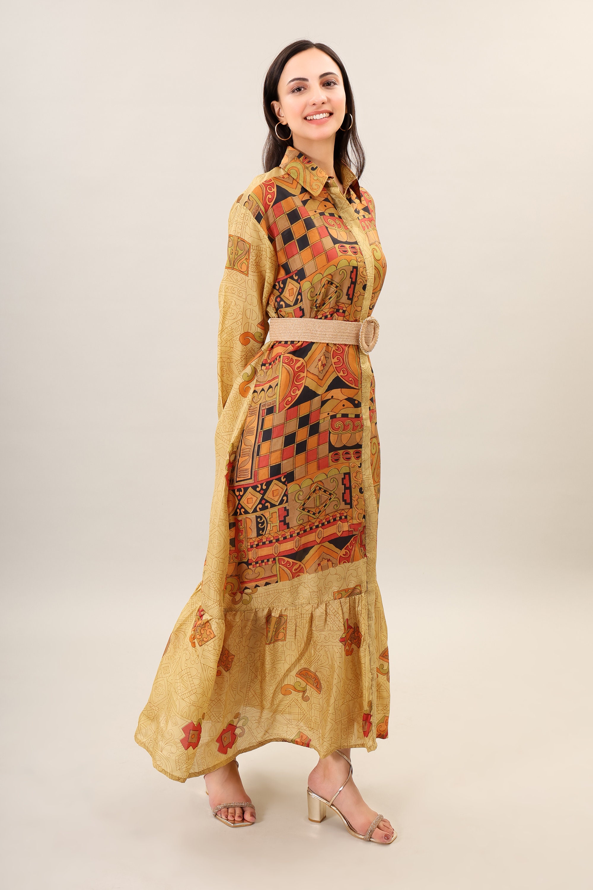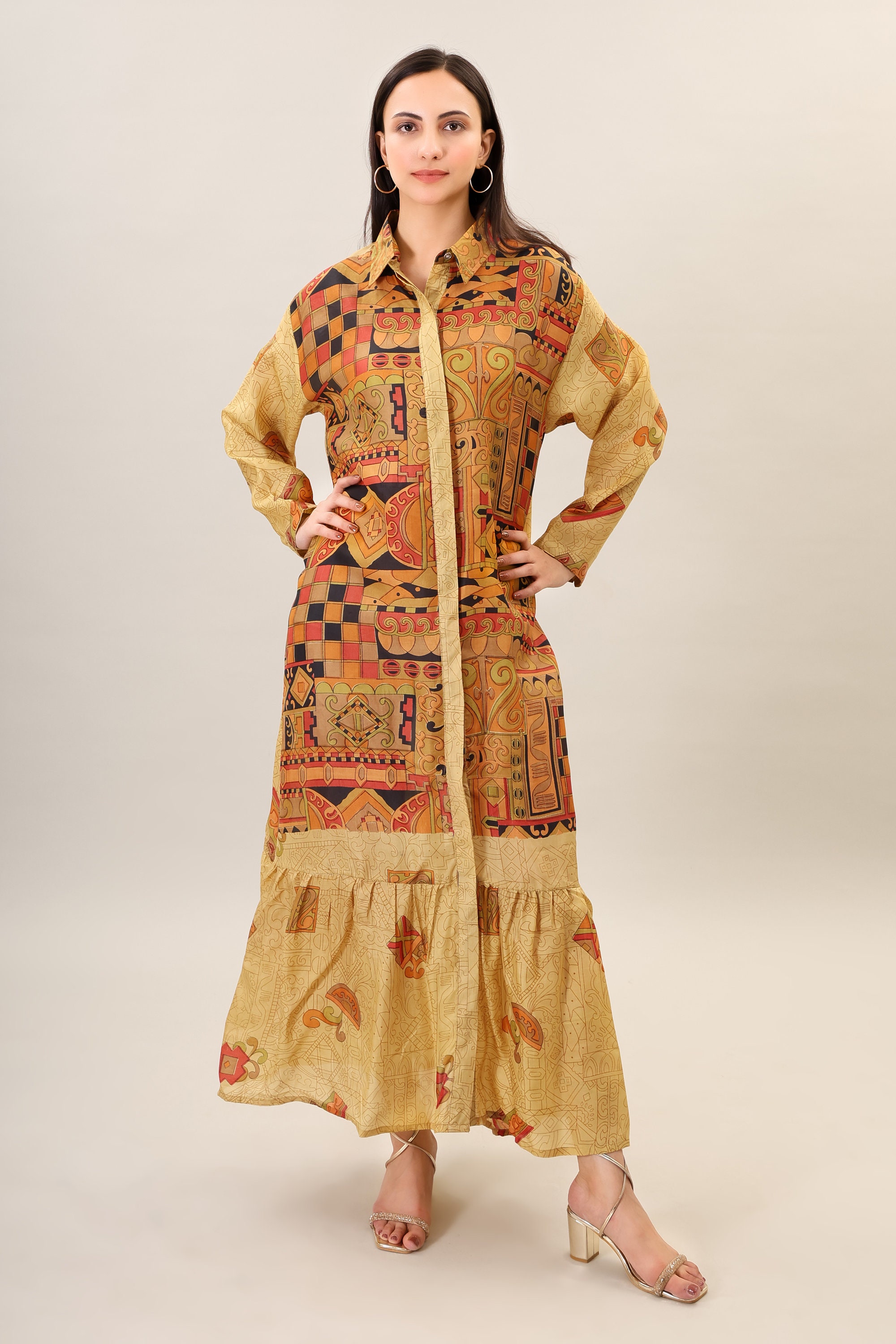Printed Silk Maxi Dress, Handmade Bohemian Flare Dress