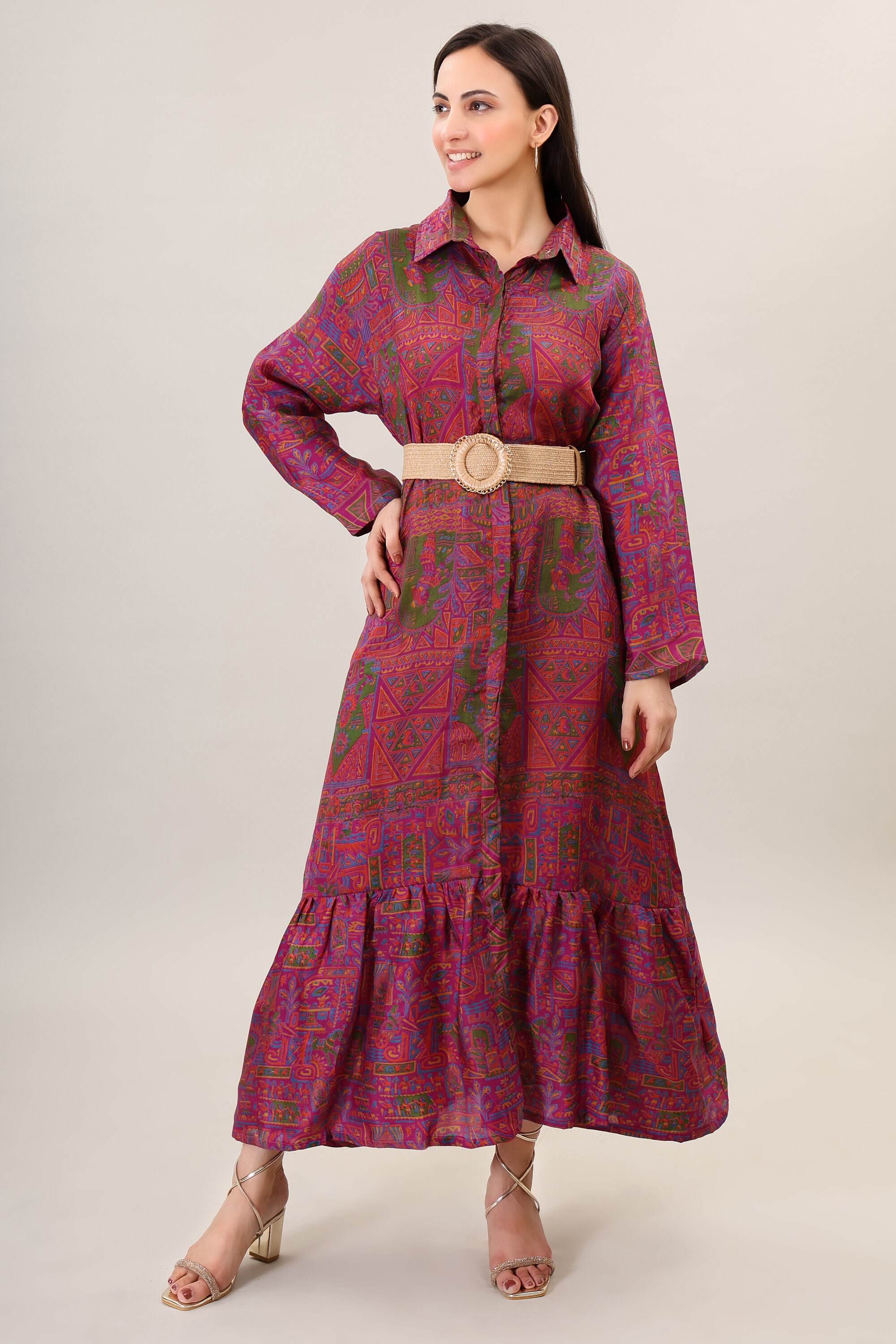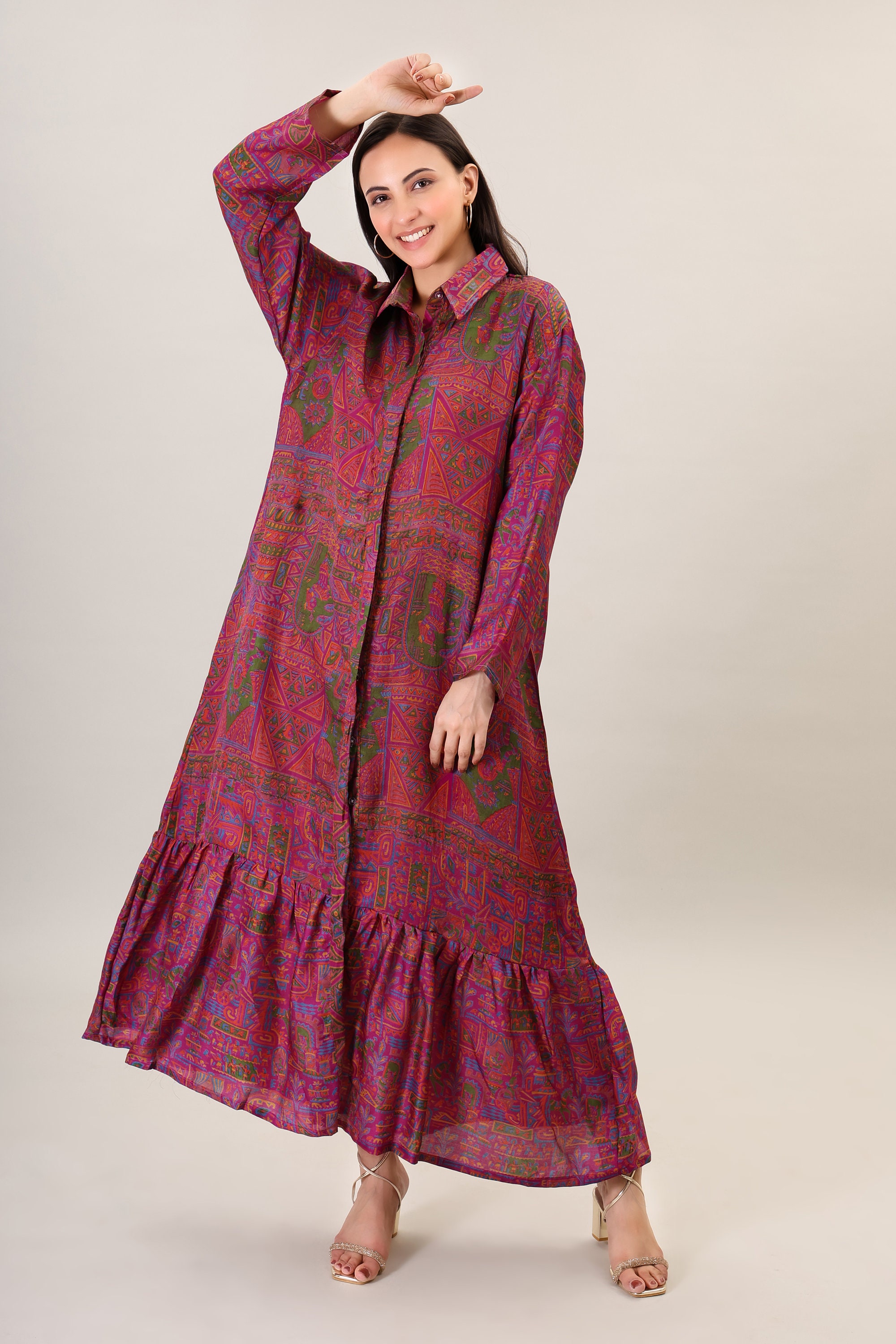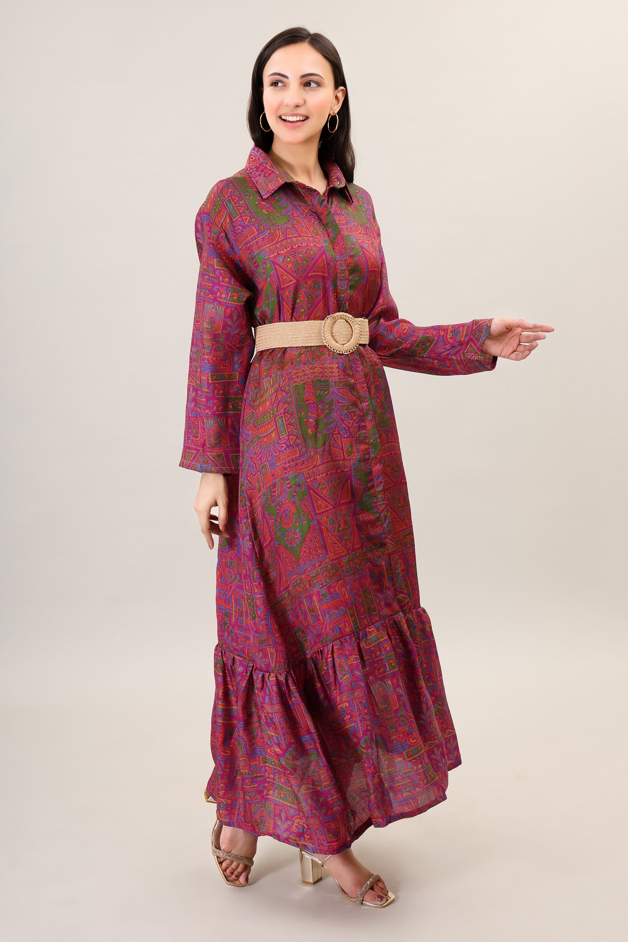 Printed Silk Boho Maxi Dress, Psychedelic Flare Dress