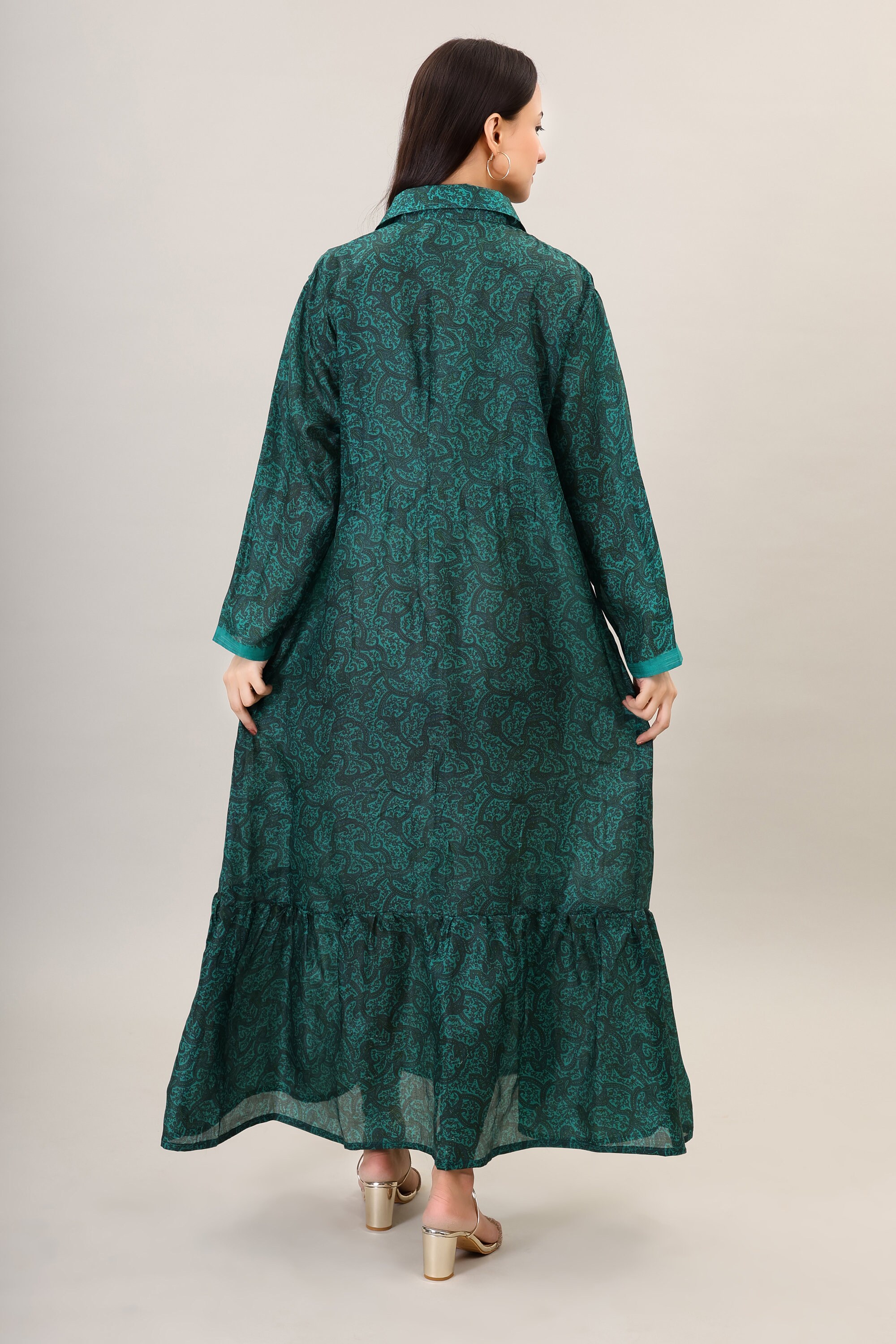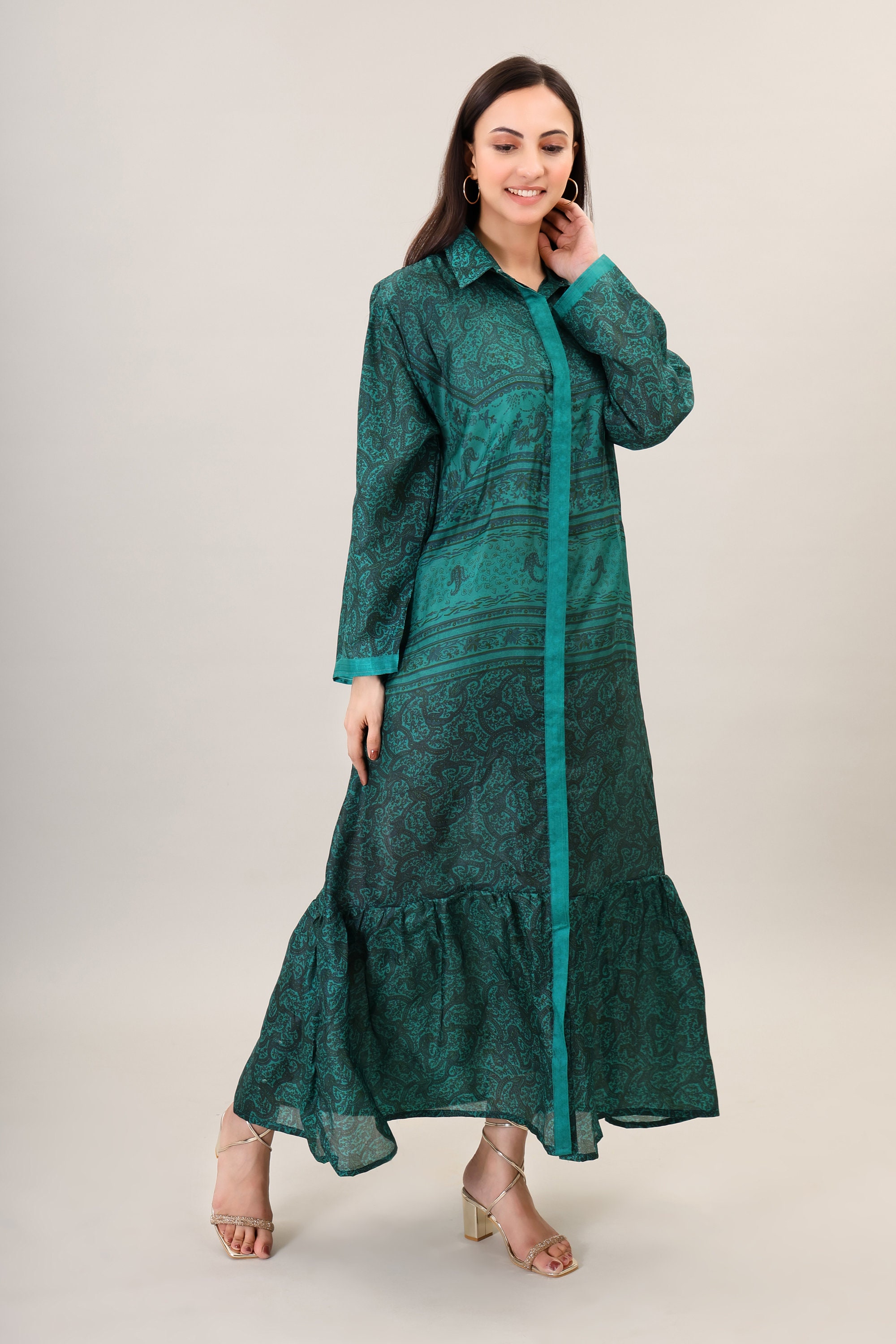 Bohemian Printed Natural Silk boho Maxi long dress psychedelic clothing silk summer beach bohemian dress