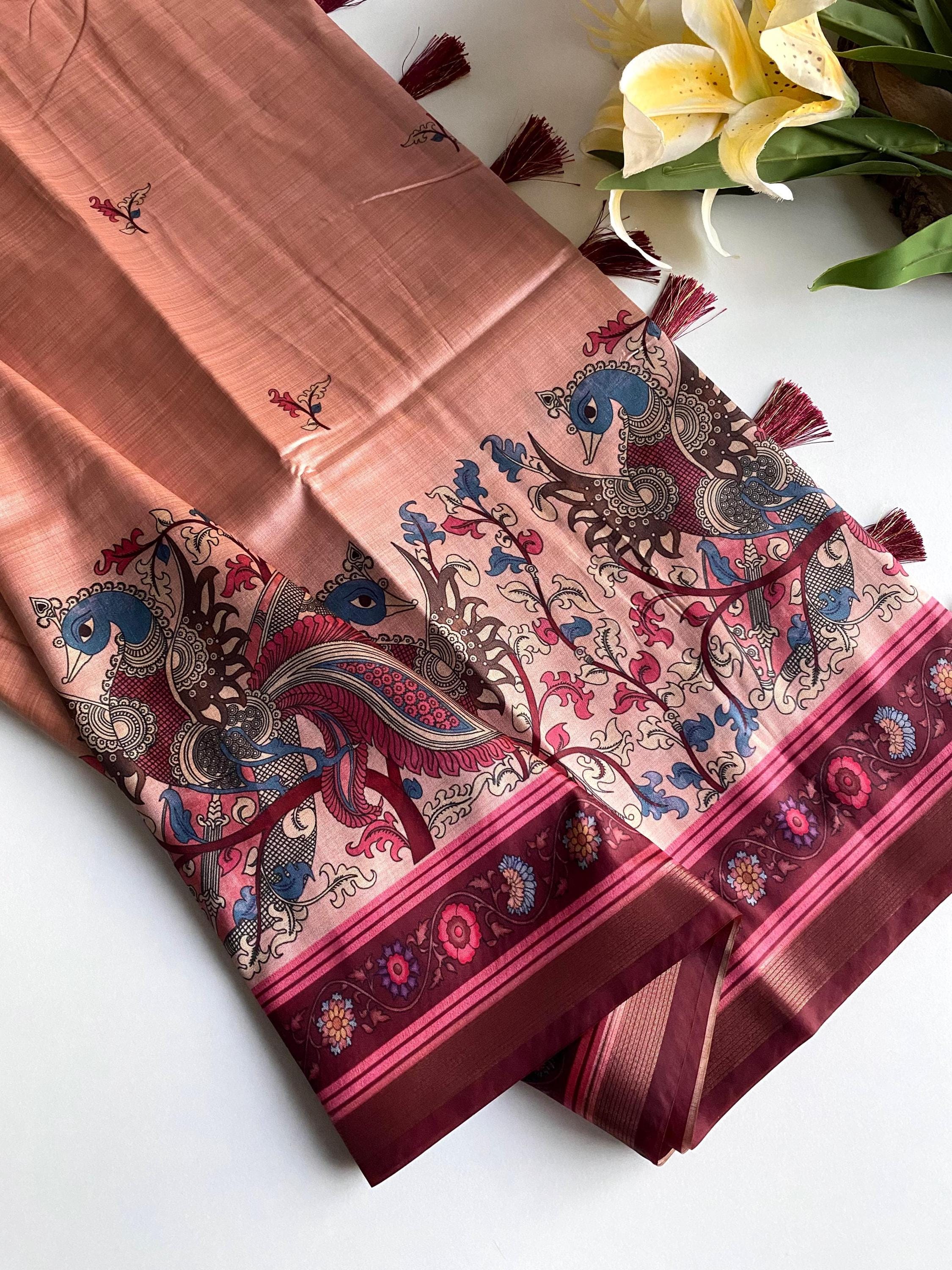 Handloom Chanderi Silk Saree, Kalamkari Floral Print, Wedding Sari