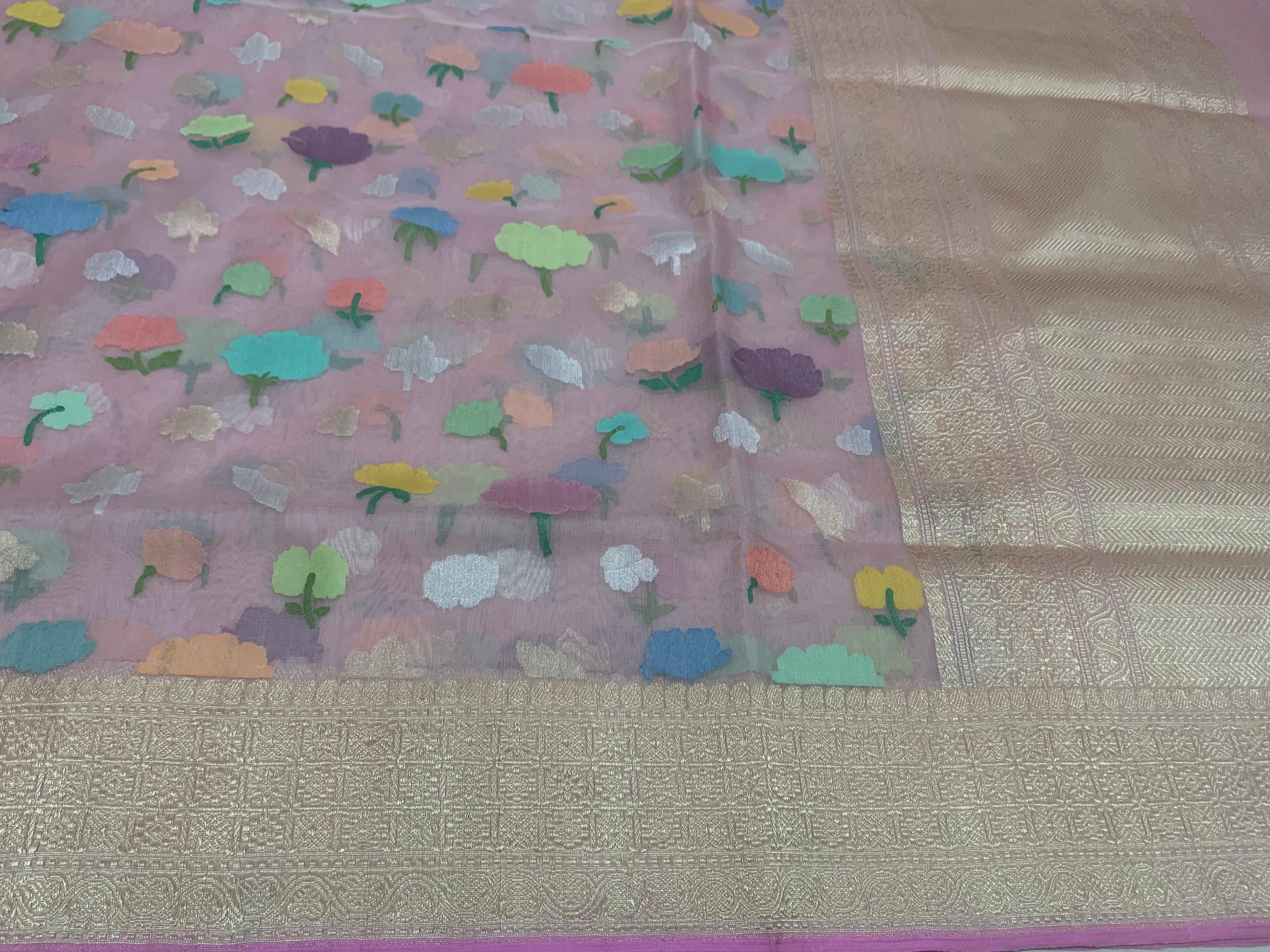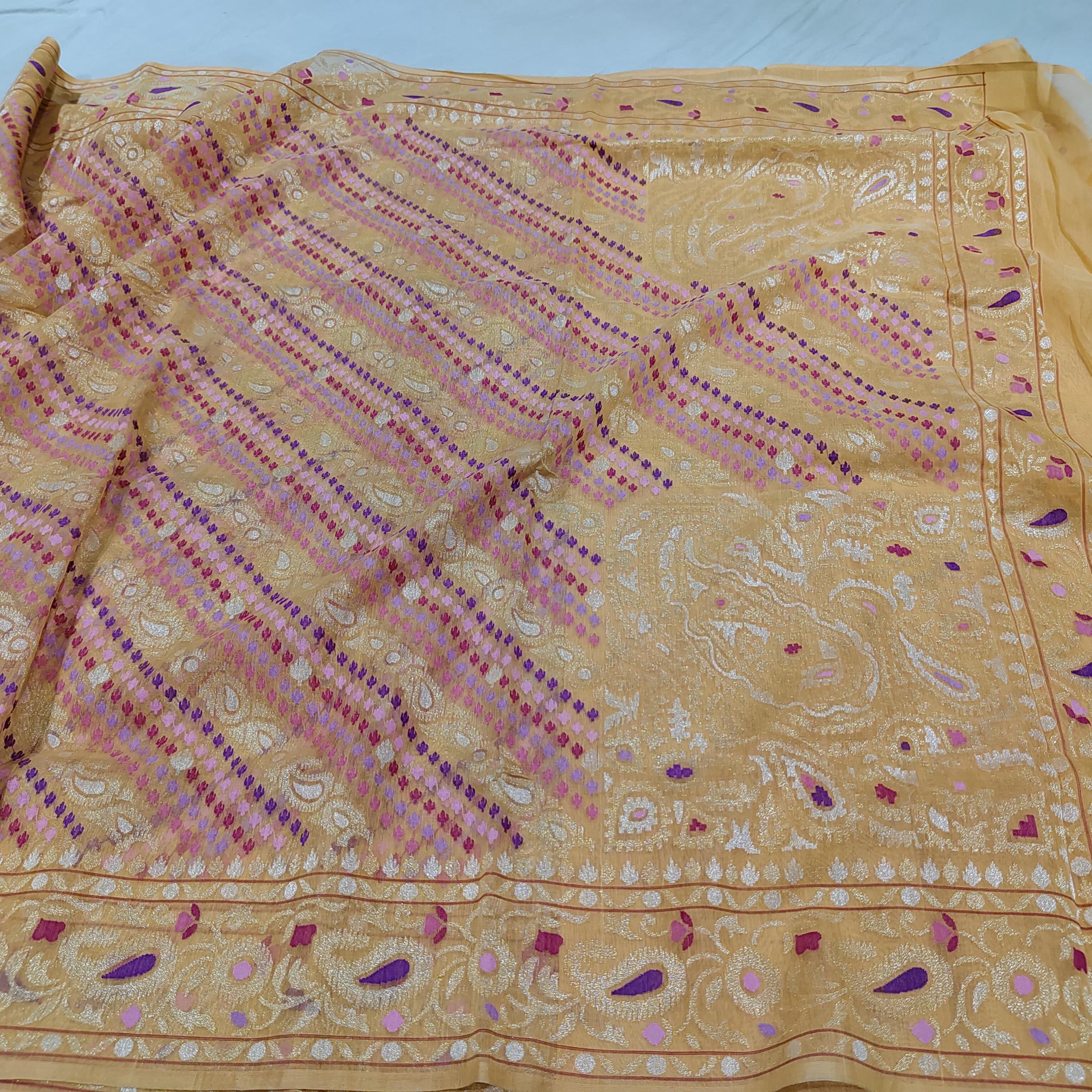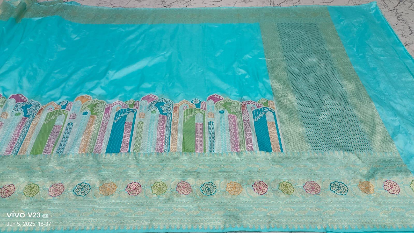 Experience the luxury of khaddi katan tissue Silk, adorned with exquisite handloom prints and a stunning organic banaras silk weave. This saree is a perfect fusion of heritage and contemporary elegance, making it ideal for weddings, festive occasions, and grand celebrations. A timeless masterpiece for your ethnic collection!