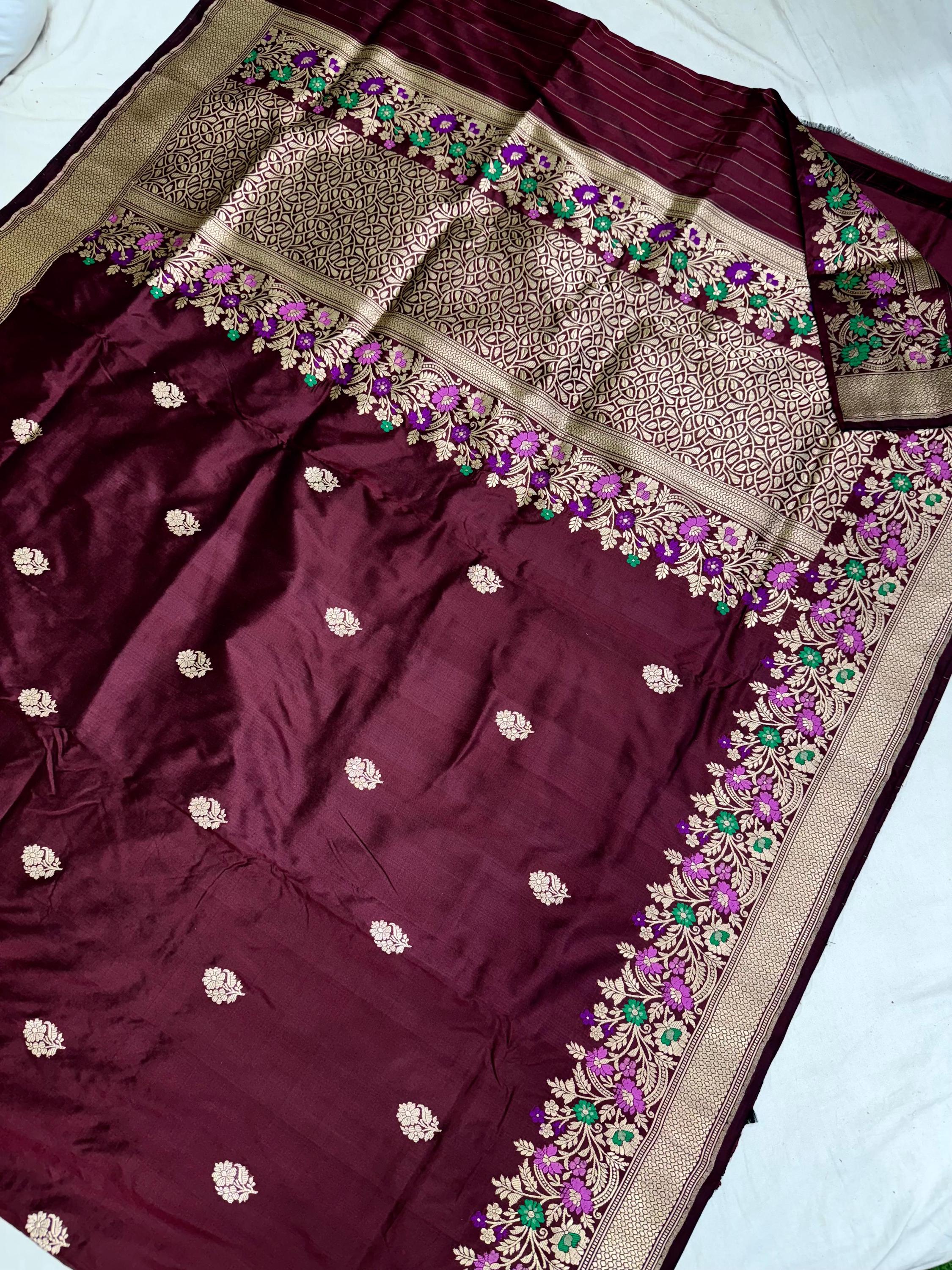 Experience the luxury of khaddi Silk, adorned with exquisite handloom prints and a stunning organic banaras silk weave. This saree is a perfect fusion of heritage and contemporary elegance, making it ideal for weddings, festive occasions, and grand celebrations. A timeless masterpiece for your ethnic collection!