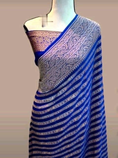 Experience the luxury of khaddi georgette chiffon, adorned with exquisite handloom prints and a stunning organic banaras silk weave. This saree is a perfect fusion of heritage and contemporary elegance, making it ideal for weddings, festive occasions, and grand celebrations. A timeless masterpiece for your ethnic collection!