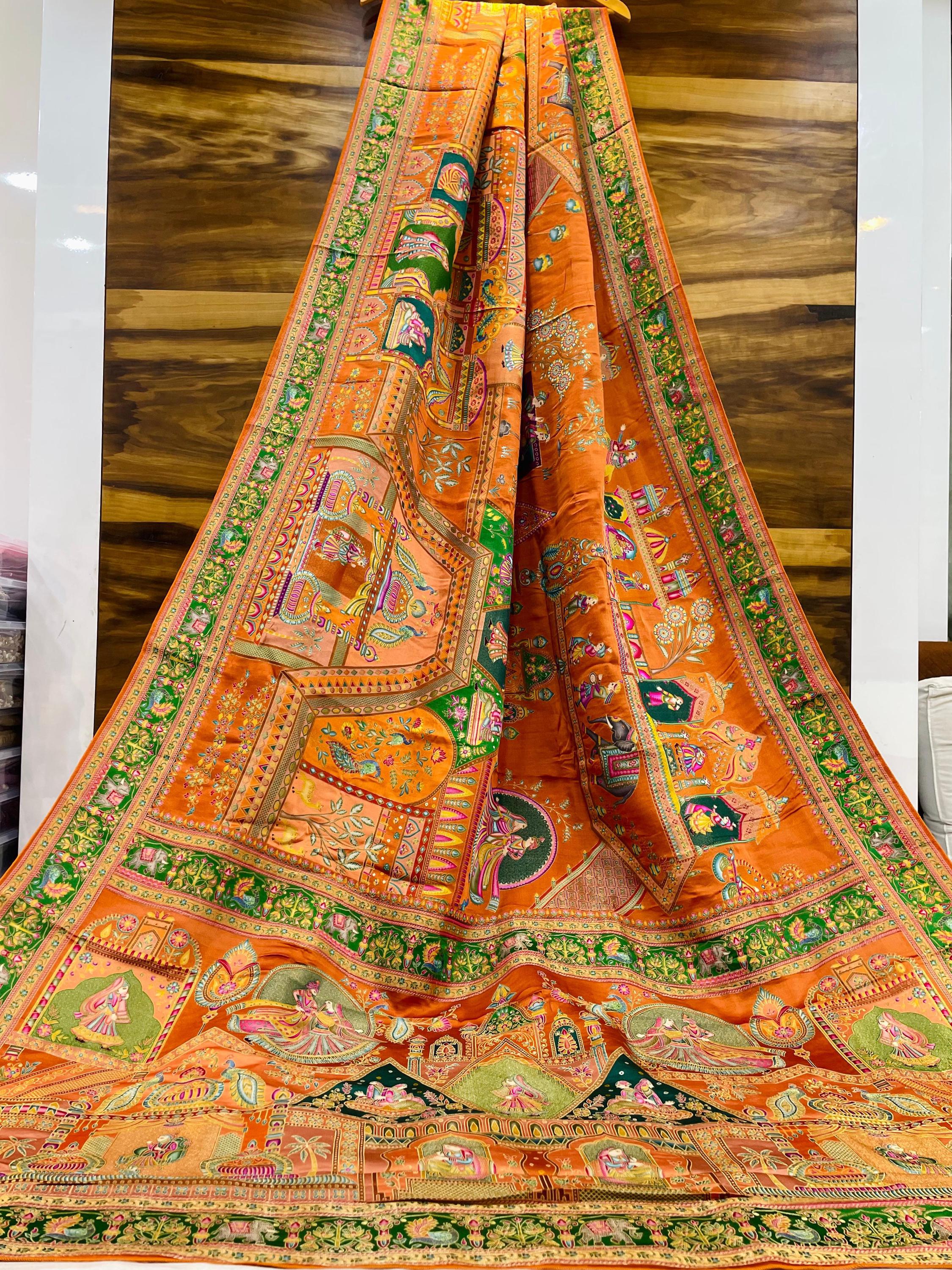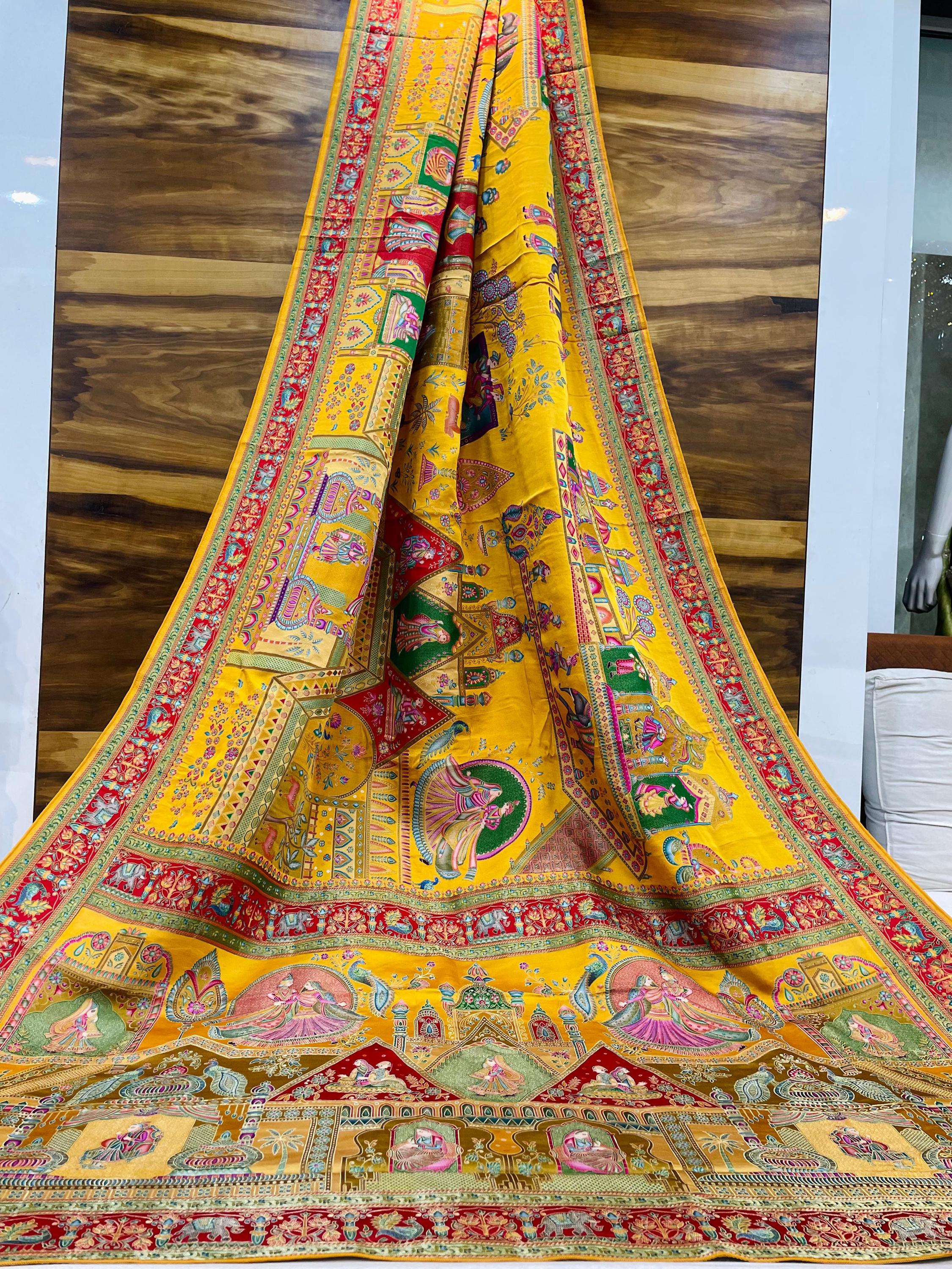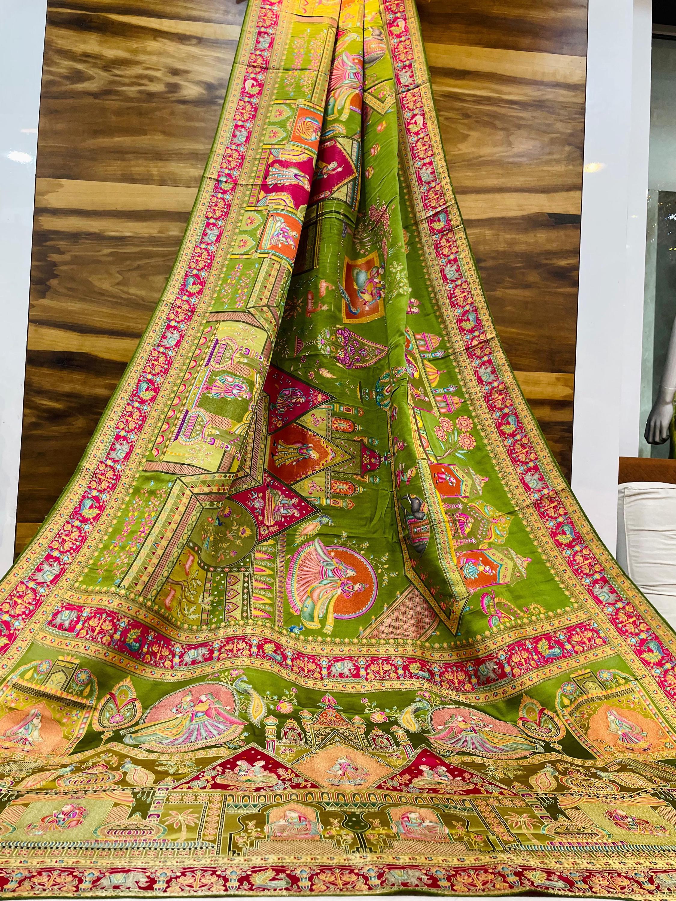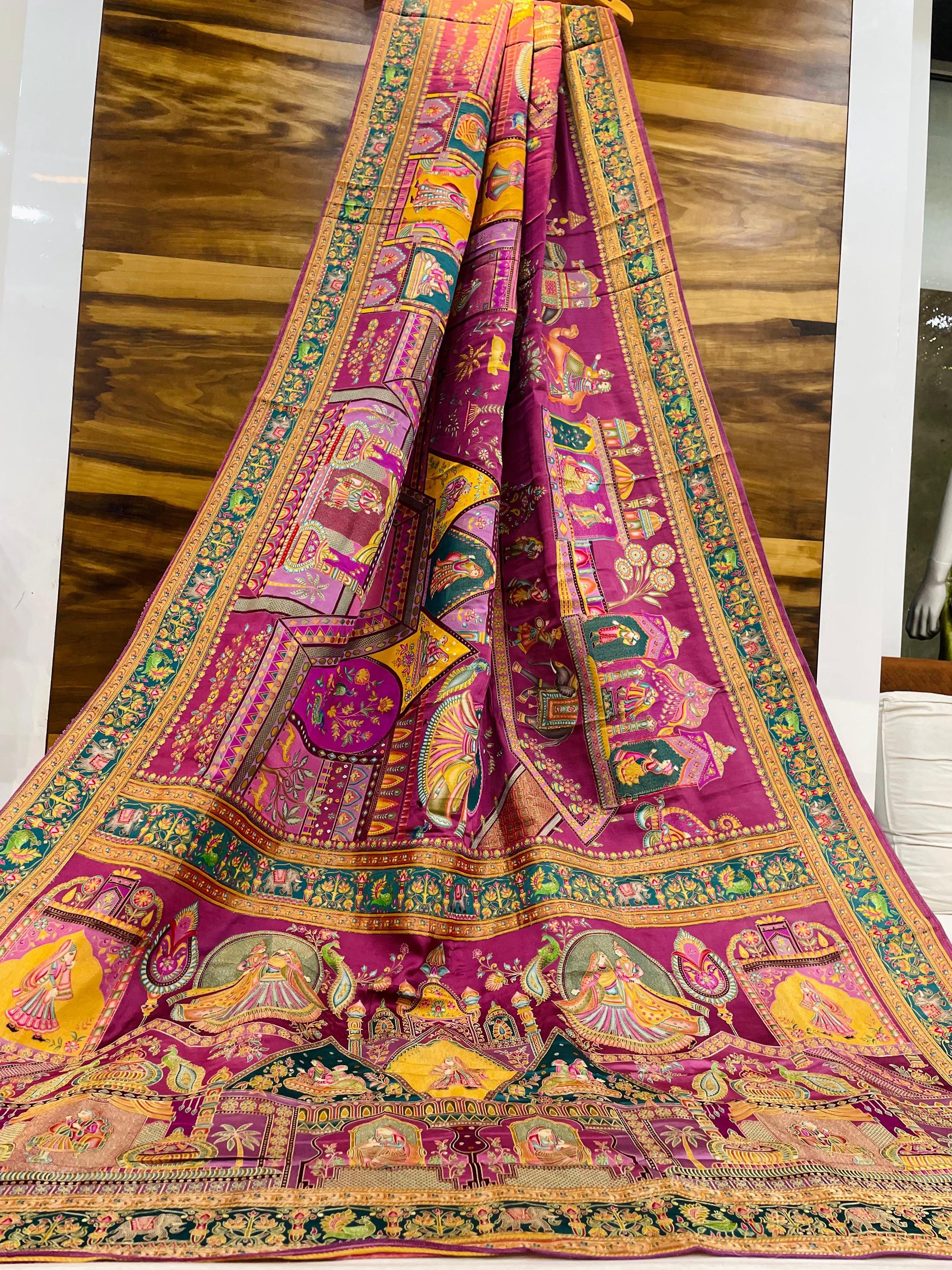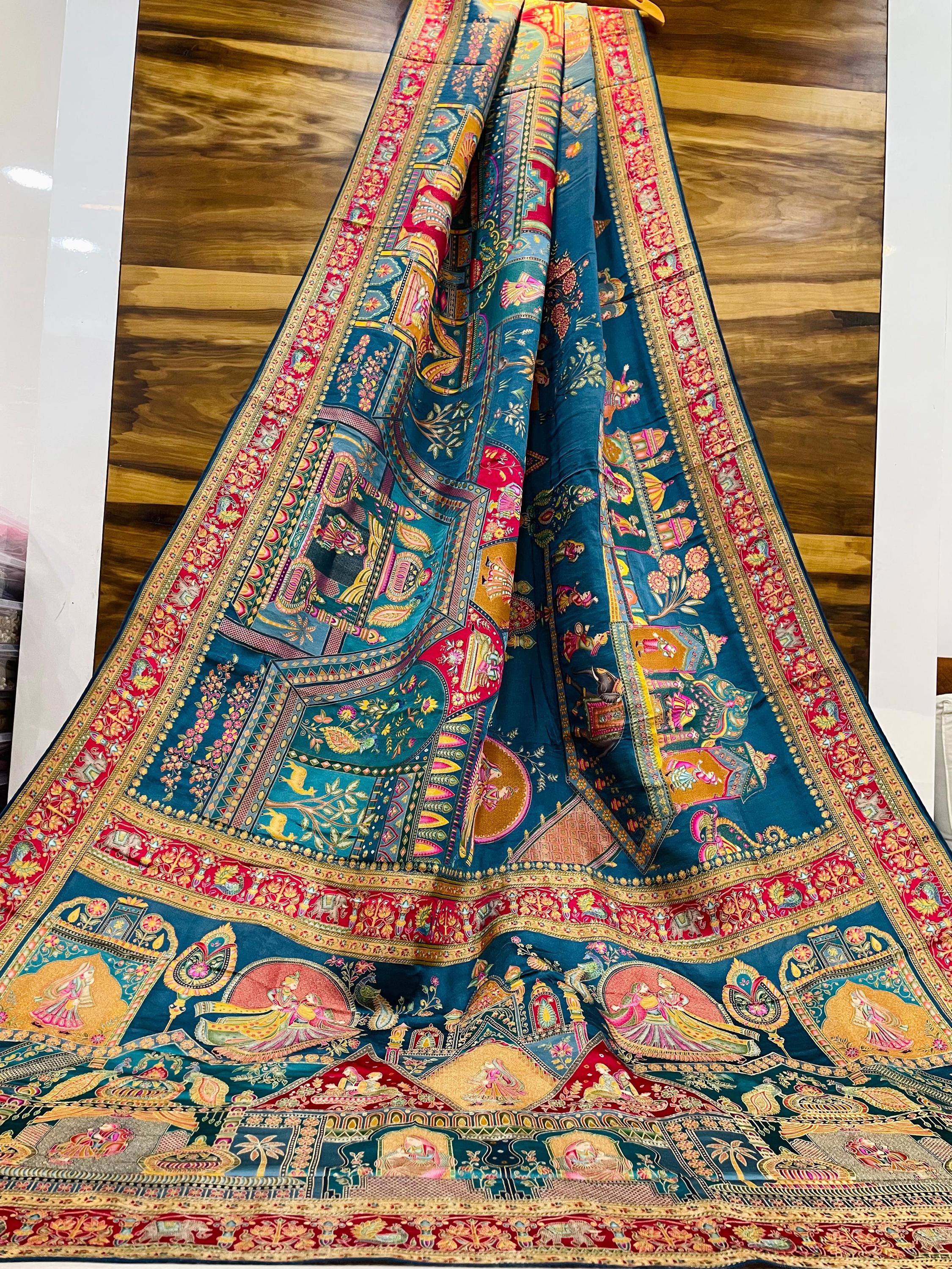 Experience the luxury of Gajji Silk, adorned with exquisite pashmina print work and a stunning organic gaji silk weave. This saree is a perfect fusion of heritage and contemporary elegance, making it ideal for weddings, festive occasions, and grand celebrations. A timeless masterpiece for your ethnic collection!