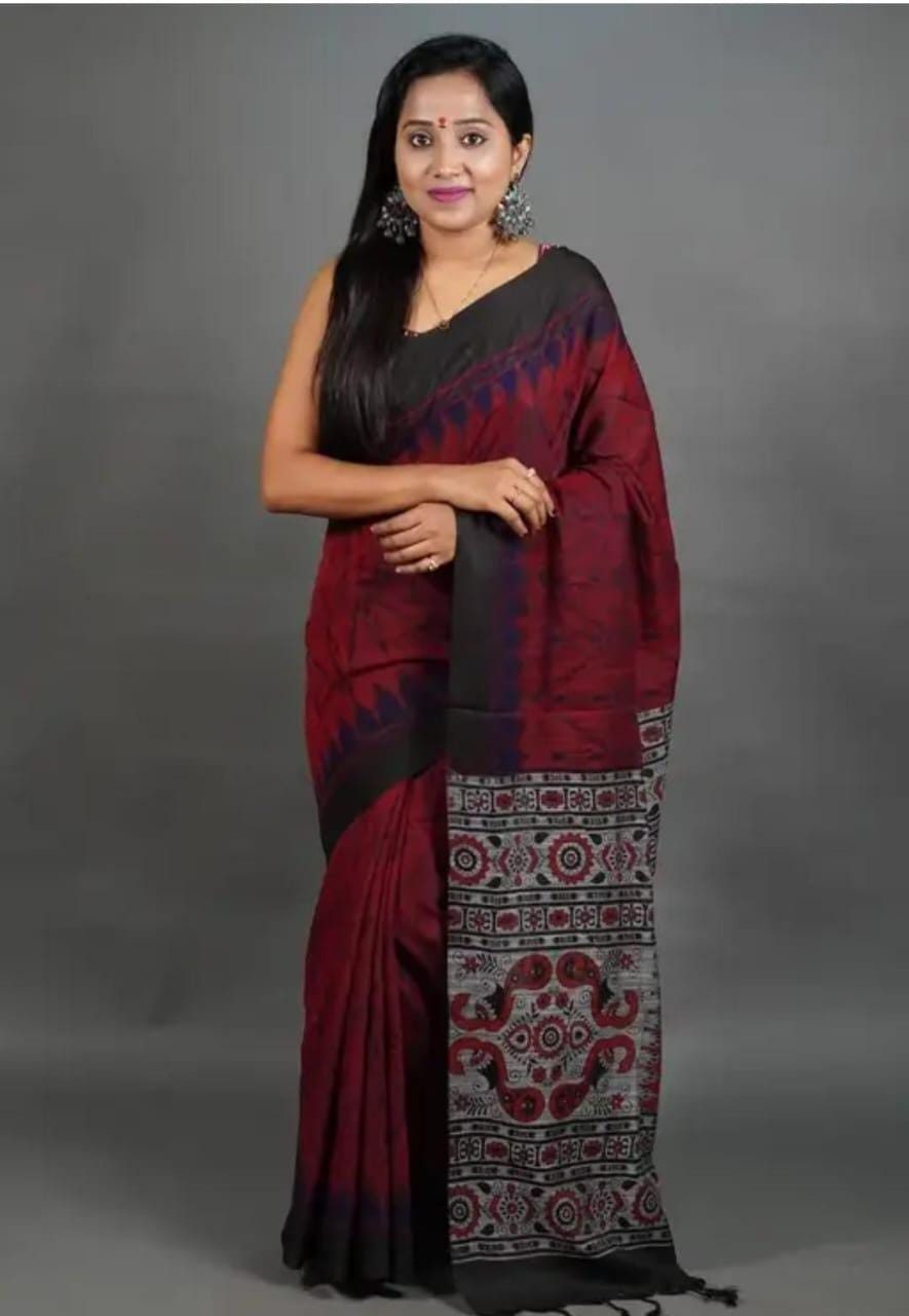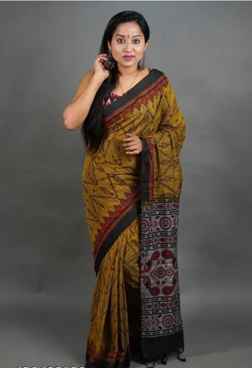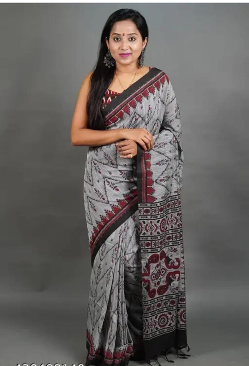 Experience the luxury of Sambalpuri Beki adorned with exquisite handloom prints and a stunning organic Chanderi silk Blouse This saree is a perfect fusion of heritage and contemporary elegance, making it ideal for weddings, festive occasions, and grand celebrations. A timeless masterpiece for your ethnic collection!