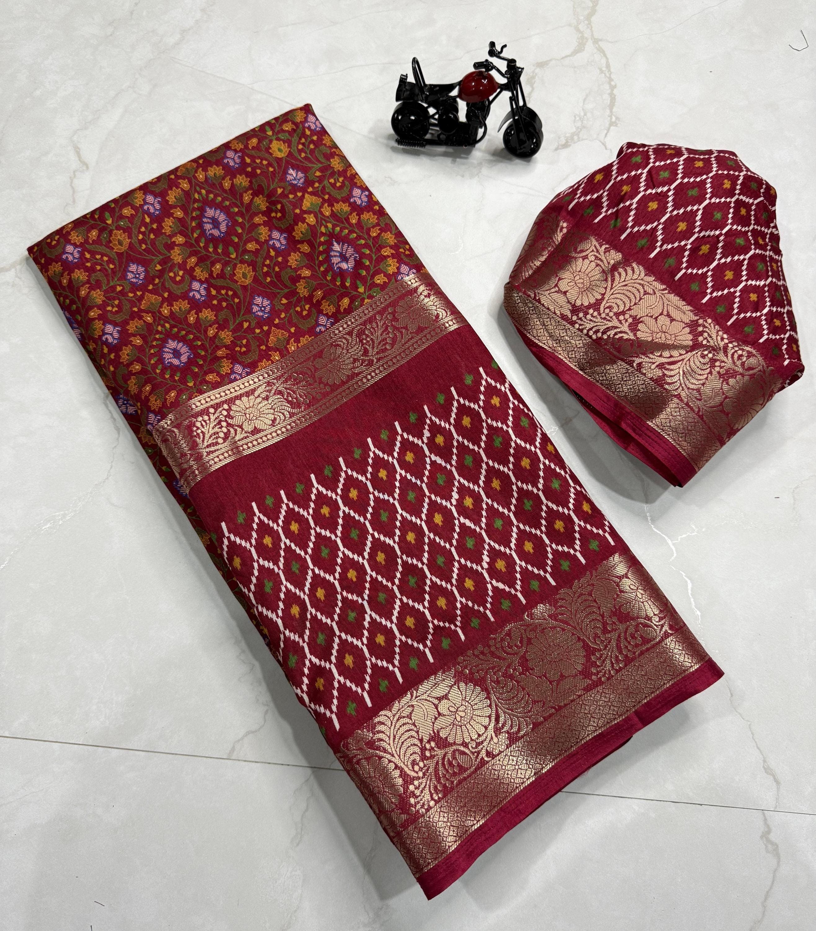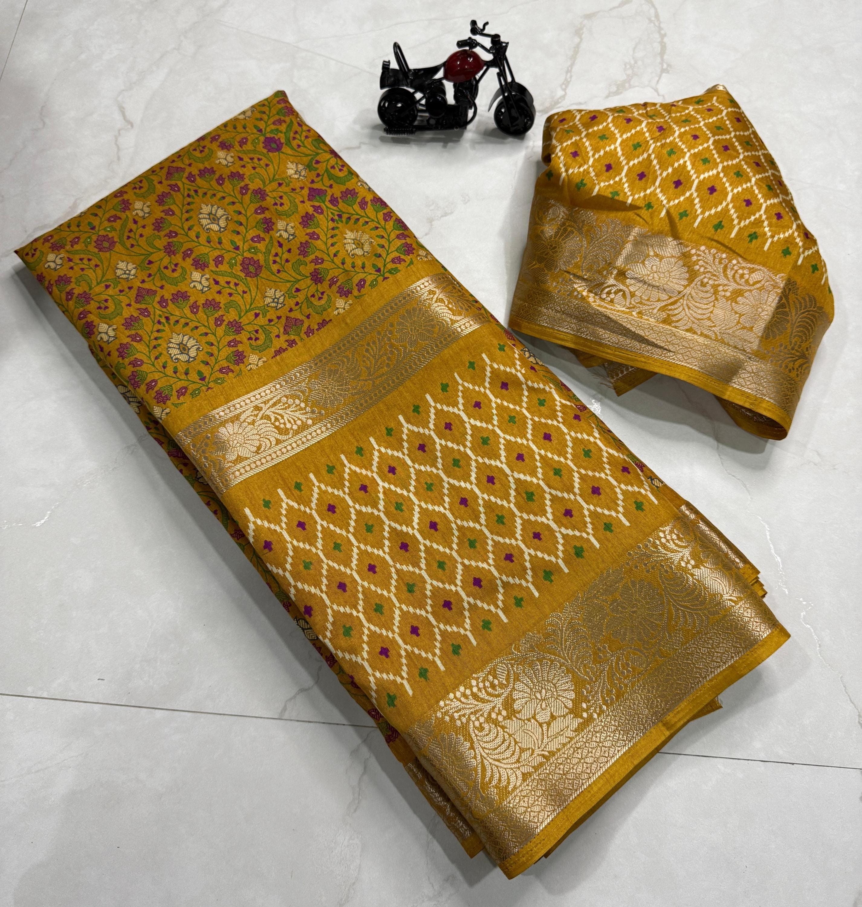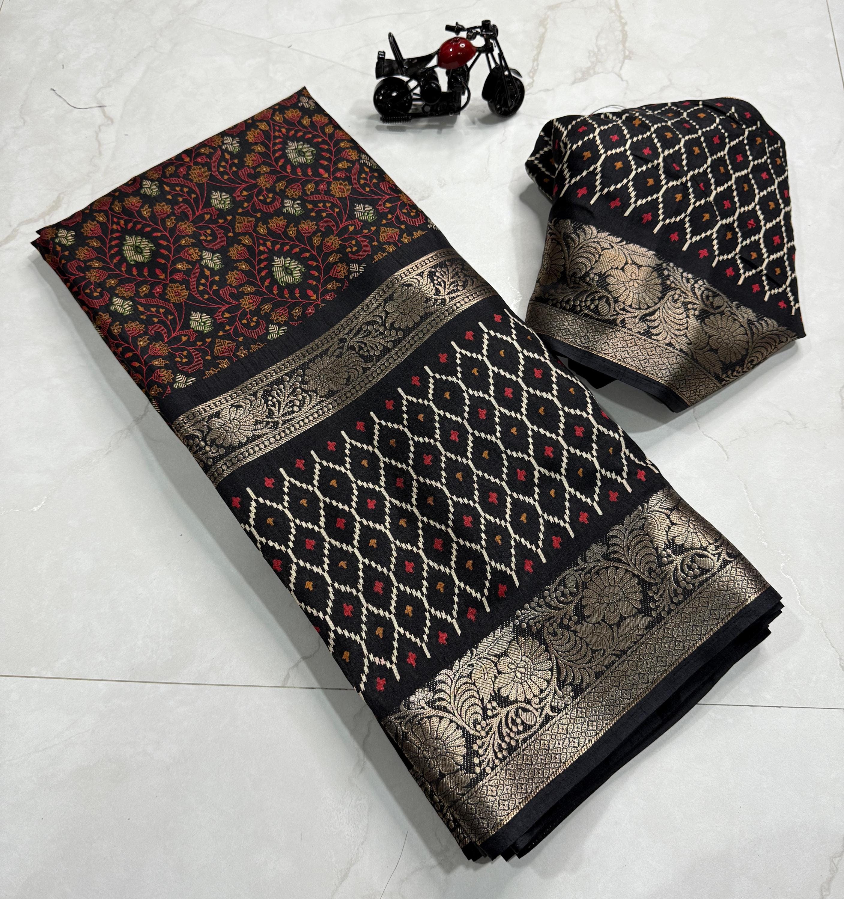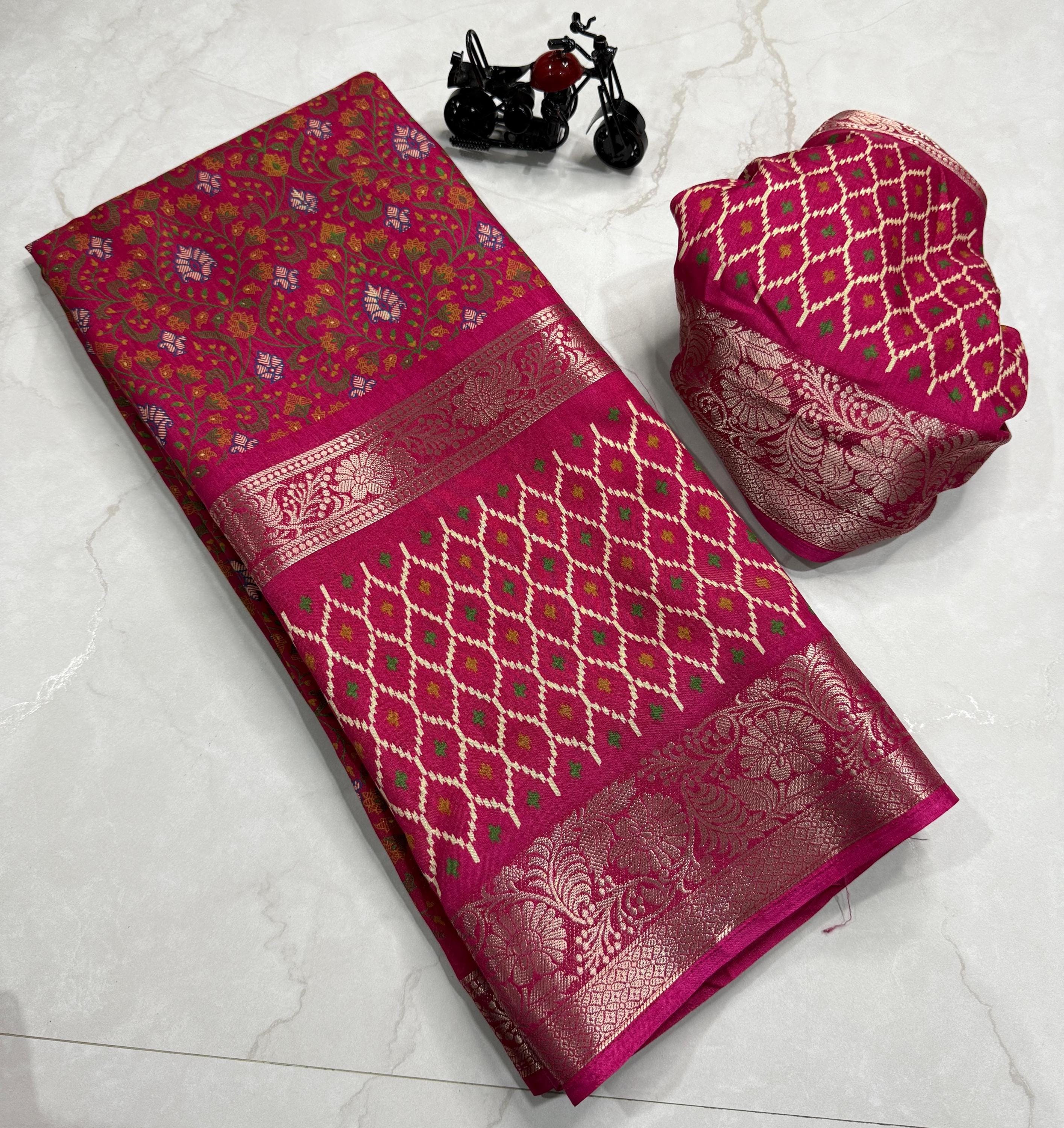 Experience the luxury of Chanderi Silk, adorned with exquisite handloom prints and a stunning organic Chanderi silk weave. This saree is a perfect fusion of heritage and contemporary elegance, making it ideal for weddings, festive occasions, and grand celebrations. A timeless masterpiece for your ethnic collection!