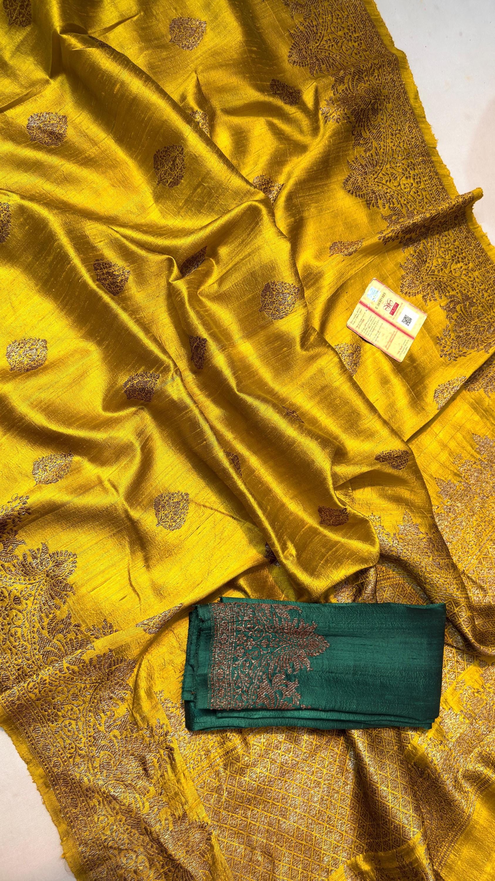 Experience the luxury of raw silk banarasi Weave Silk Saree, adorned with exquisite handloom prints and a stunning organic Meenakari silk weave. This saree is a perfect fusion of heritage and contemporary elegance, making it ideal for weddings, festive occasions, and grand celebrations. A timeless masterpiece for your ethnic collection!