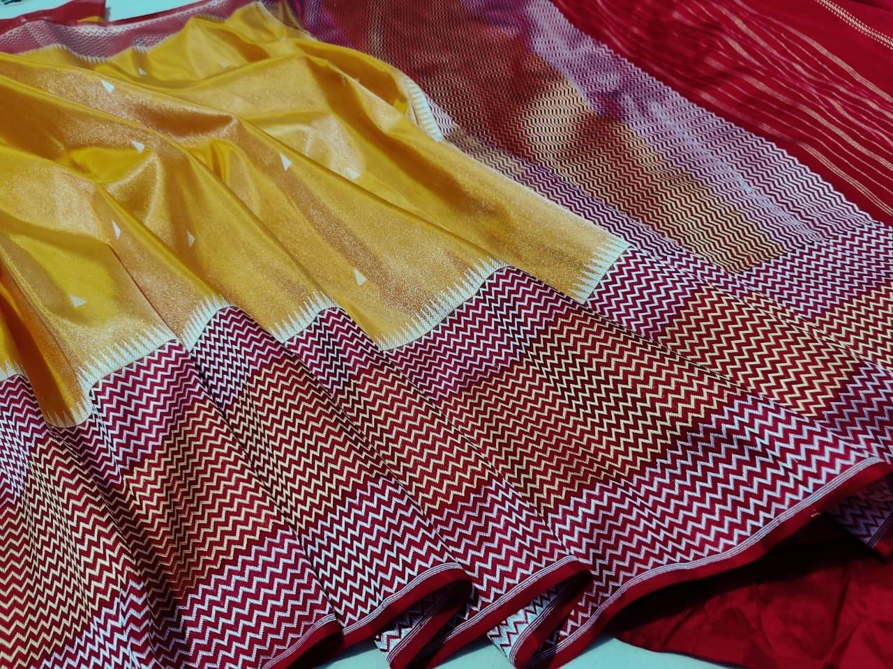 Handloom Katan Tissue Silk Saree, Zari Weaving, Banarasi Border, Wedding Saree