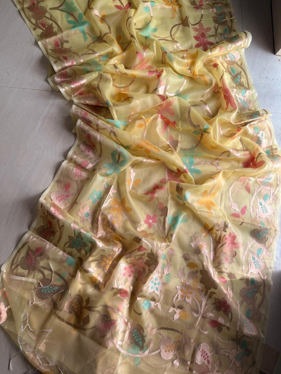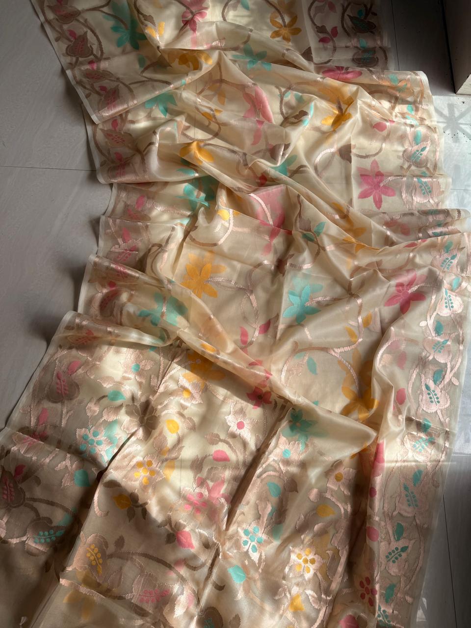 Tussar Jamdani Saree, Handloom Muslin Weave, Wedding Saree