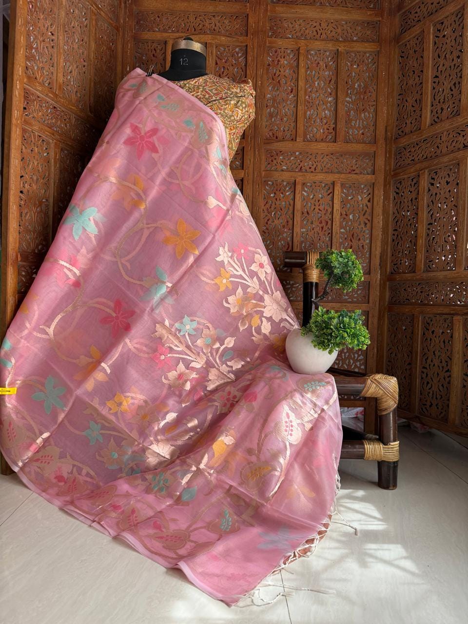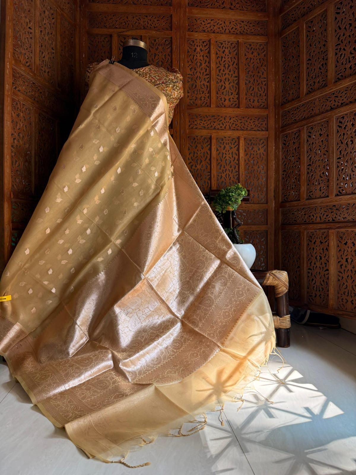 Experience the luxury of tussar jamdani Muslin Saree, adorned with exquisite handloom weave and a stunning organic jamdani weave. This saree is a perfect fusion of heritage and contemporary elegance, making it ideal for weddings, festive occasions, and grand celebrations. A timeless masterpiece for your ethnic collection!