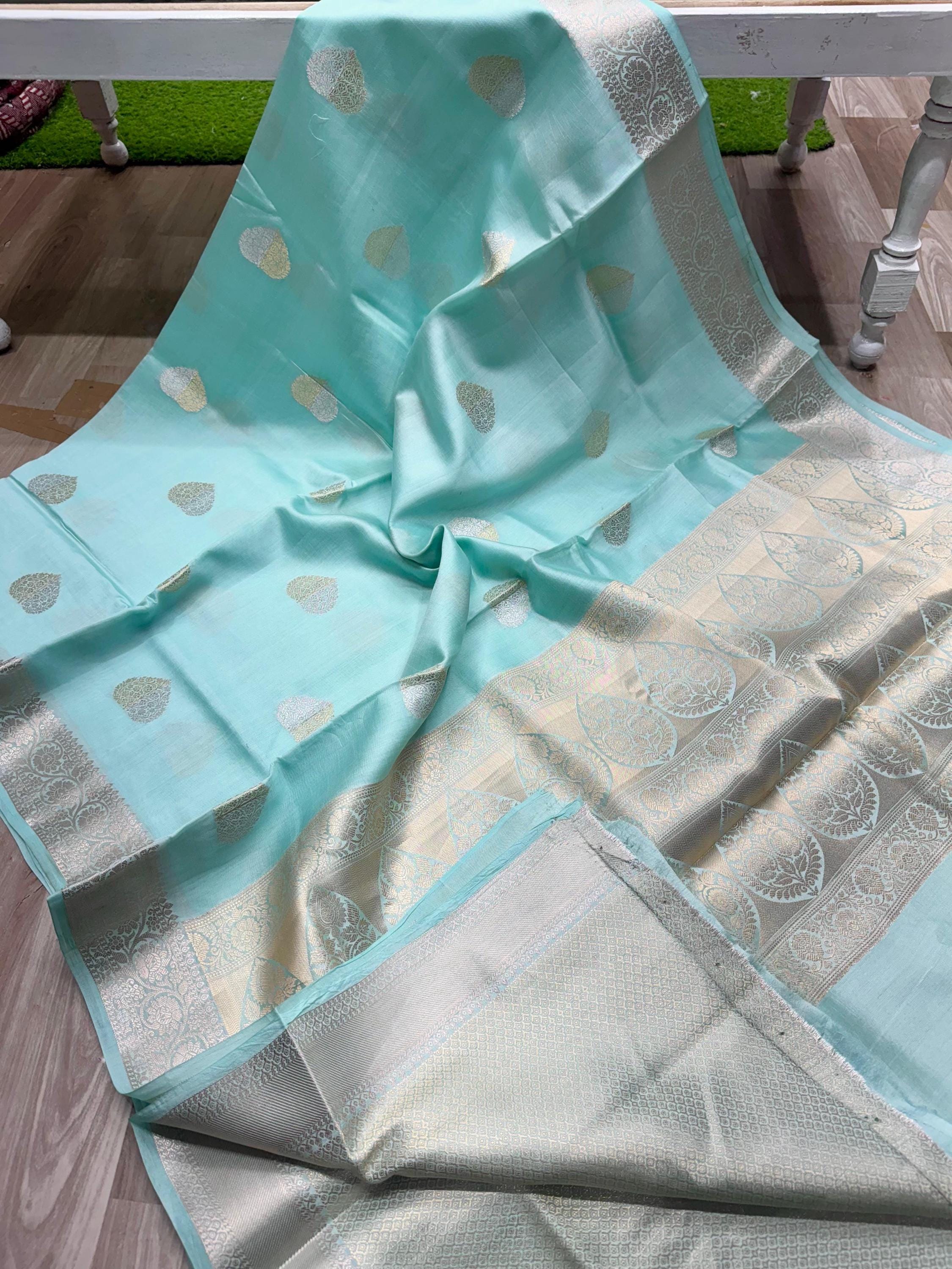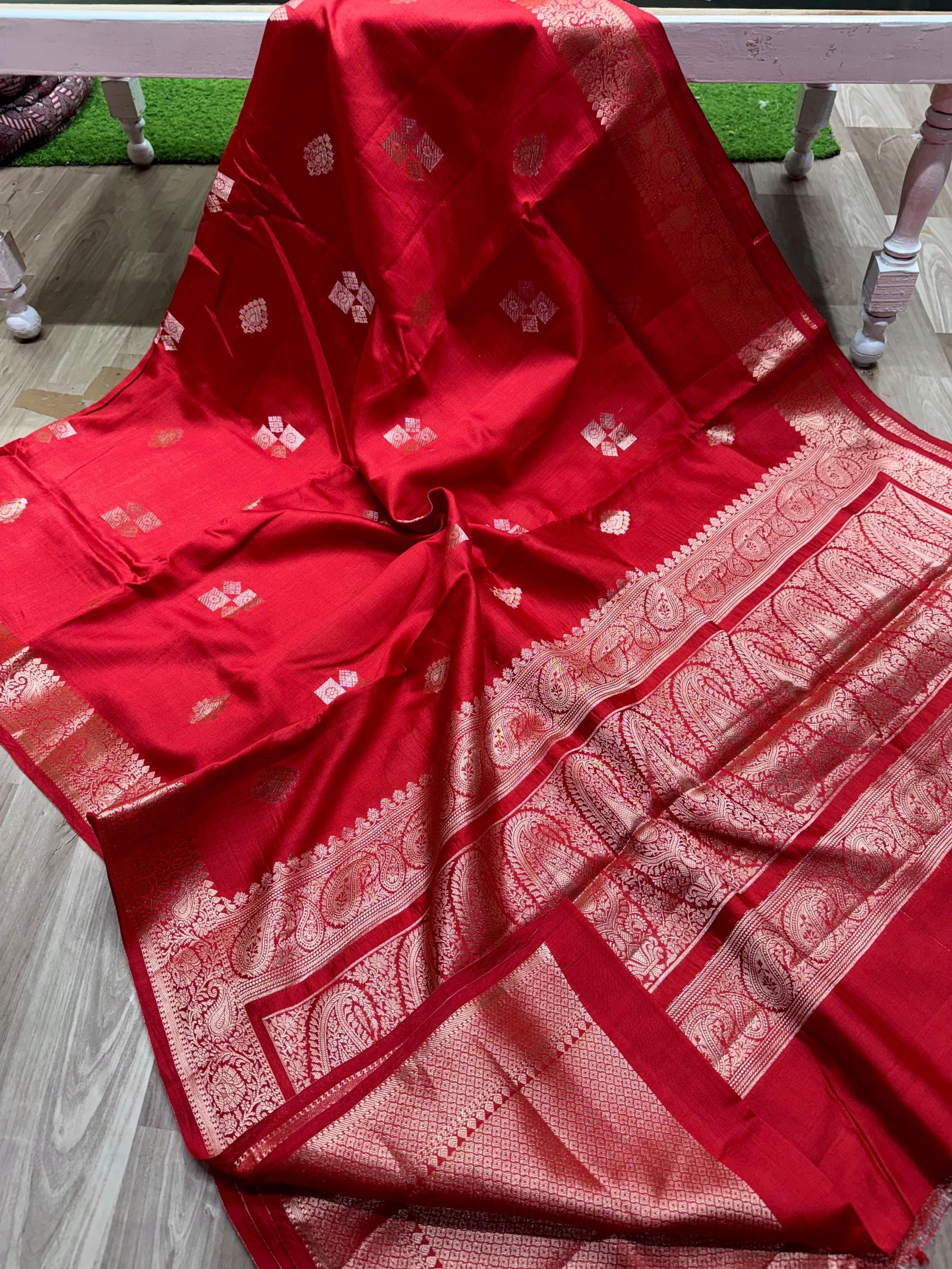 Experience the luxury of weaving buta Silk, adorned with exquisite handloom prints and a stunning organic banaras silk weave. This saree is a perfect fusion of heritage and contemporary elegance, making it ideal for weddings, festive occasions, and grand celebrations. A timeless masterpiece for your ethnic collection!