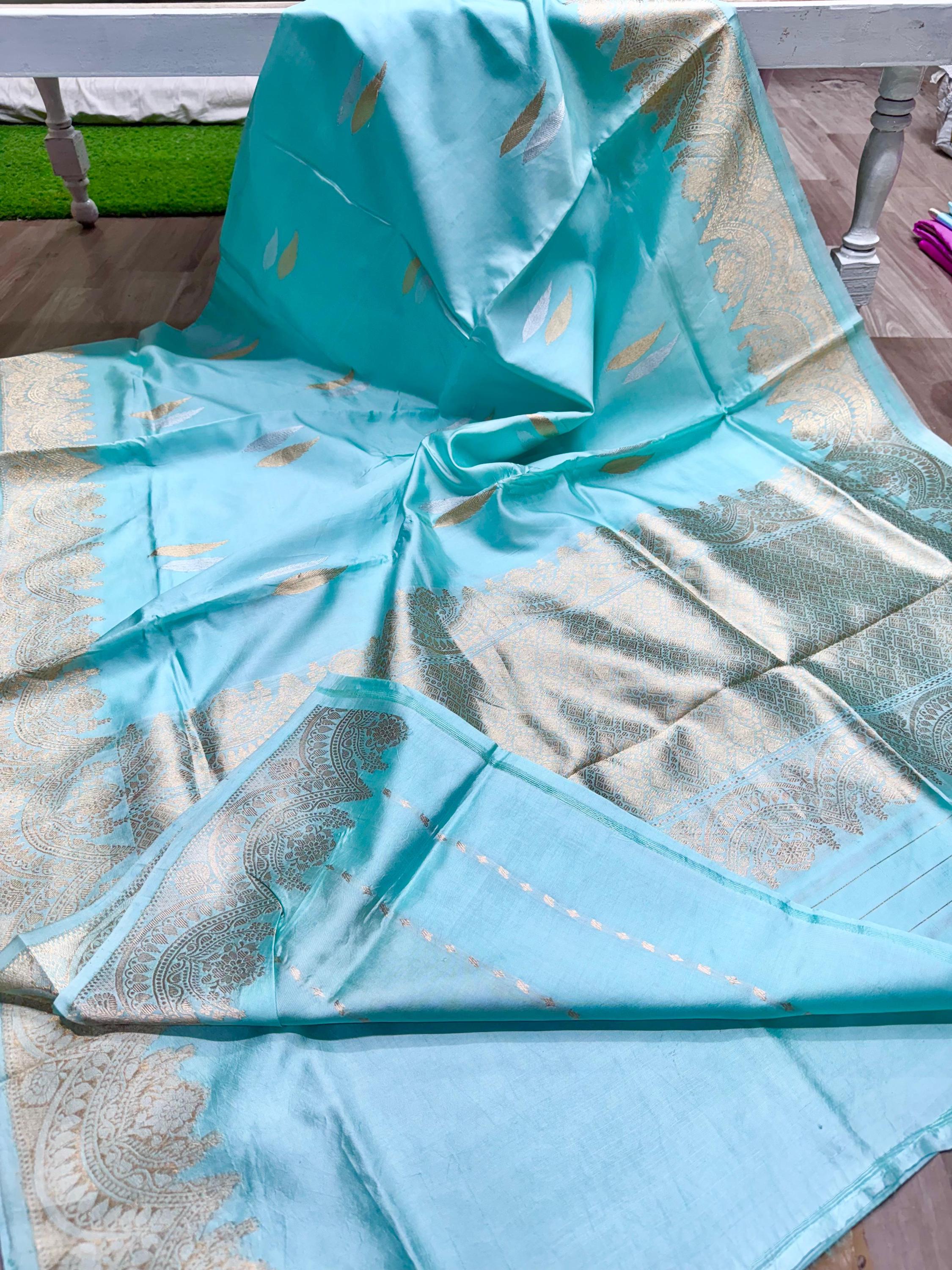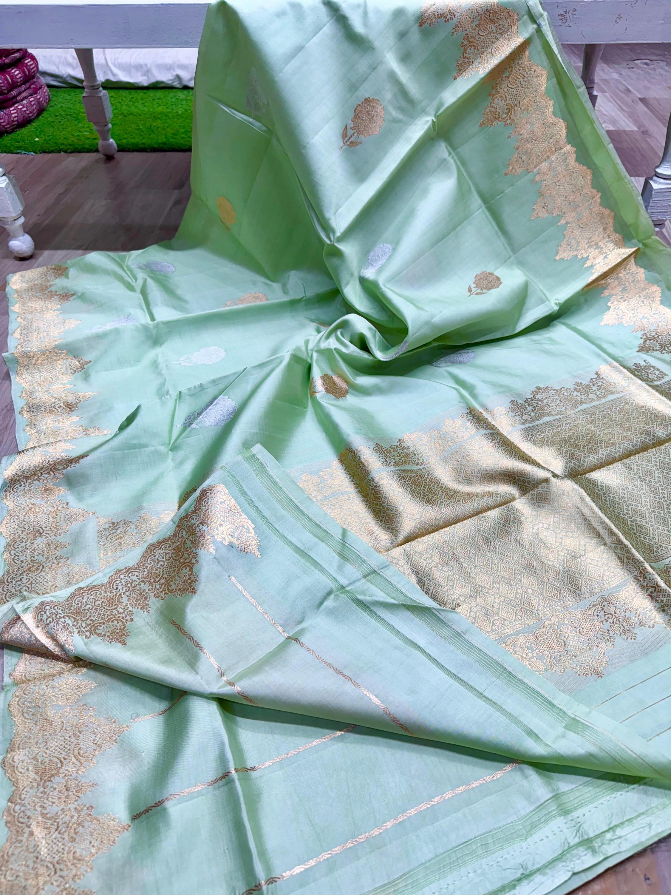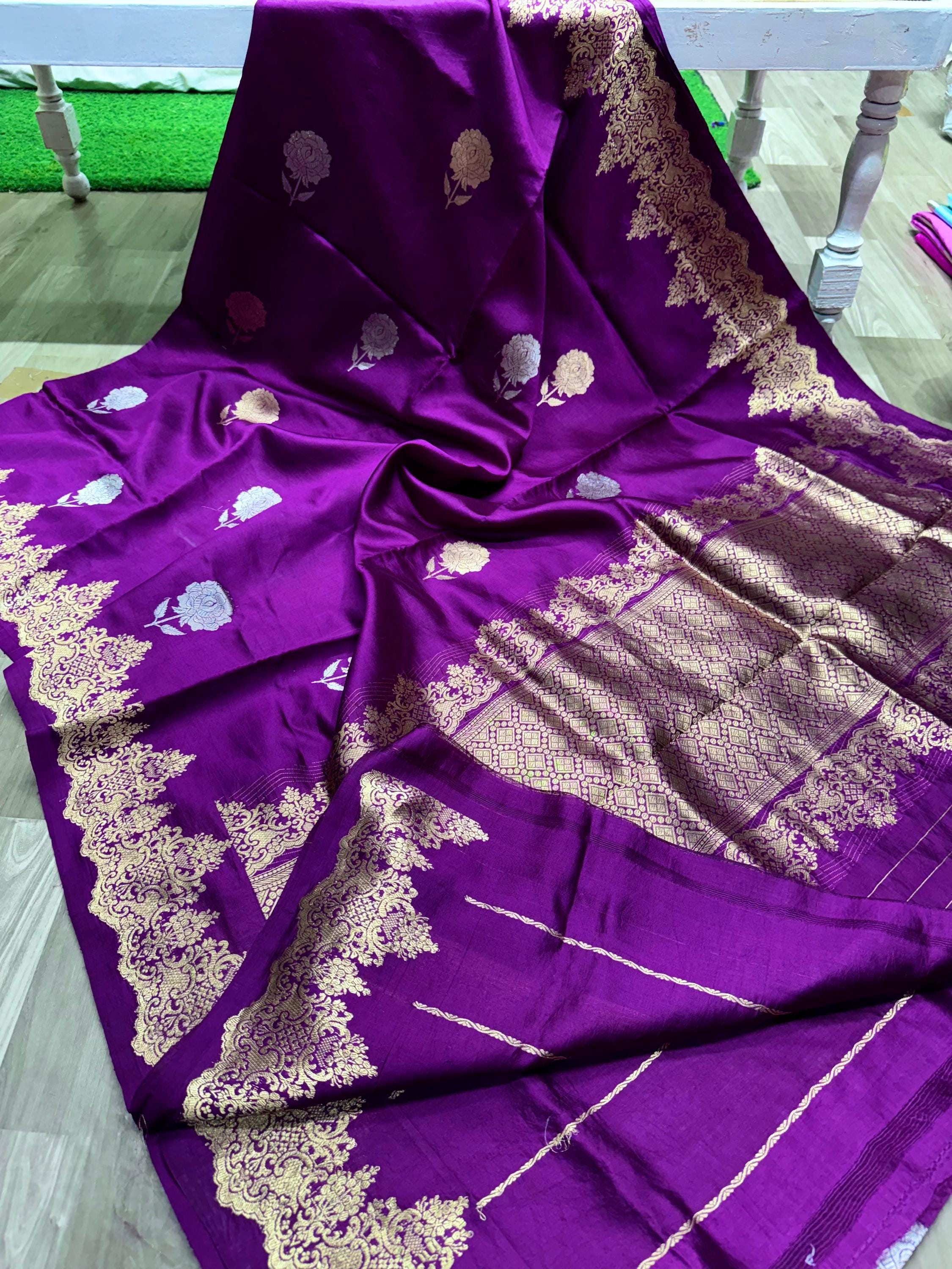 Buta Zari Silk Saree, Handloom Weaving Banarasi Border, Wedding Saree