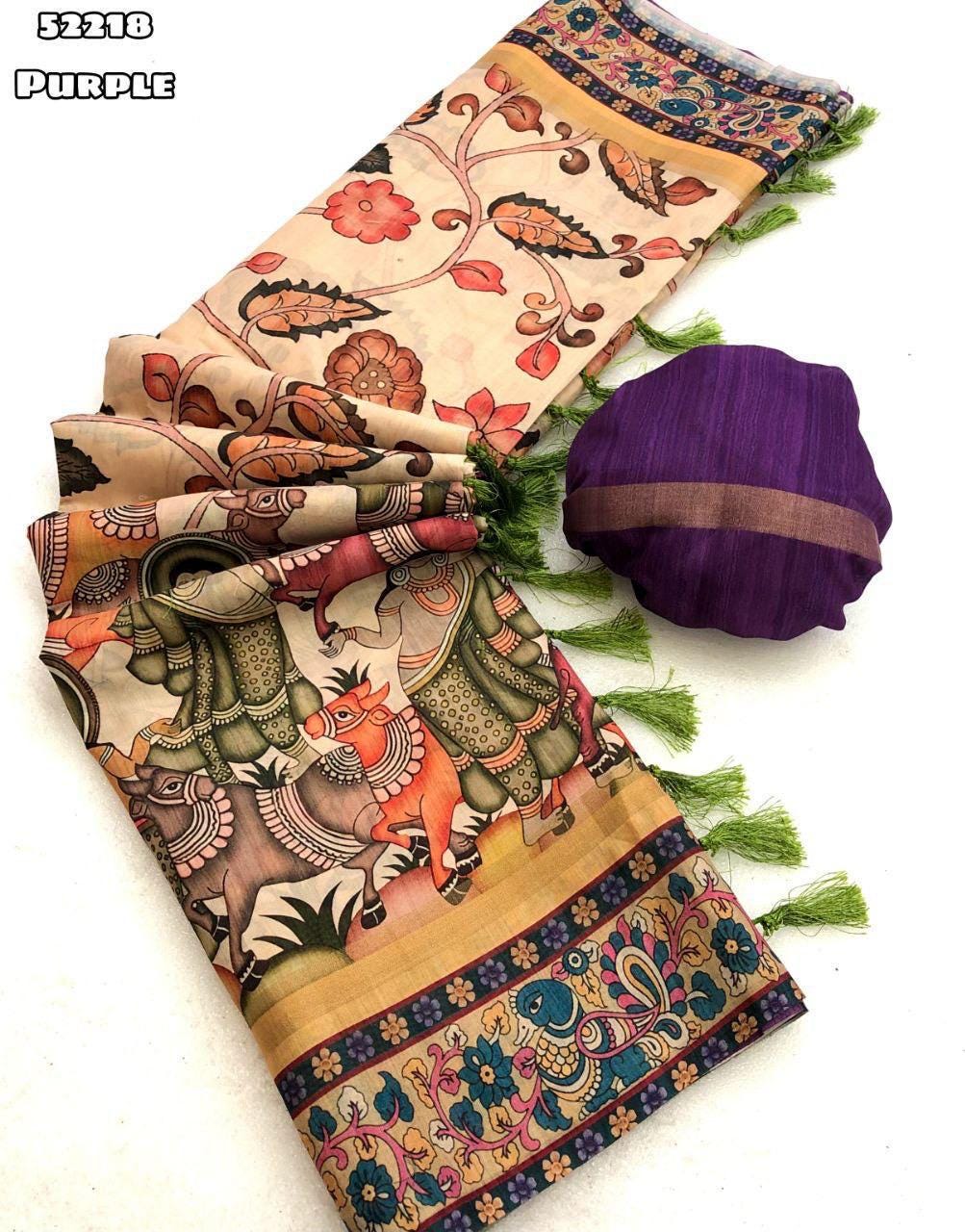 Muga Tussar Silk Saree, Kalamkari Flower Handloom, Wedding Saree