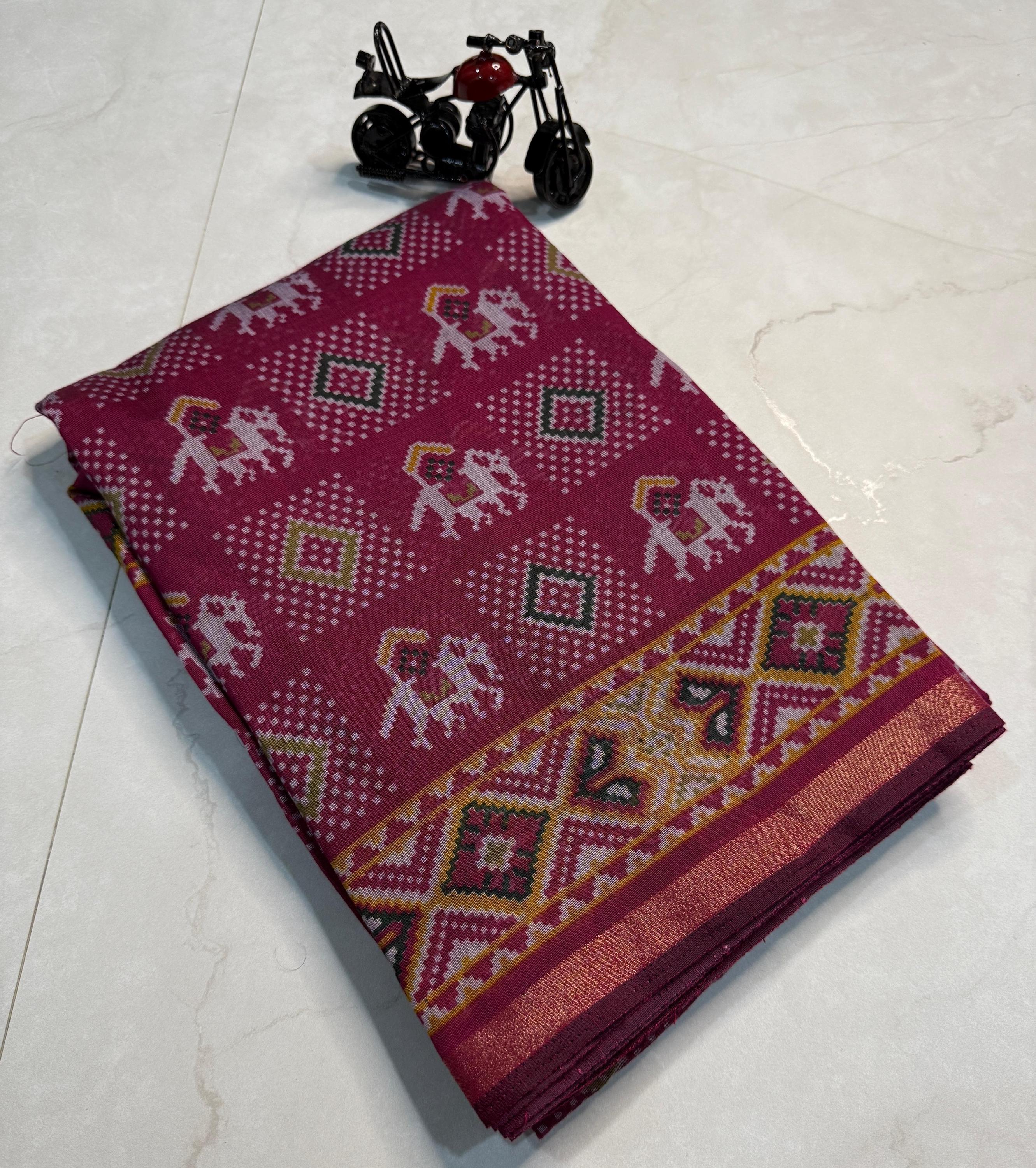 Experience the luxury of Cotton line patola, adorned with exquisite handloom prints and a stunning organic patola weave. This saree is a perfect fusion of heritage and contemporary elegance, making it ideal for weddings, festive occasions, and grand celebrations. A timeless masterpiece for your ethnic collection!