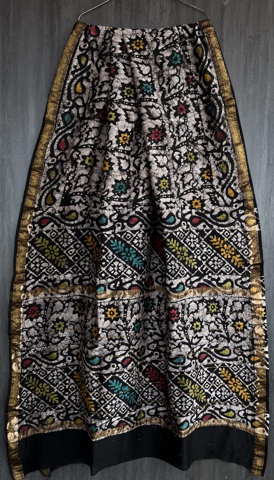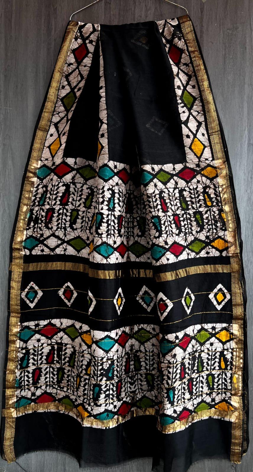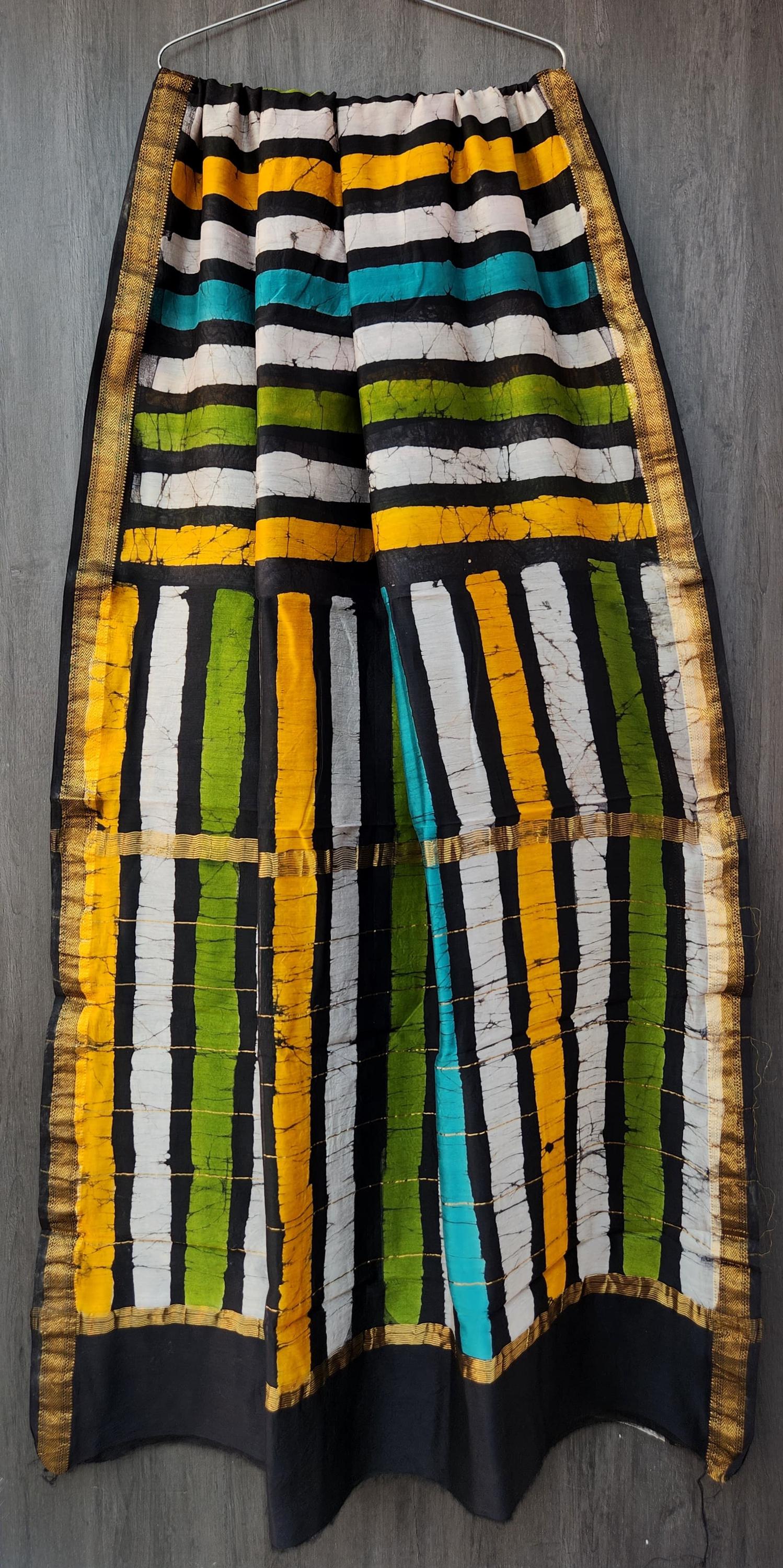 Handloom Maheshwari Silk Saree, Abstract Kalamkari Print, Wedding Saree