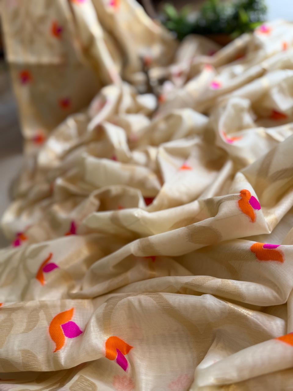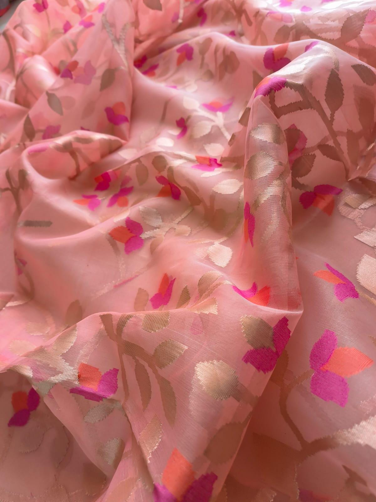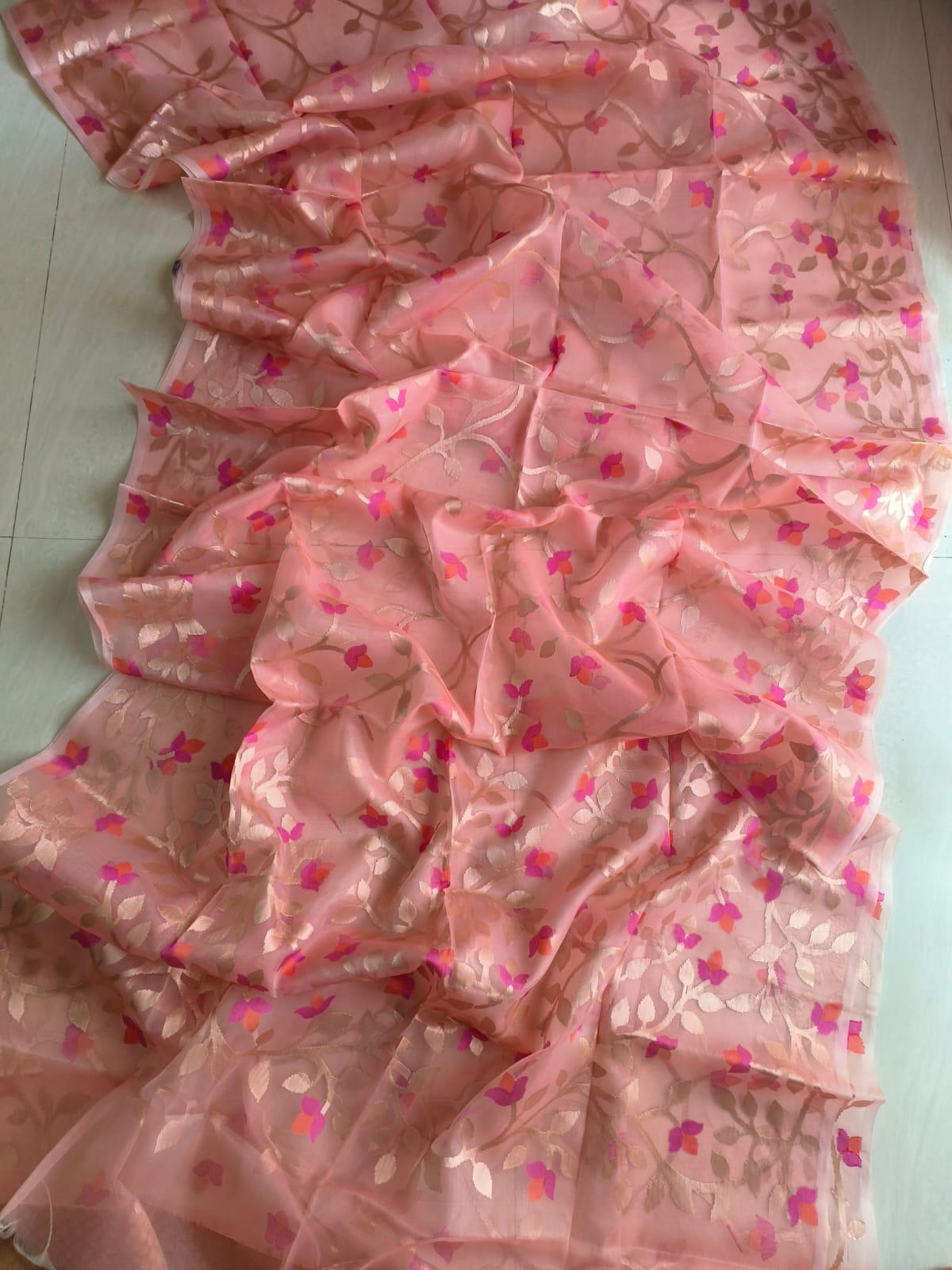 Experience the luxury of tussar jamdani Muslin Saree, adorned with exquisite handloom weave and a stunning organic jamdani weave. This saree is a perfect fusion of heritage and contemporary elegance, making it ideal for weddings, festive occasions, and grand celebrations. A timeless masterpiece for your ethnic collection!