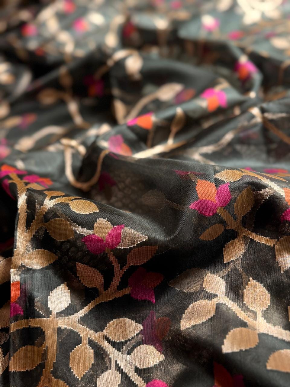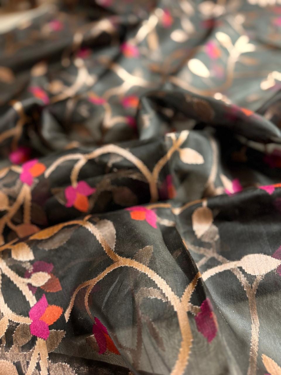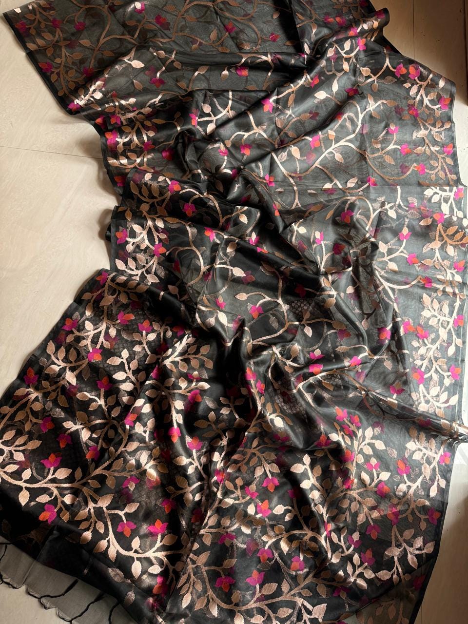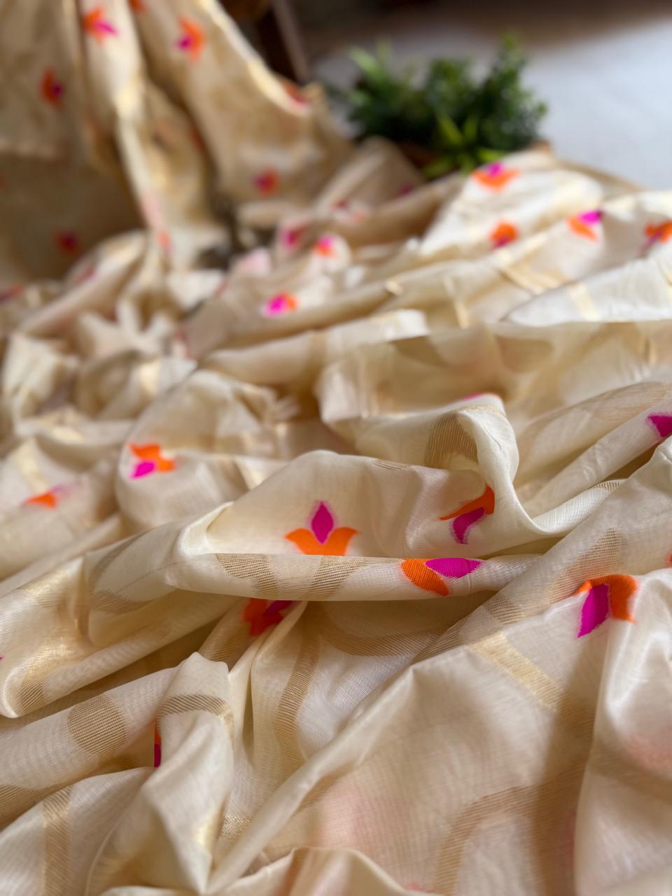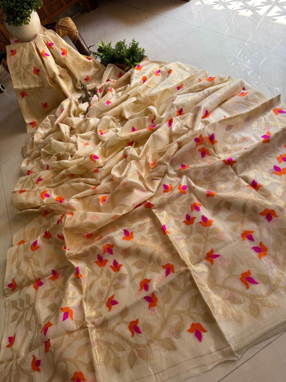 Tussar Jamdani Saree, Handloom Weave, Floral Motif, Wedding Saree