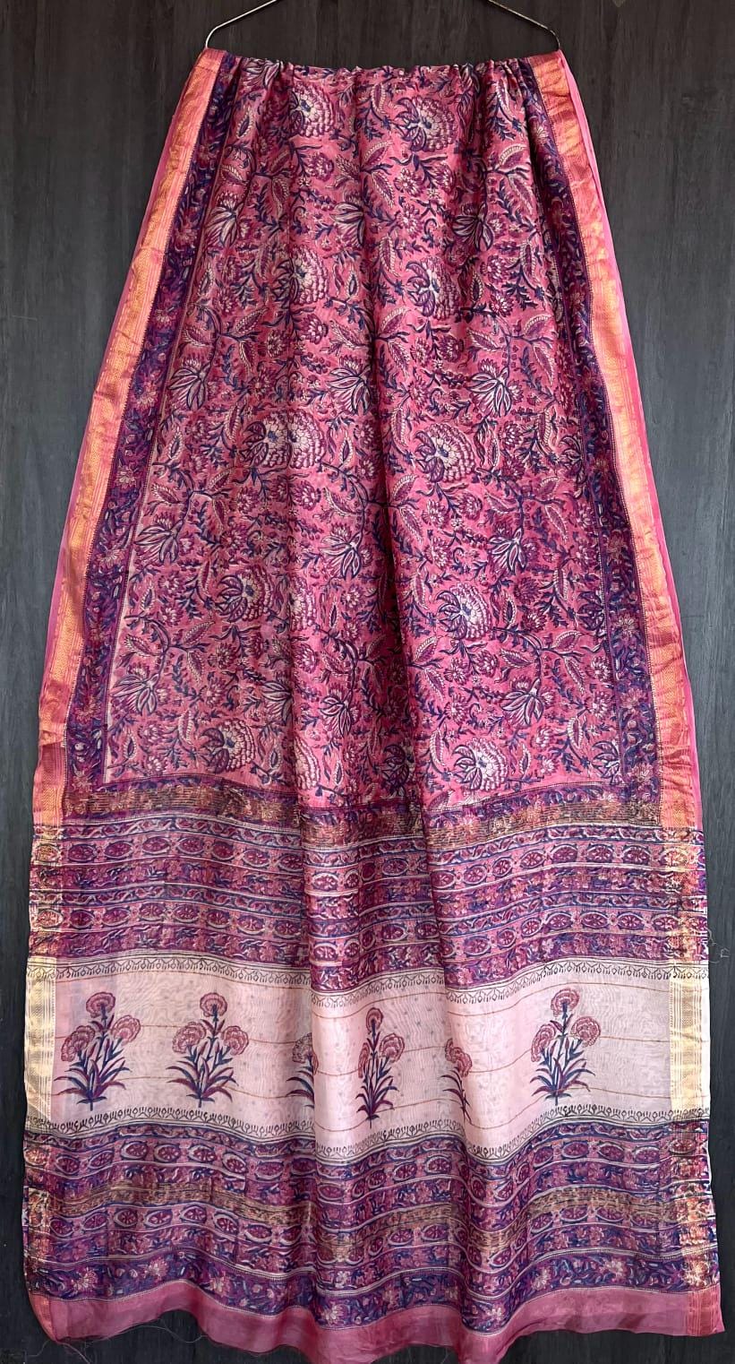 Handloom Maheshwari Silk Saree, Kalamkari Floral Print, Wedding Saree