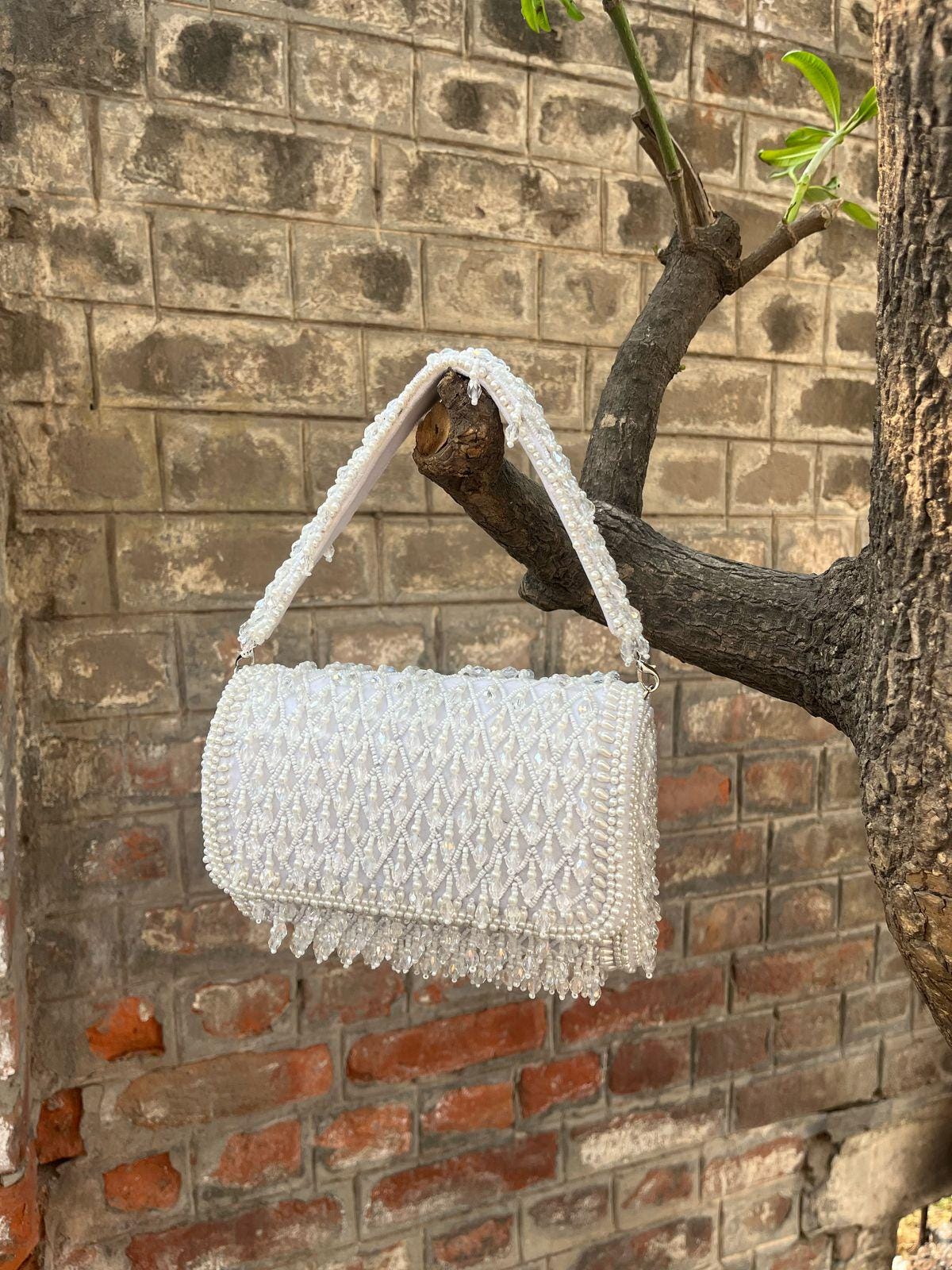 Handmade Beaded Potli Bag, Bridal Clutch with Pearl Handle