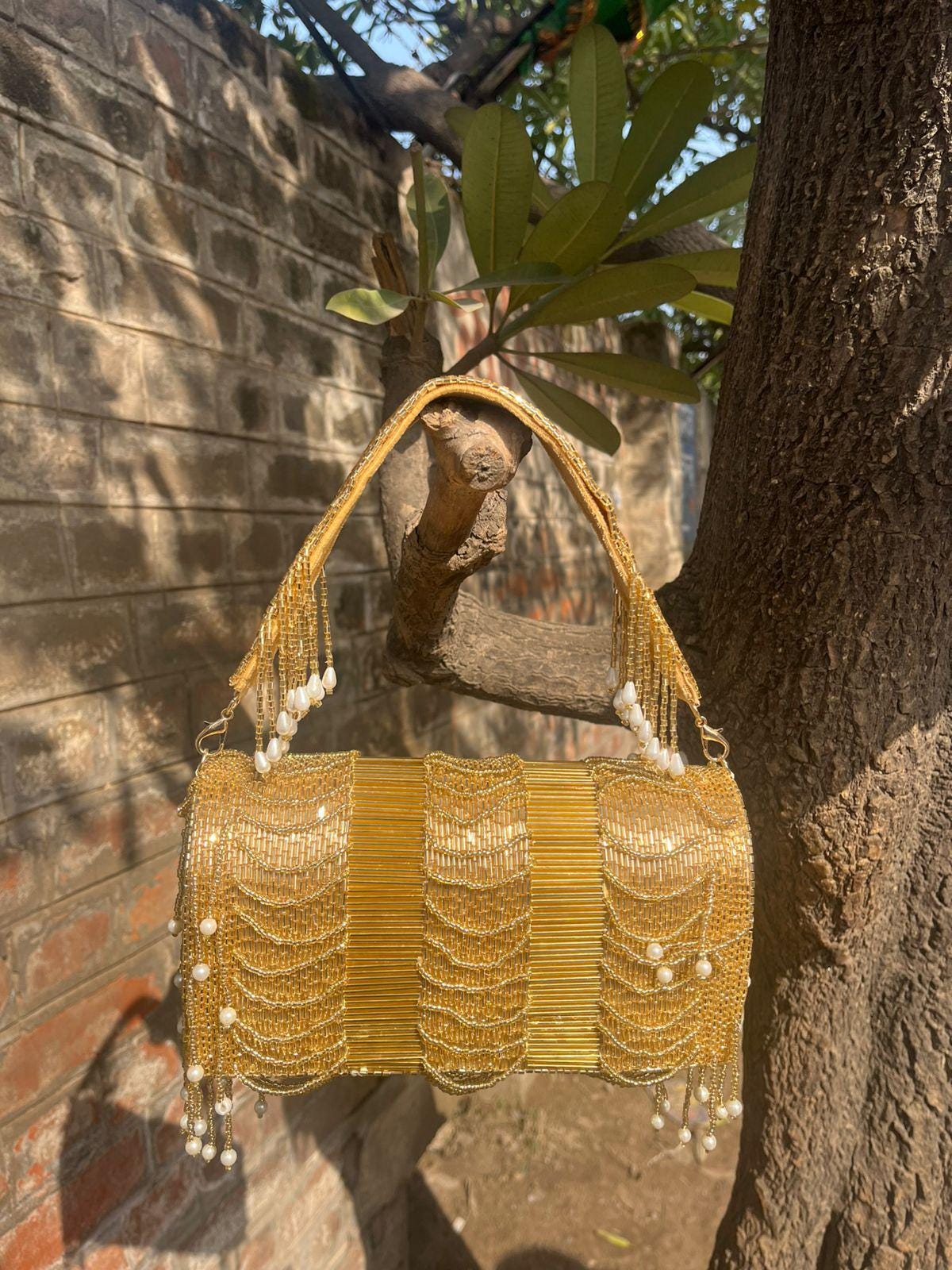 This beautiful statement piece is a must-have. All our Potlis are handcrafted and these very unique pieces! Comes with a Detachable Pearl Handle All of our premium products include luxury gift boxes.