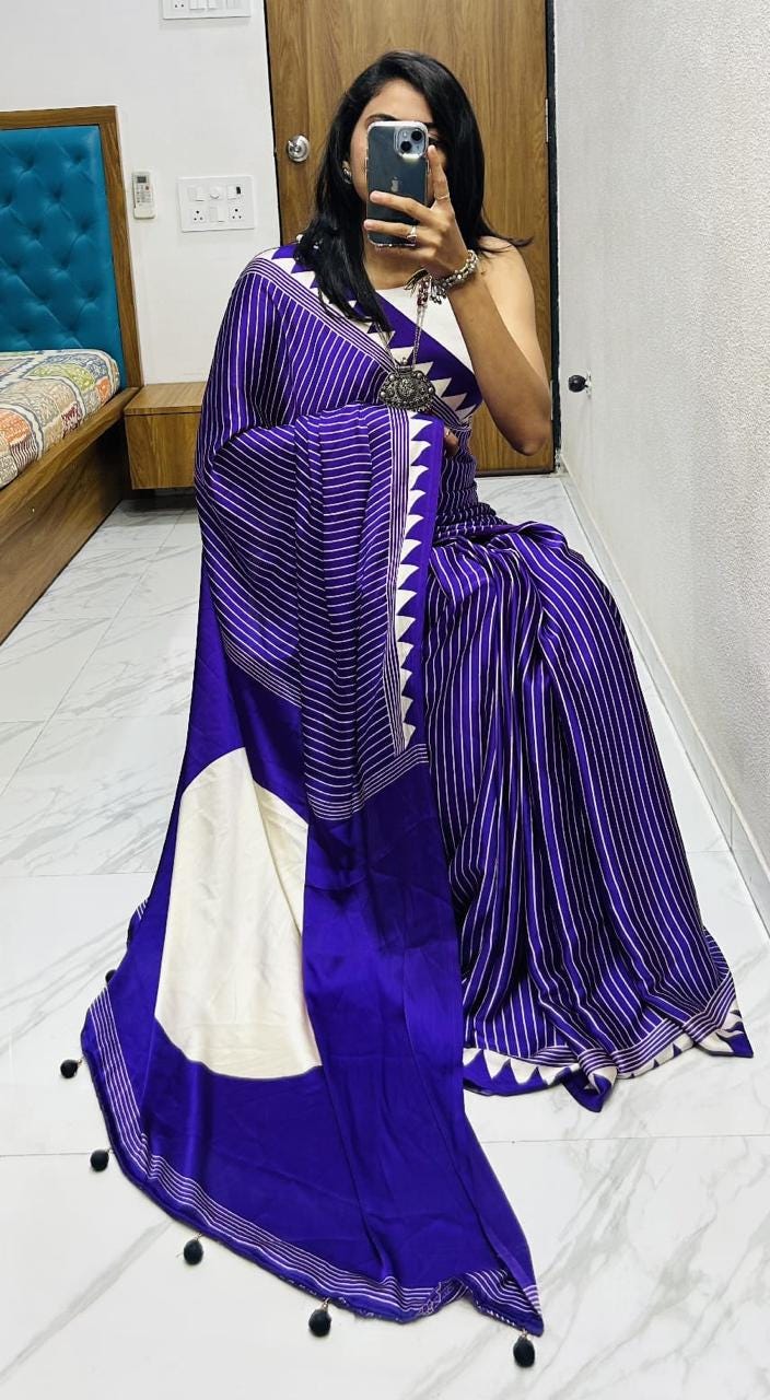 Experience the luxury of heavy modal Silk, adorned with exquisite retro prints and a stunning modal fabric. This saree is a perfect fusion of heritage and contemporary elegance, making it ideal for weddings, festive occasions, and grand celebrations. A timeless masterpiece for your ethnic collection!
