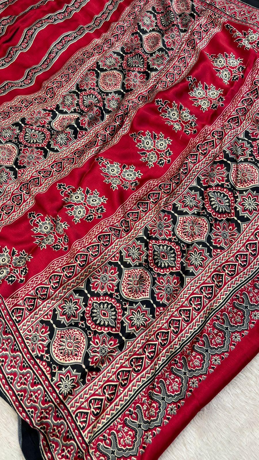 Experience the luxury of heavy modal Silk, adorned with exquisite retro prints and a stunning modal fabric. This saree is a perfect fusion of heritage and contemporary elegance, making it ideal for weddings, festive occasions, and grand celebrations. A timeless masterpiece for your ethnic collection!