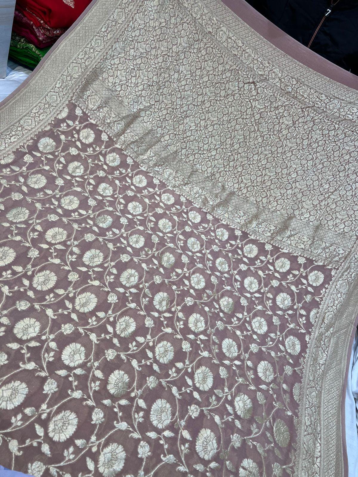 Handloom Banarasi Khaddi Georgette Saree, Silk Mark
