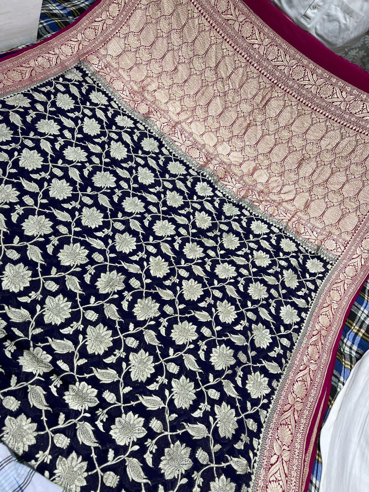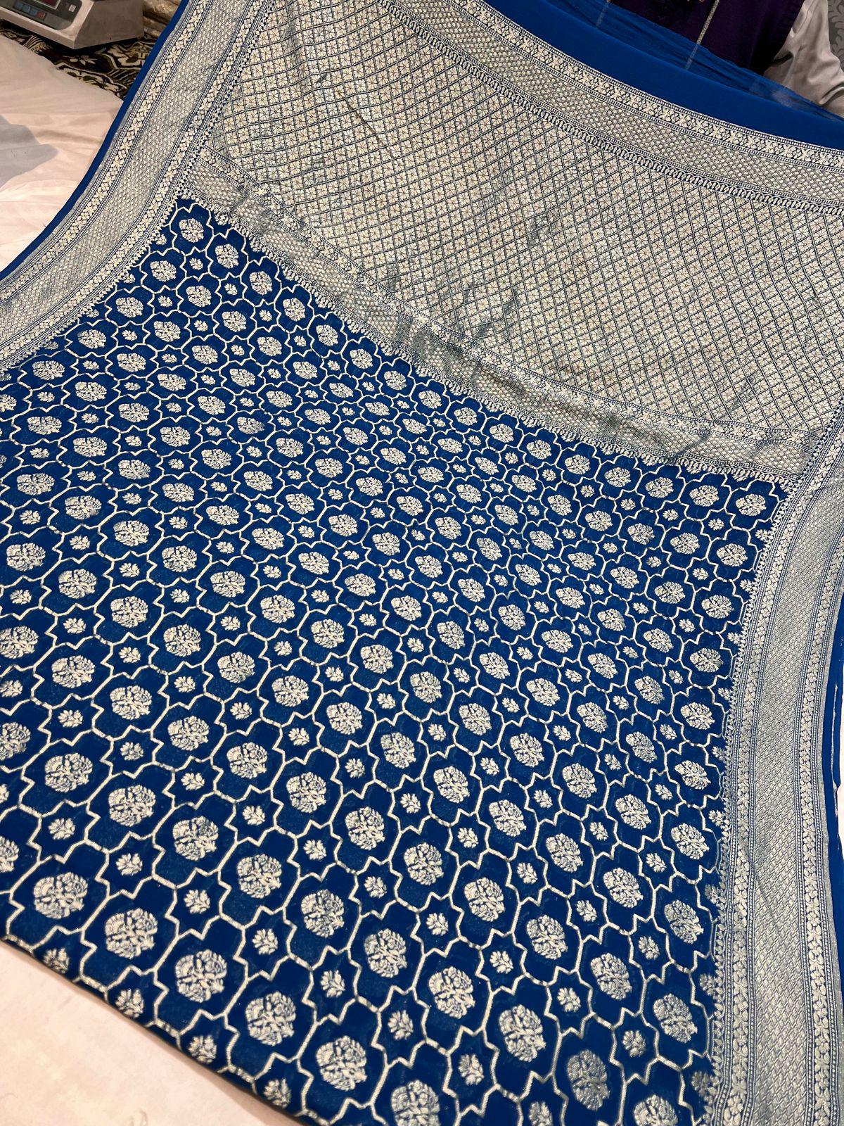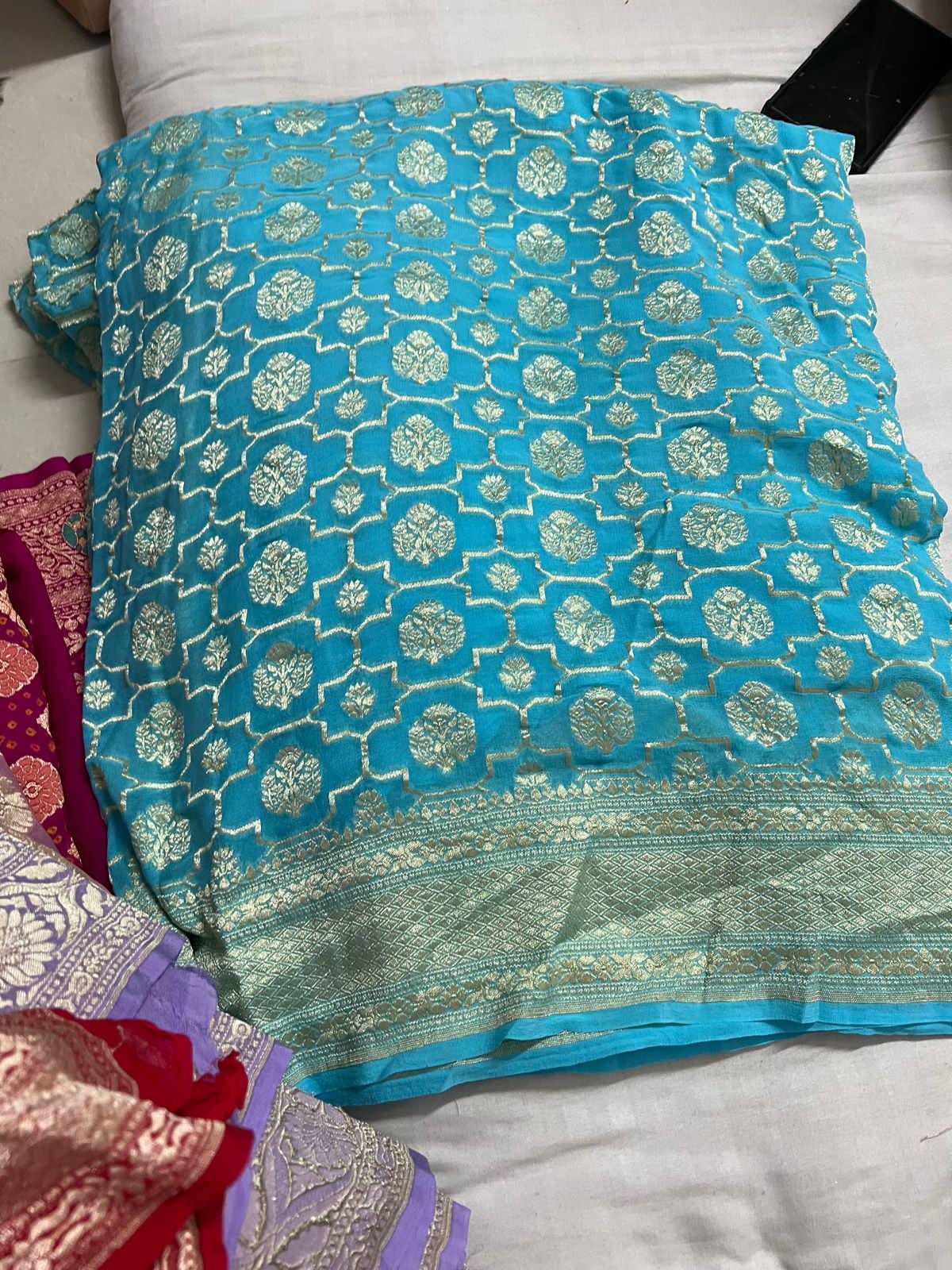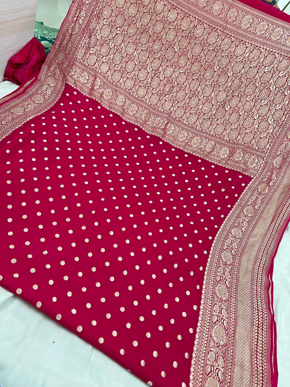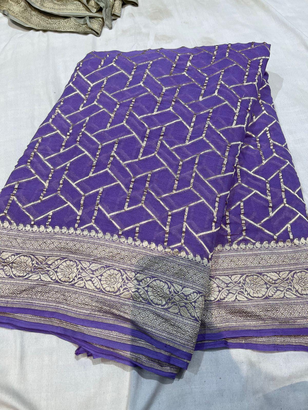 Handloom Banarasi Khaddi Georgette Saree, Pure Soft Chiffon, Silk Mark