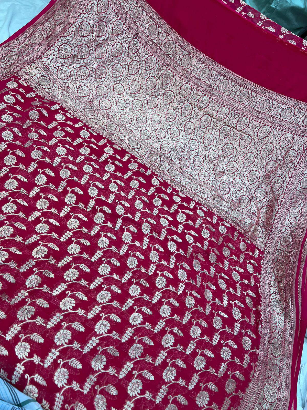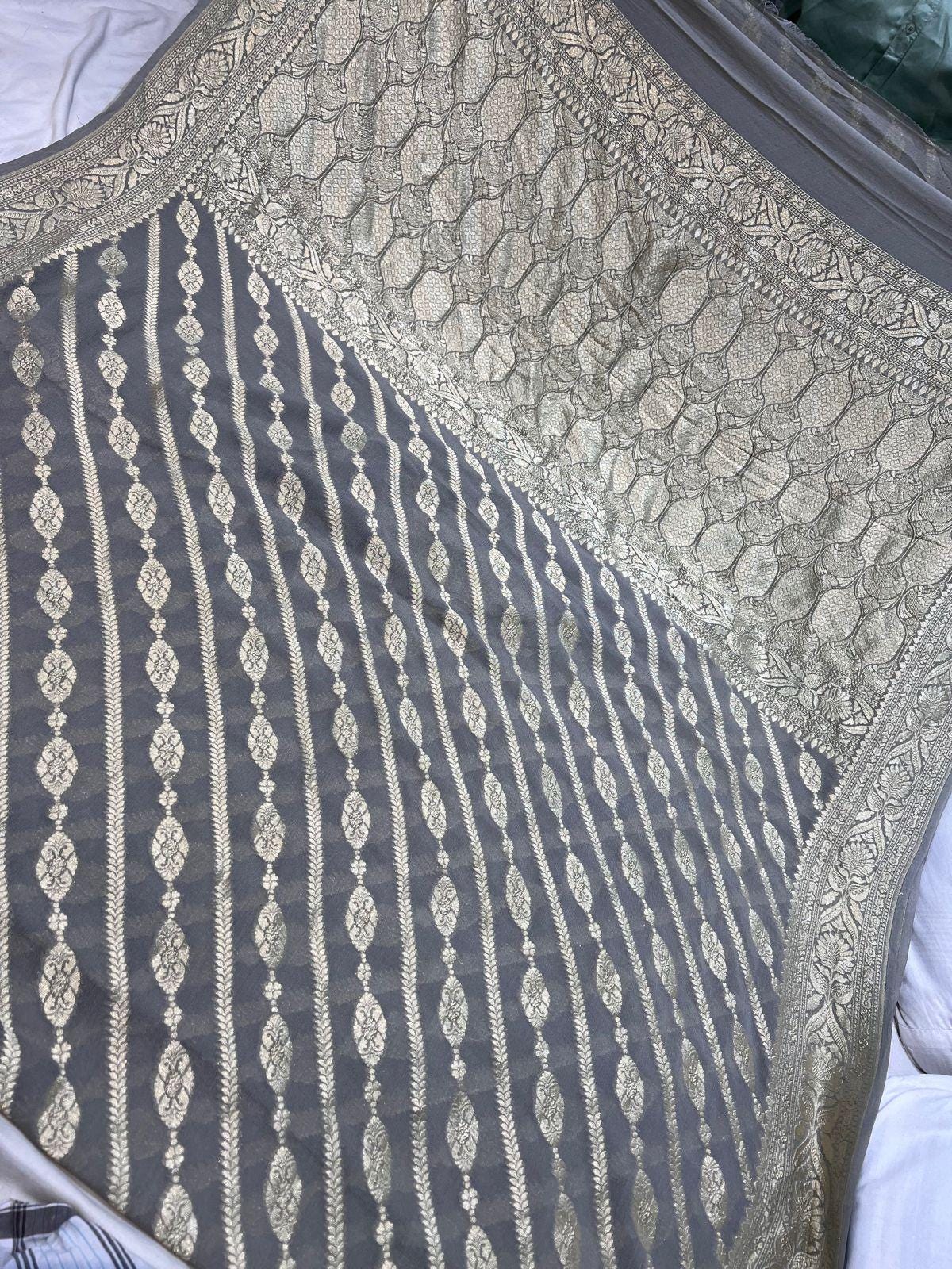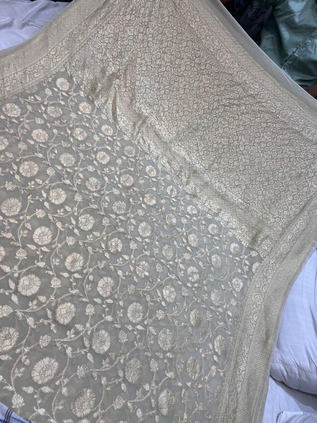 Handloom Khaddi Georgette Saree, Banarasi Silk Border