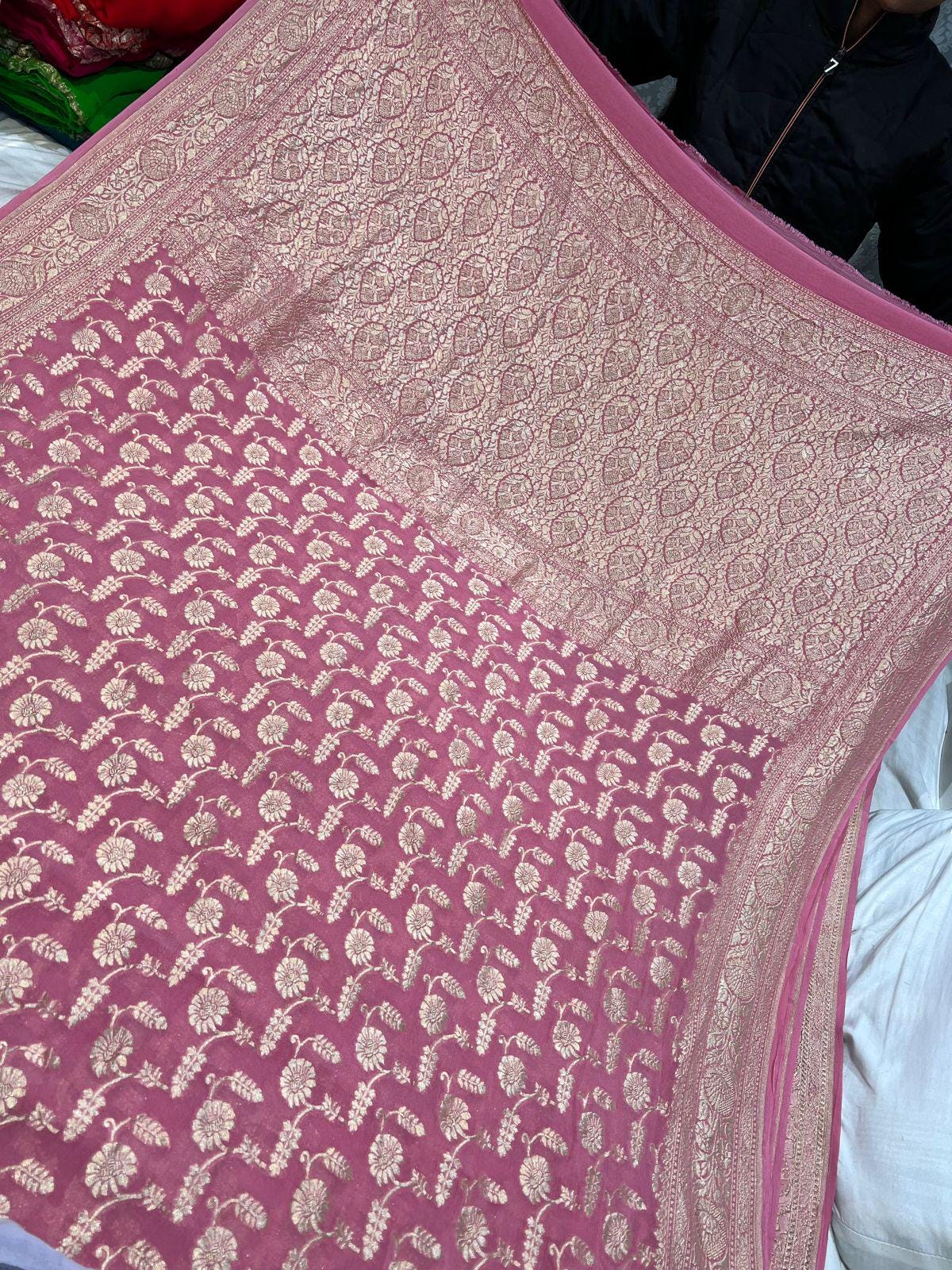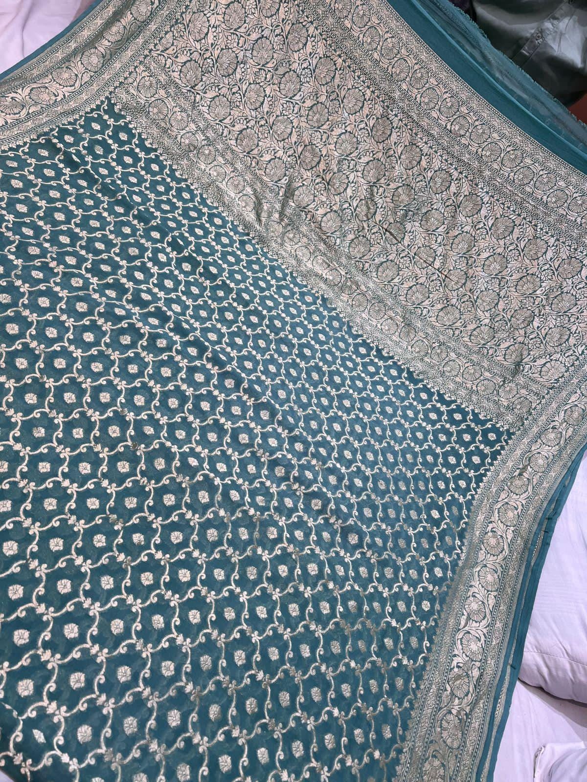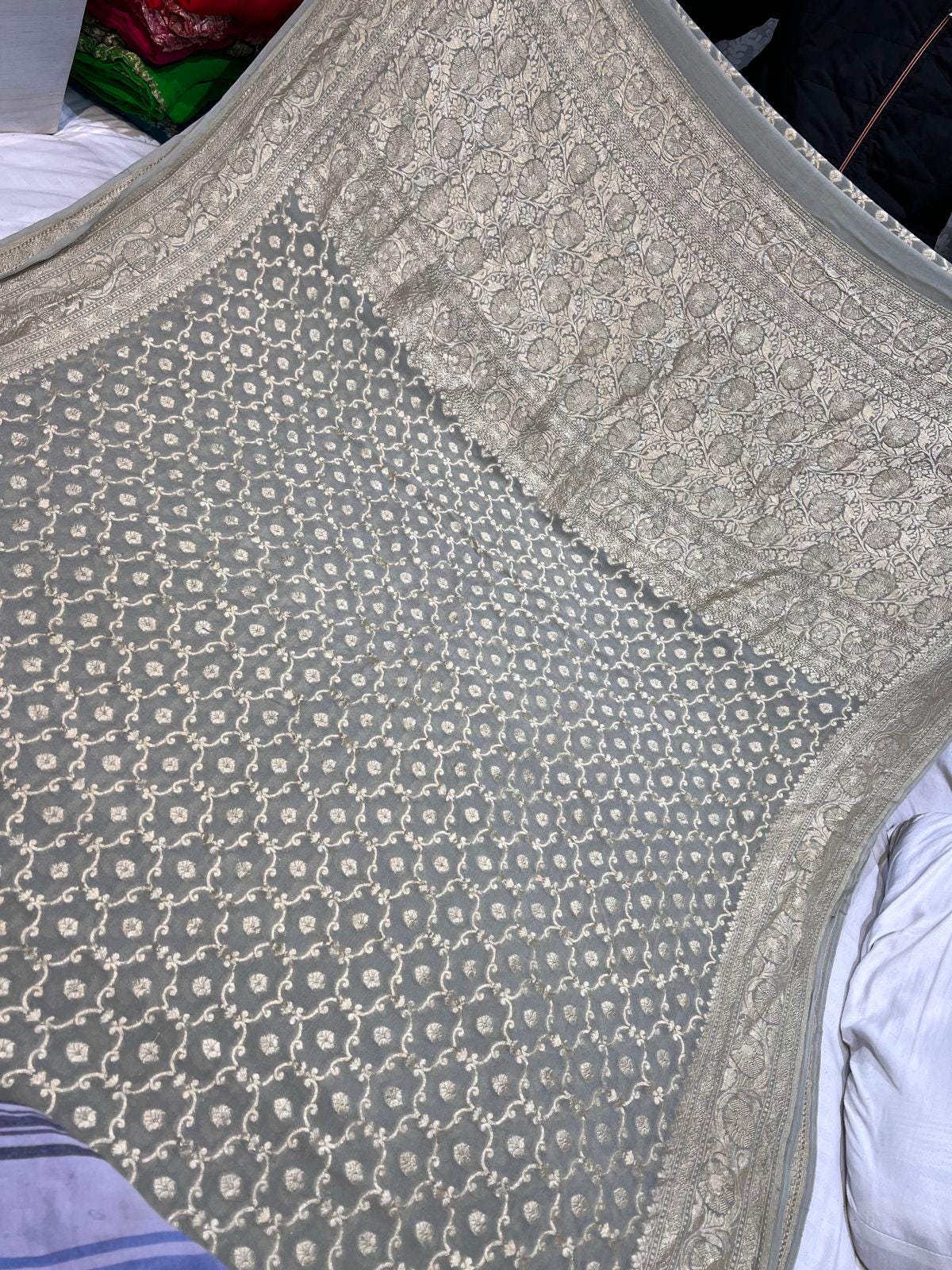 Handloom Khaddi Georgette Saree, Banarasi Silk Border