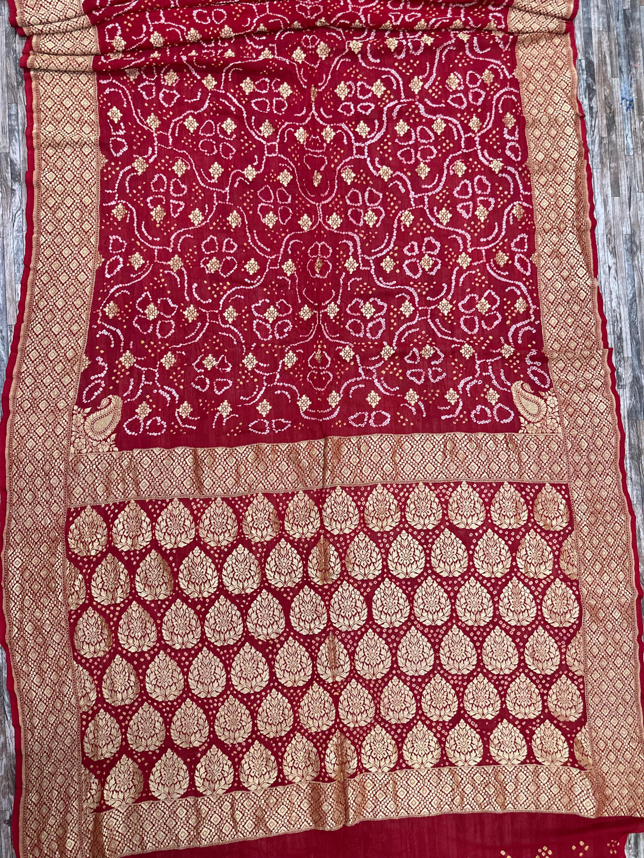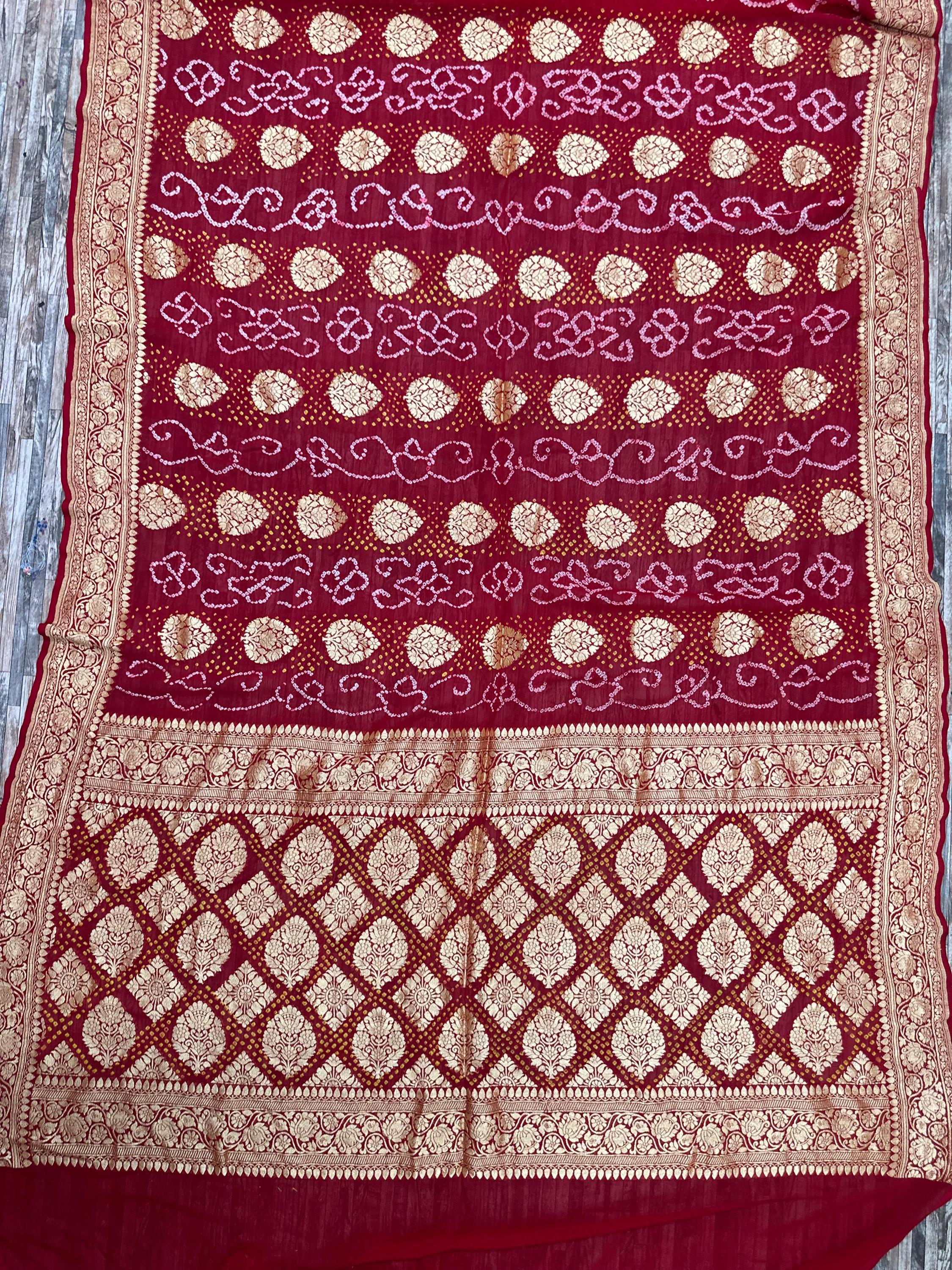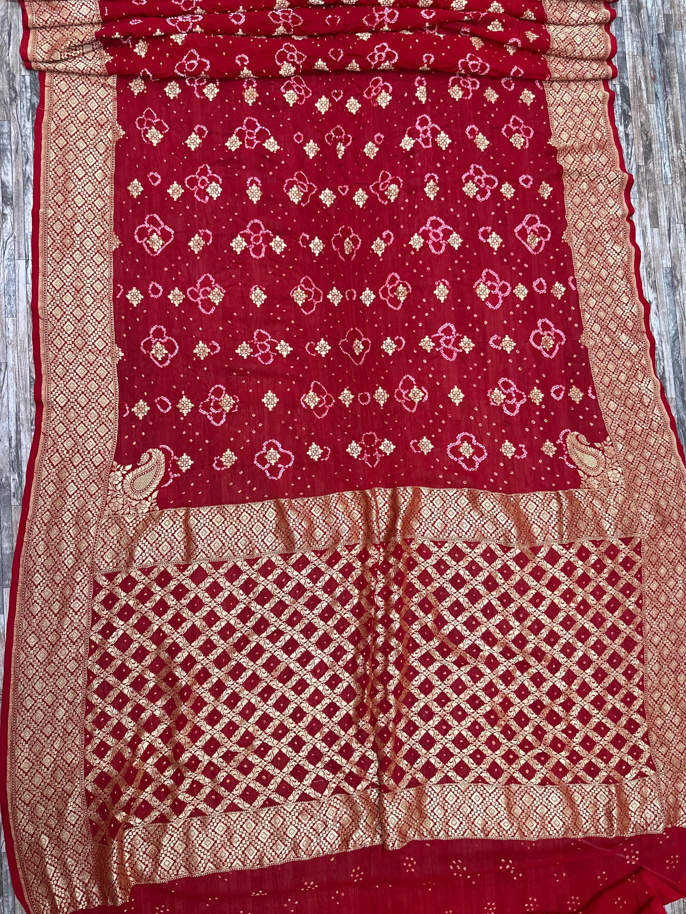 Handloom Banarasi Khaddi Bandhej Saree, Soft Georgette Chiffon