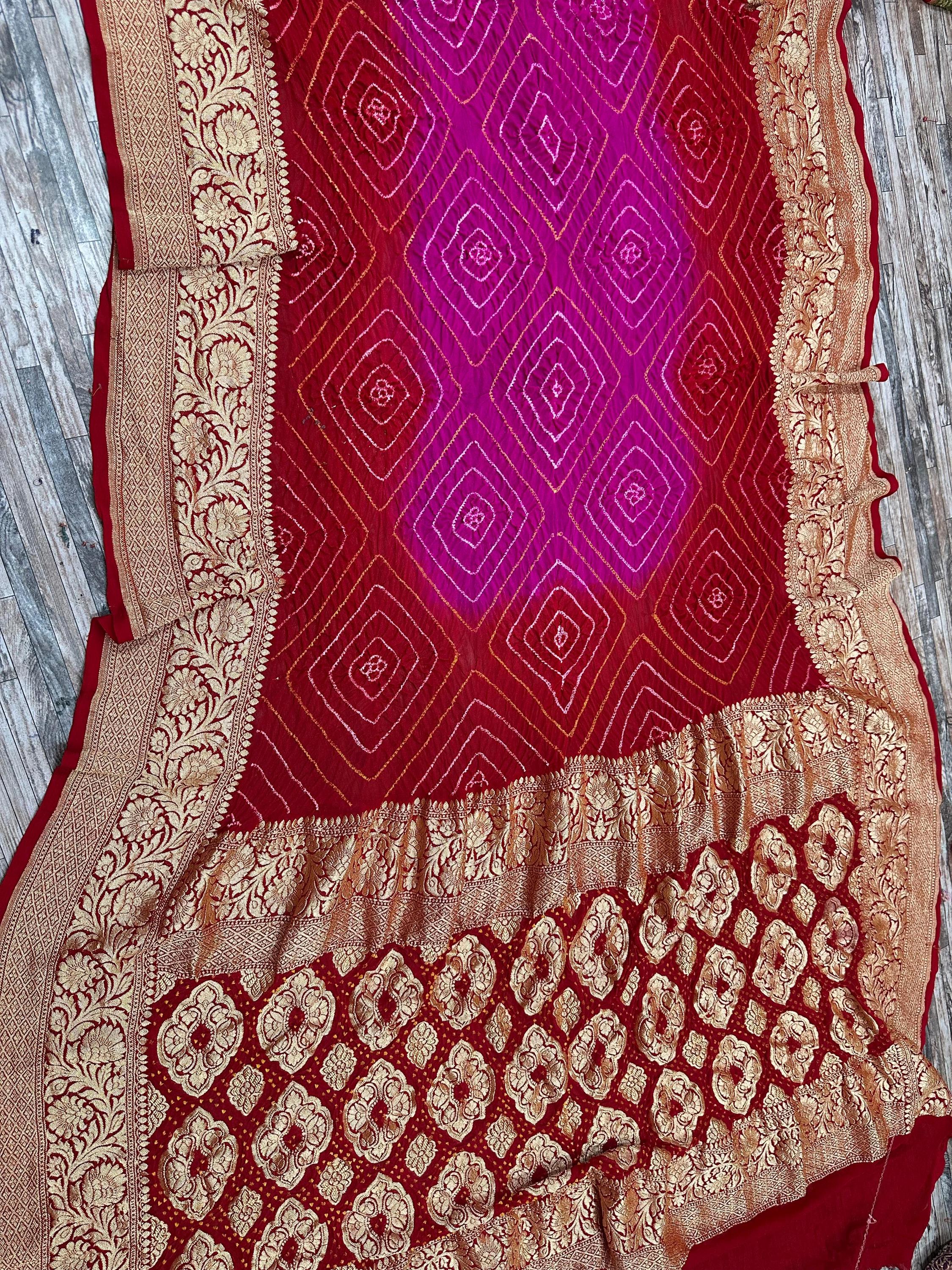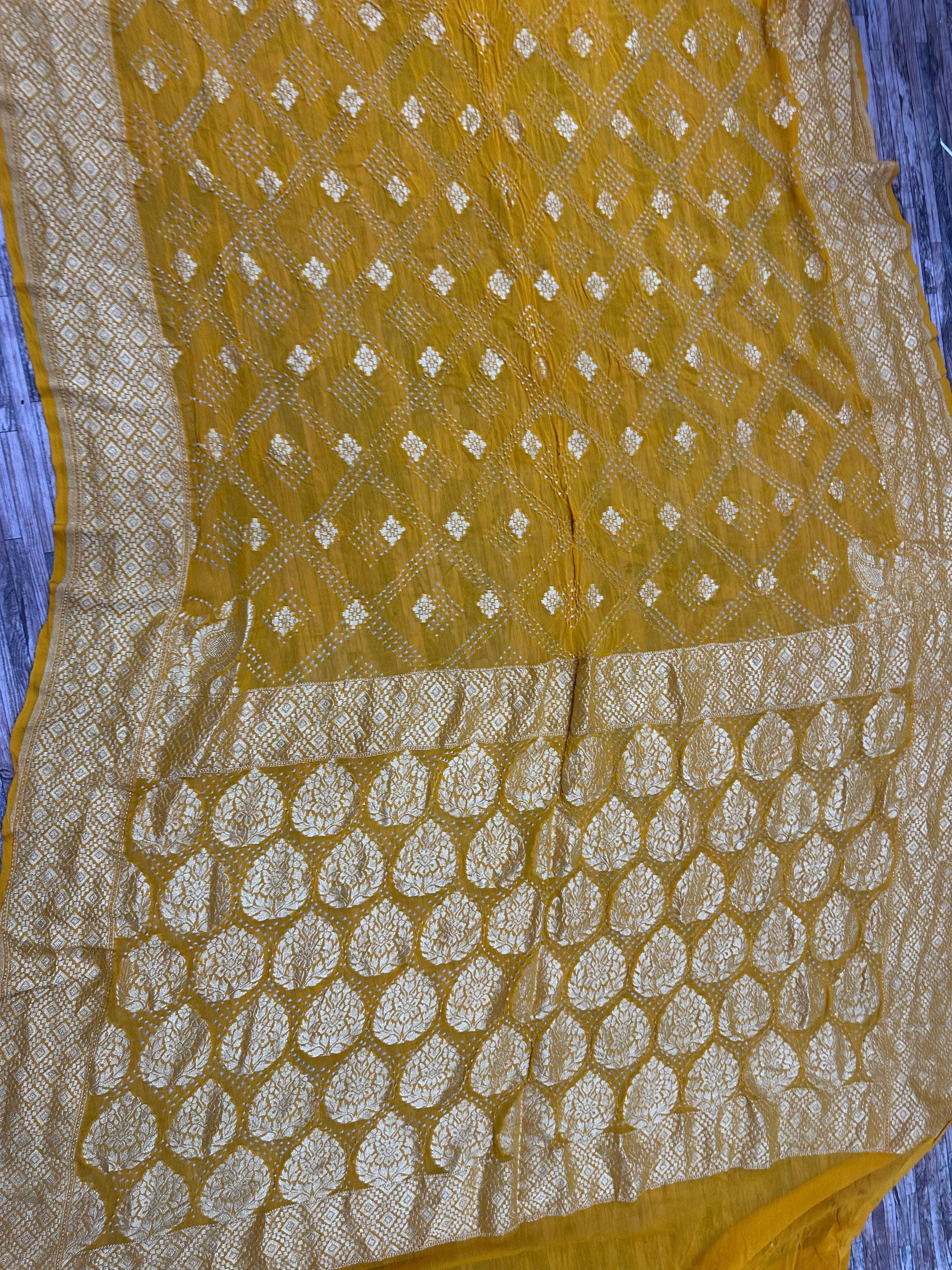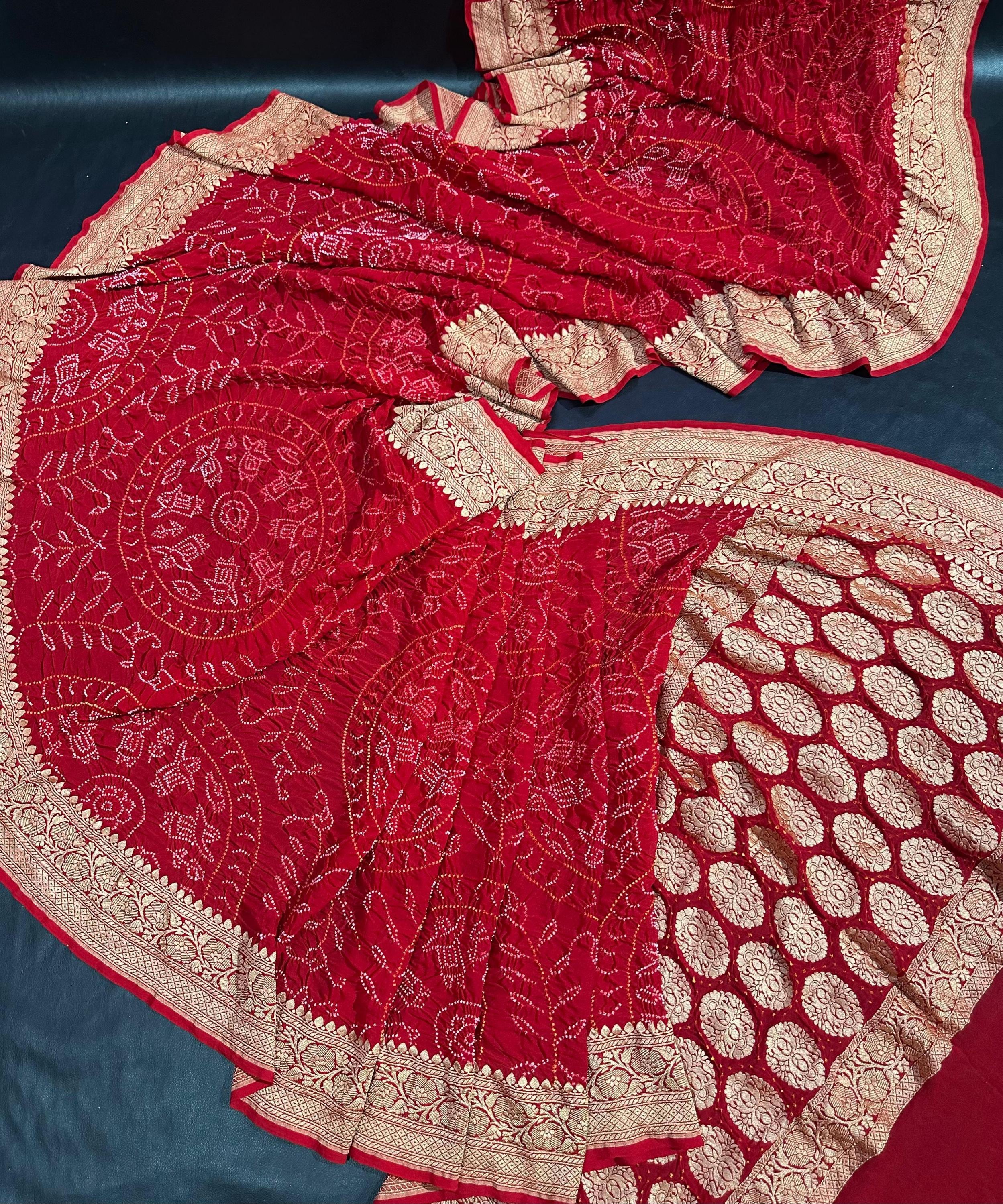 Handloom Banarasi Khaddi Bandhej Saree, Soft Georgette Chiffon