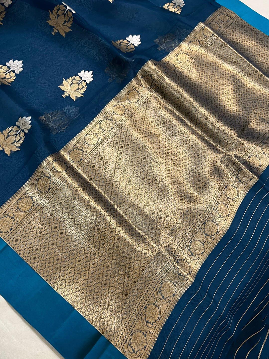 Experience the luxury of Banarasu Silk, adorned with exquisite handloom prints and a stunning organic zari silk weave. This saree is a perfect fusion of heritage and contemporary elegance, making it ideal for weddings, festive occasions, and grand celebrations. A timeless masterpiece for your ethnic collection!