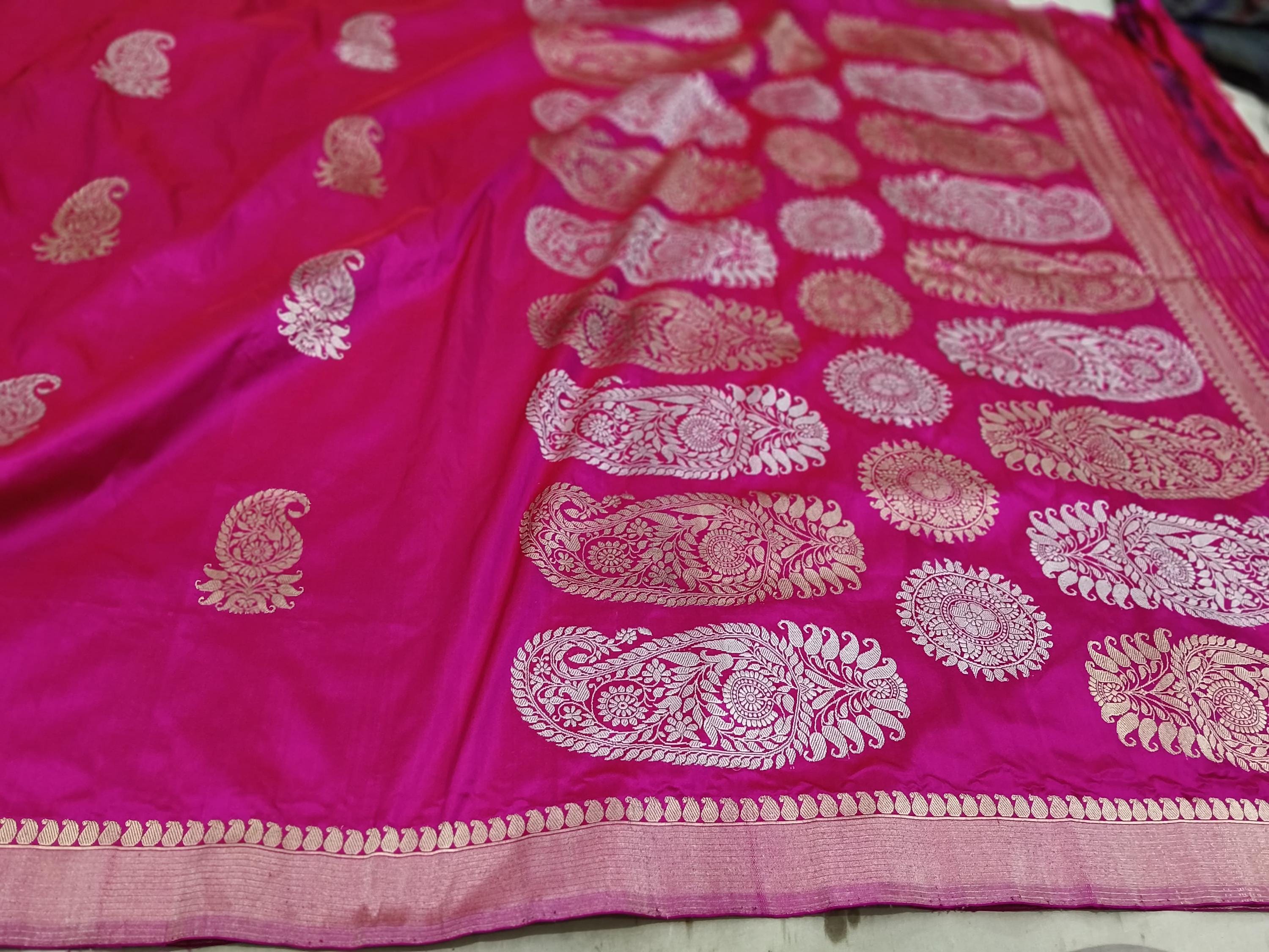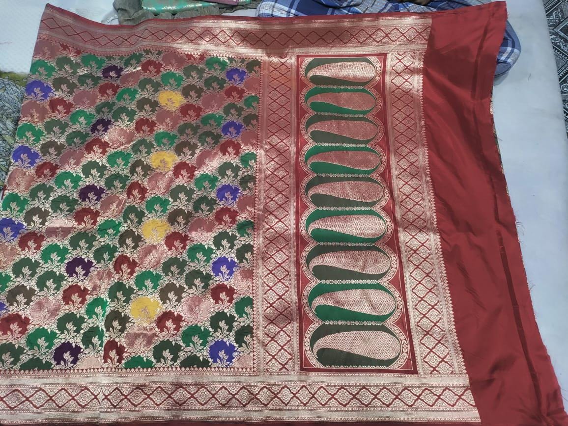 Experience the luxury of weaving Katan Silk, adorned with exquisite handloom Meenakari Weave and a stunning organic banaras silk weave. This saree is a perfect fusion of heritage and contemporary elegance, making it ideal for weddings, festive occasions, and grand celebrations. A timeless masterpiece for your ethnic collection!