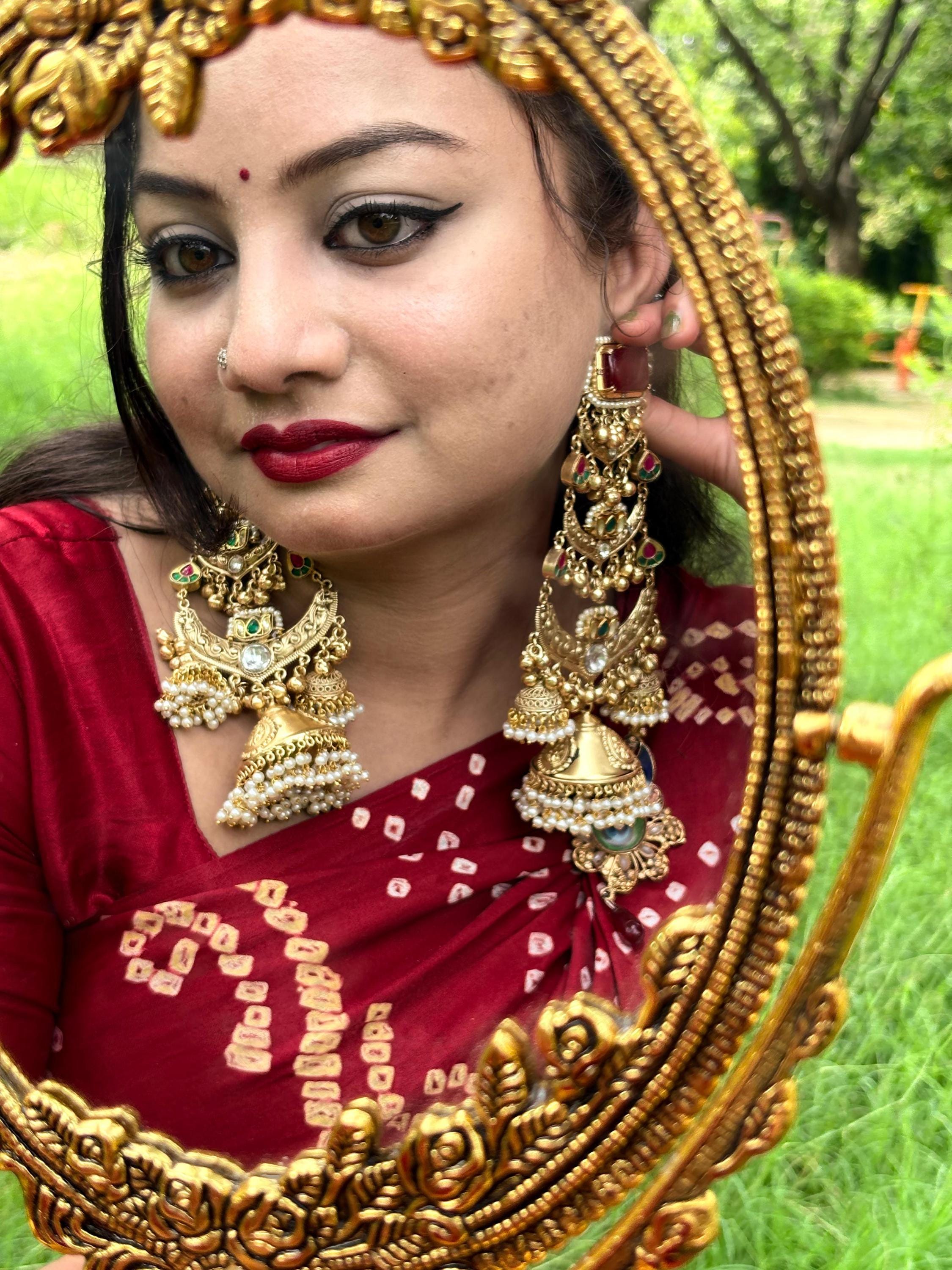 #BrassBeauty #KundanKlassics #JhumkaLove #DesiJewels #TraditionalVibes #EarringGoals #HandcraftedWithLove #RoyalAdornments #MadeInIndia #SwarnSajavat