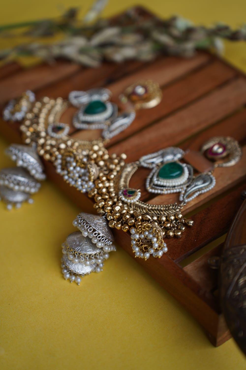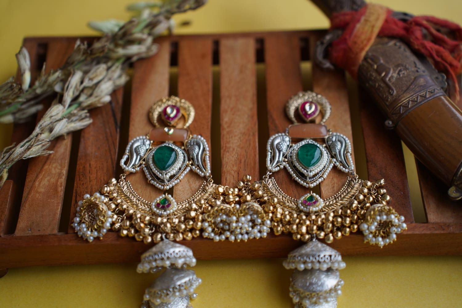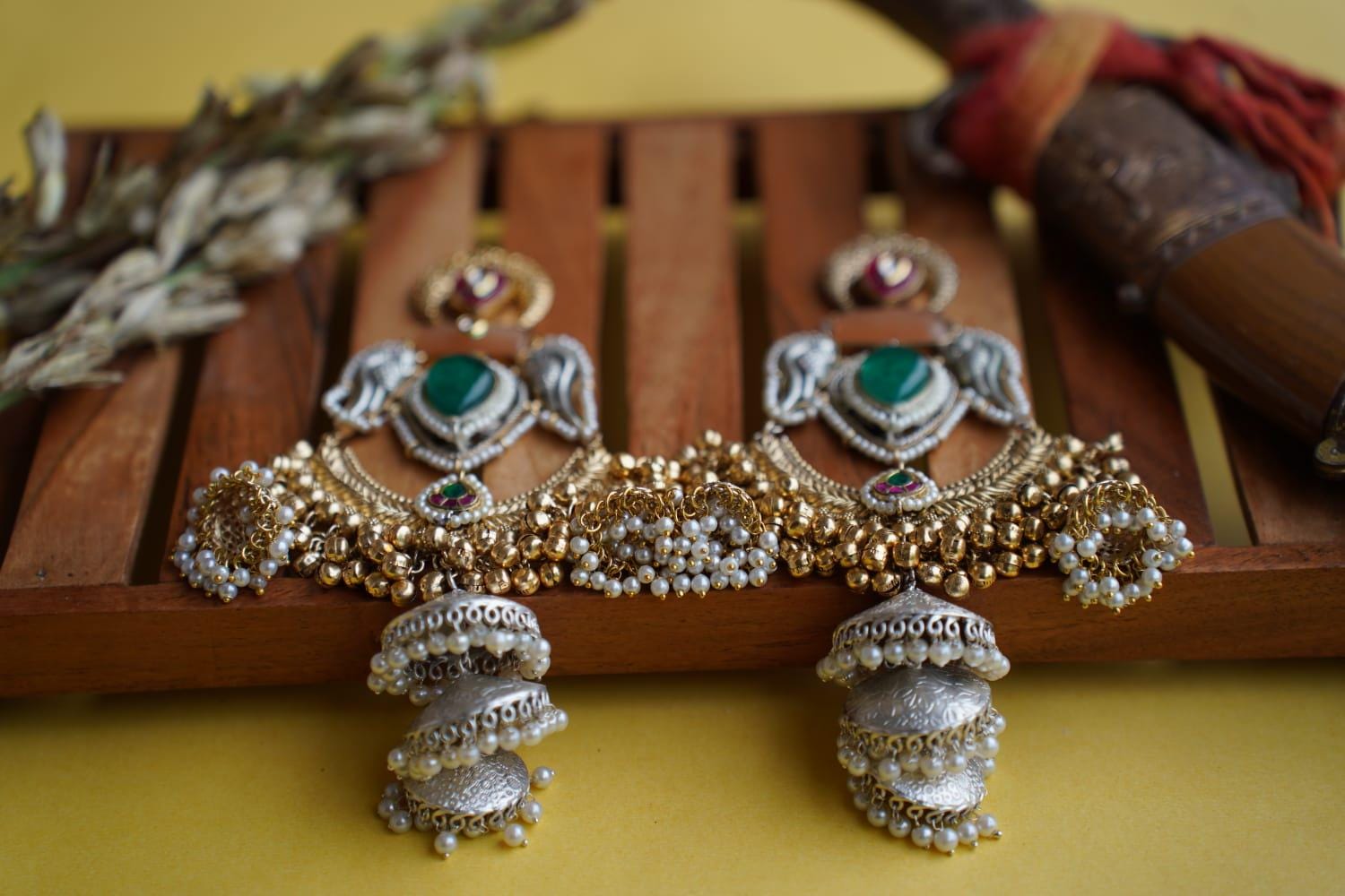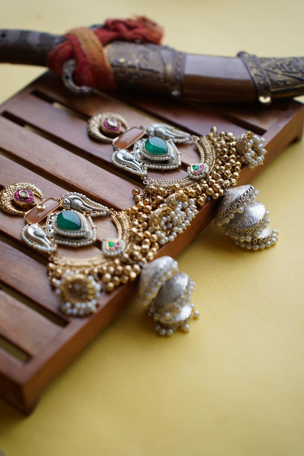 From the bold green stones to the intricate carvings and playful ghungroos, every detail tells a story of timeless craftsmanship and royal grace. 💚💛🔔