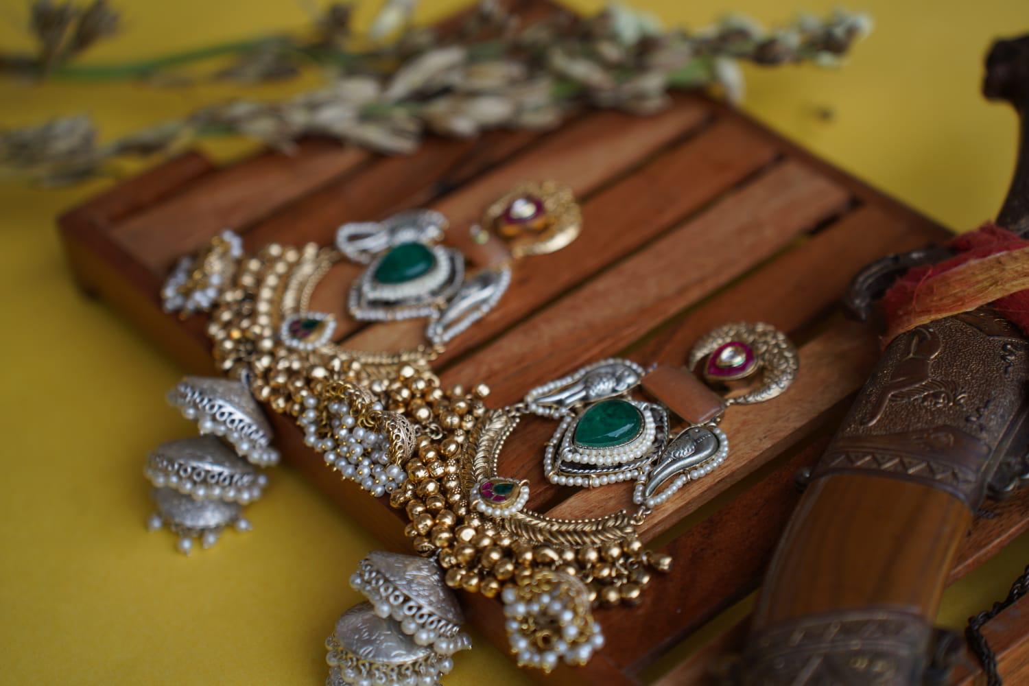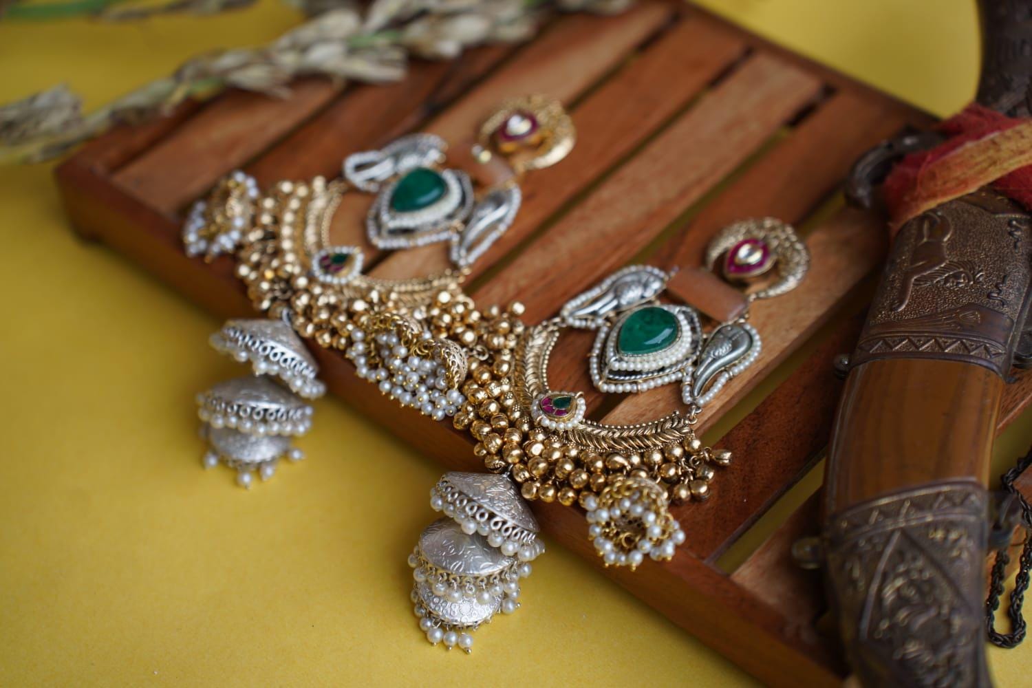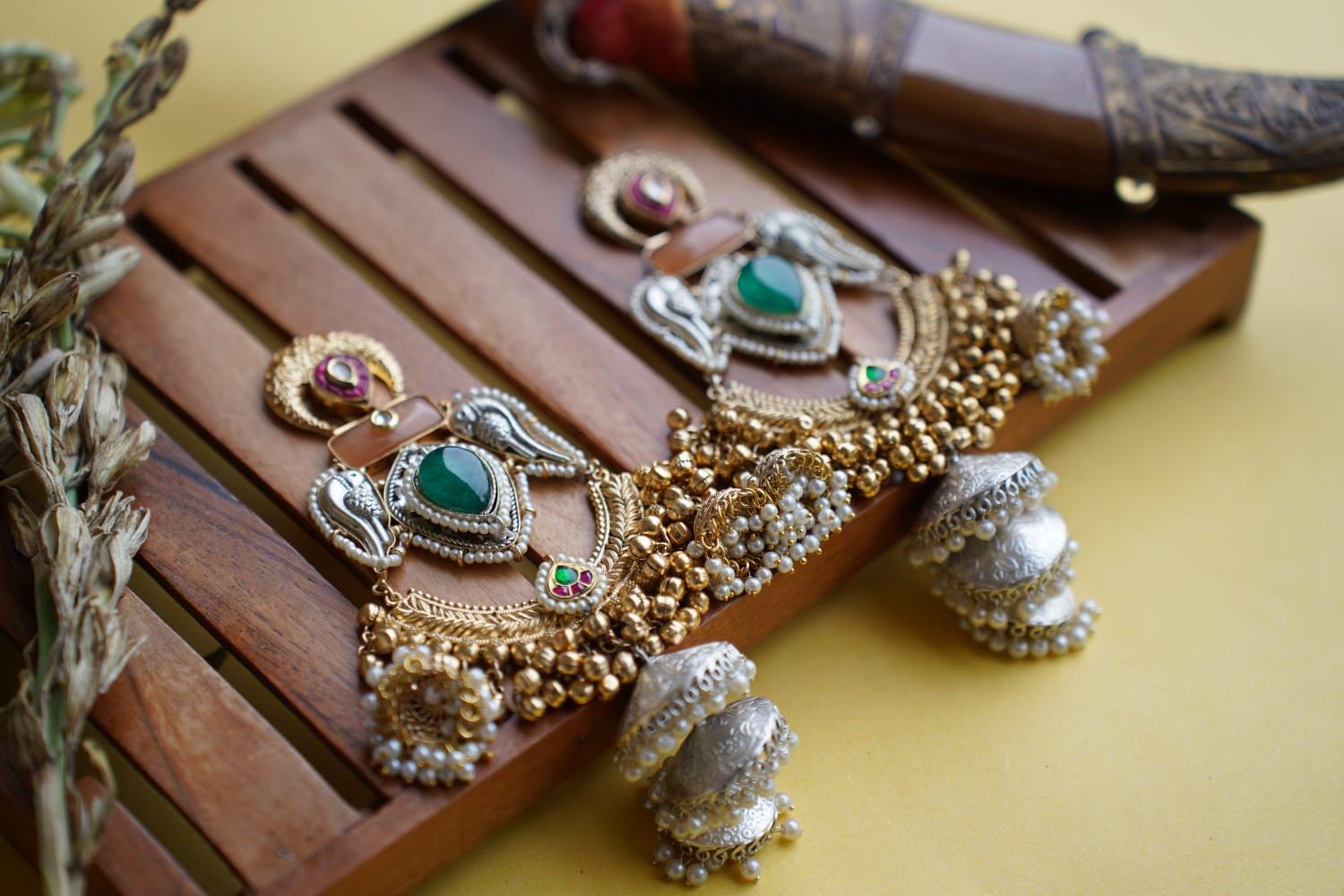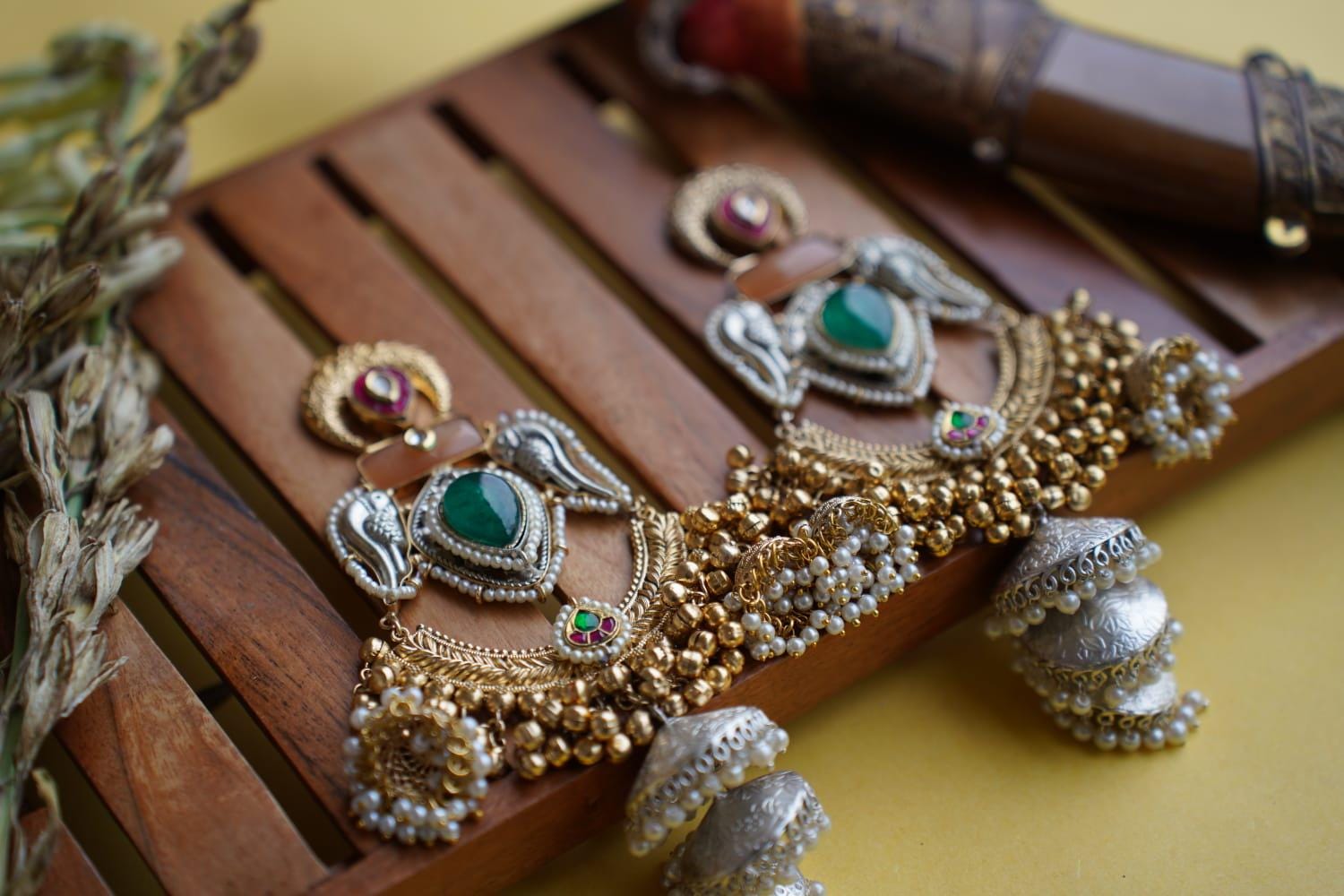 From the bold green stones to the intricate carvings and playful ghungroos, every detail tells a story of timeless craftsmanship and royal grace. 💚💛🔔