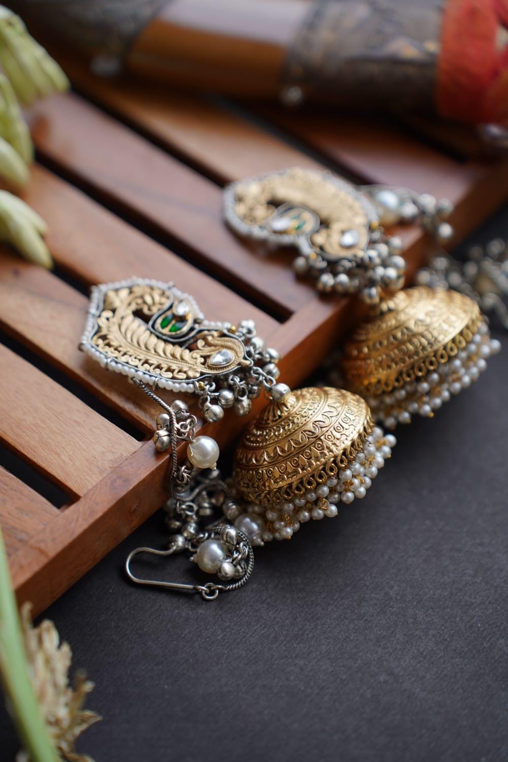 #BrassBeauty #KundanKlassics #JhumkaLove #DesiJewels #TraditionalVibes #EarringGoals #HandcraftedWithLove #RoyalAdornments #MadeInIndia #SwarnSajavat