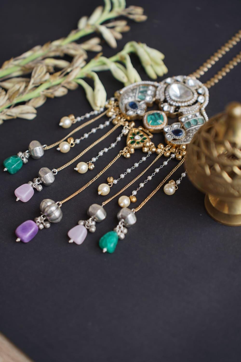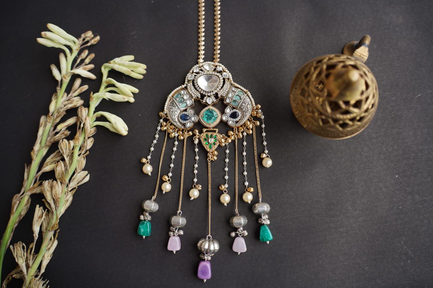 From the bold green stones to the intricate carvings and playful ghungroos, every detail tells a story of timeless craftsmanship and royal grace. 💚💛🔔